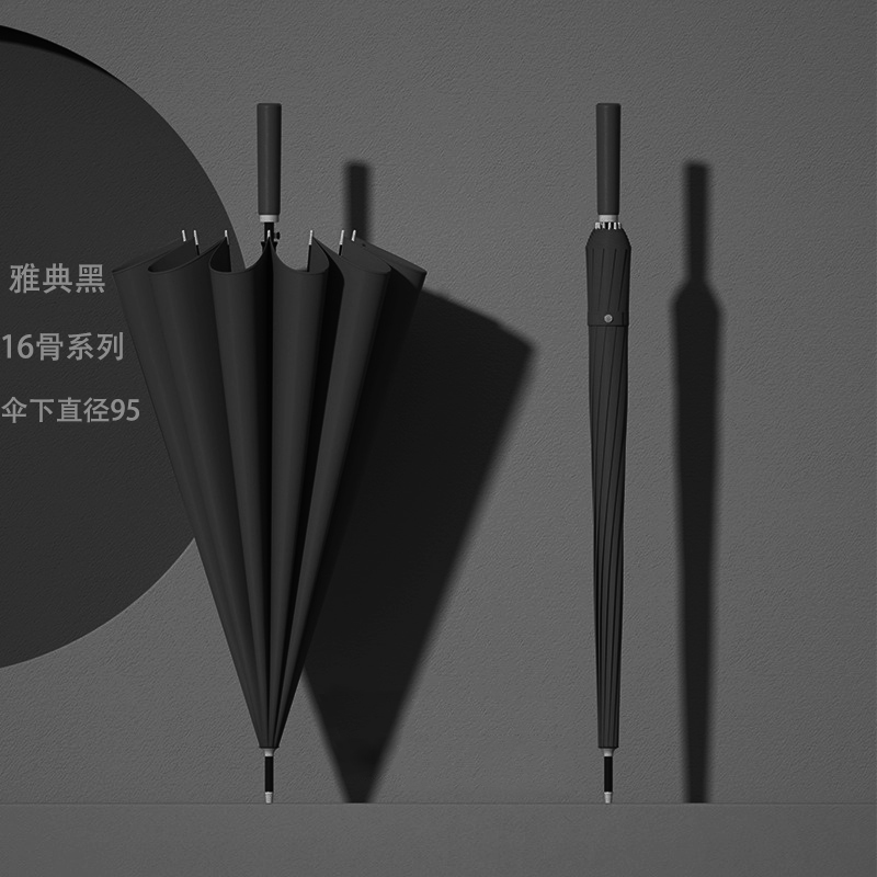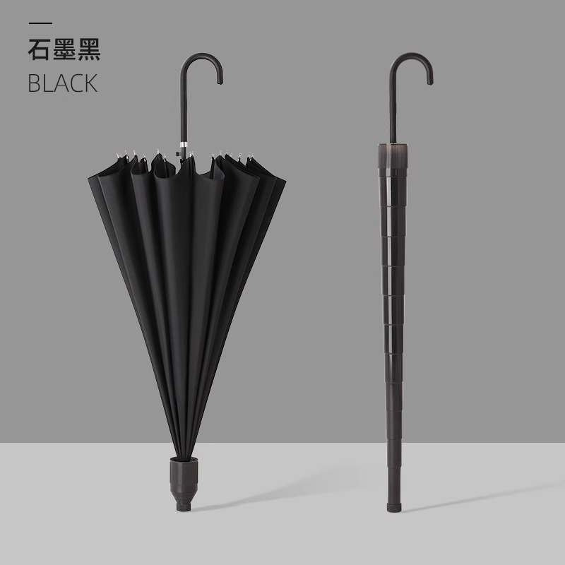 • [섬유골 방수커버] 16본 클래식 블랙 - 직선 손잡이 폭풍우 방지 우산