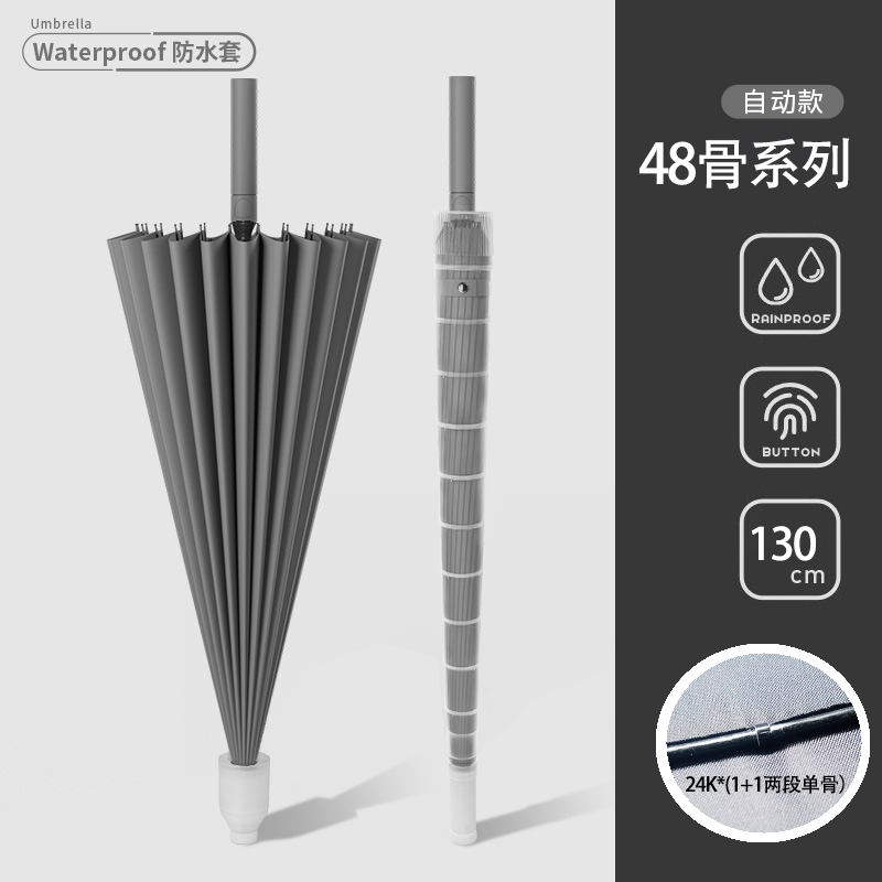 • [풀파이버 미드스틱 방수커버] [일체형버튼] 48 클래식 블랙 - 130cm 발수우산 표면 1개 폭풍우 나노 소수성