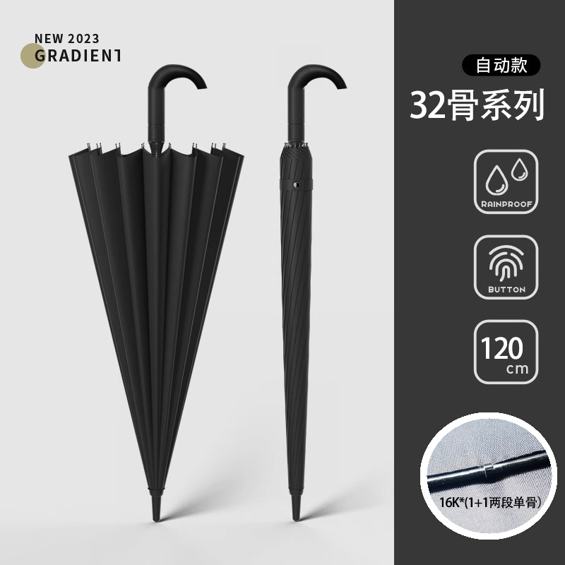 • [풀파이버 미디엄 로드] [원버튼] 32 클래식 블랙 - 120cm 발수 우산 표면 1개 폭풍 방지 나노 소수성