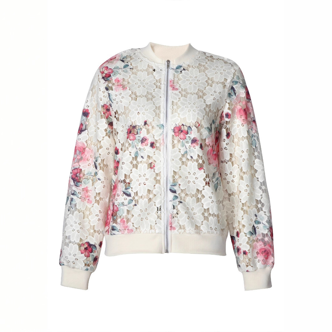유럽과 미국의 국경 간 여성 코트 AliExpress 꽃 자수 인쇄 긴 소매 짧은 재킷스토어 가기