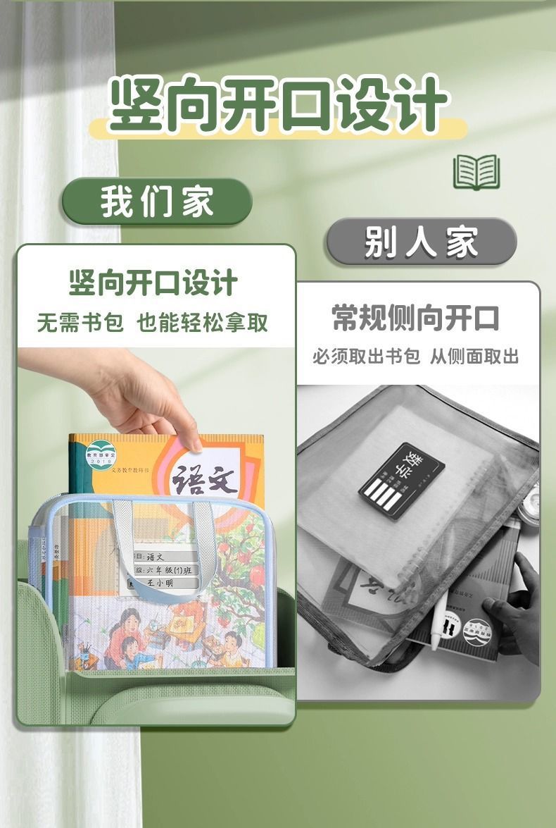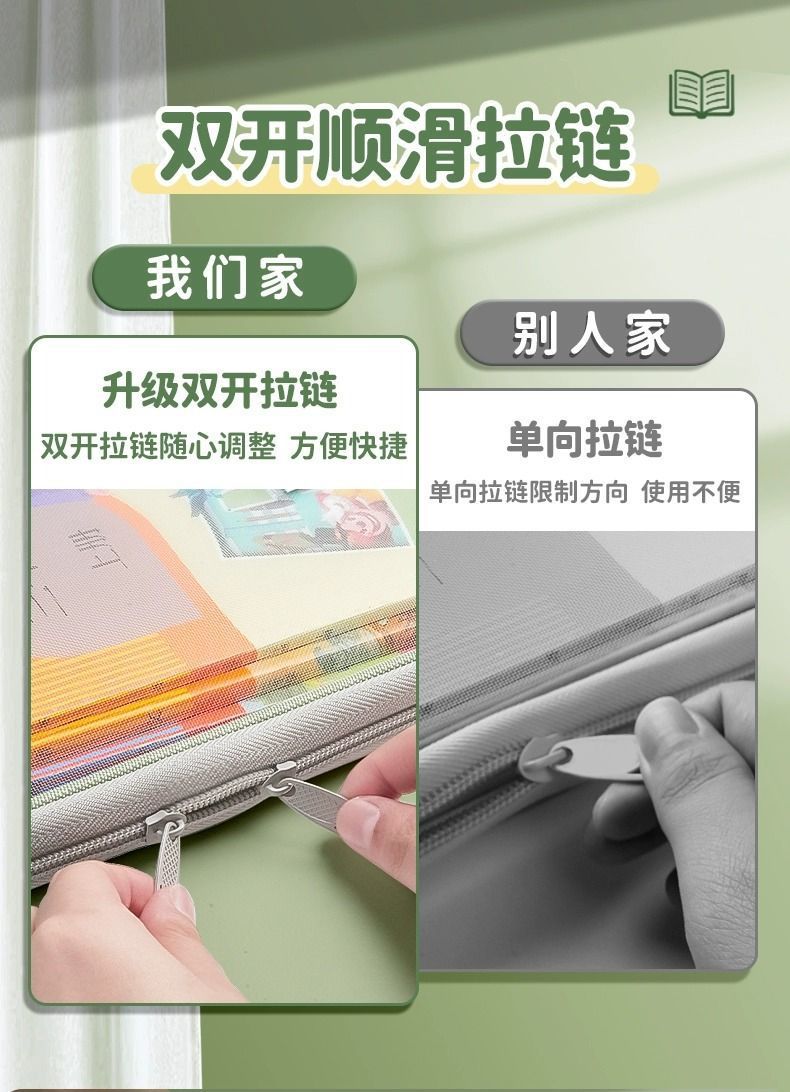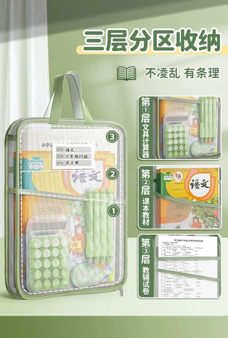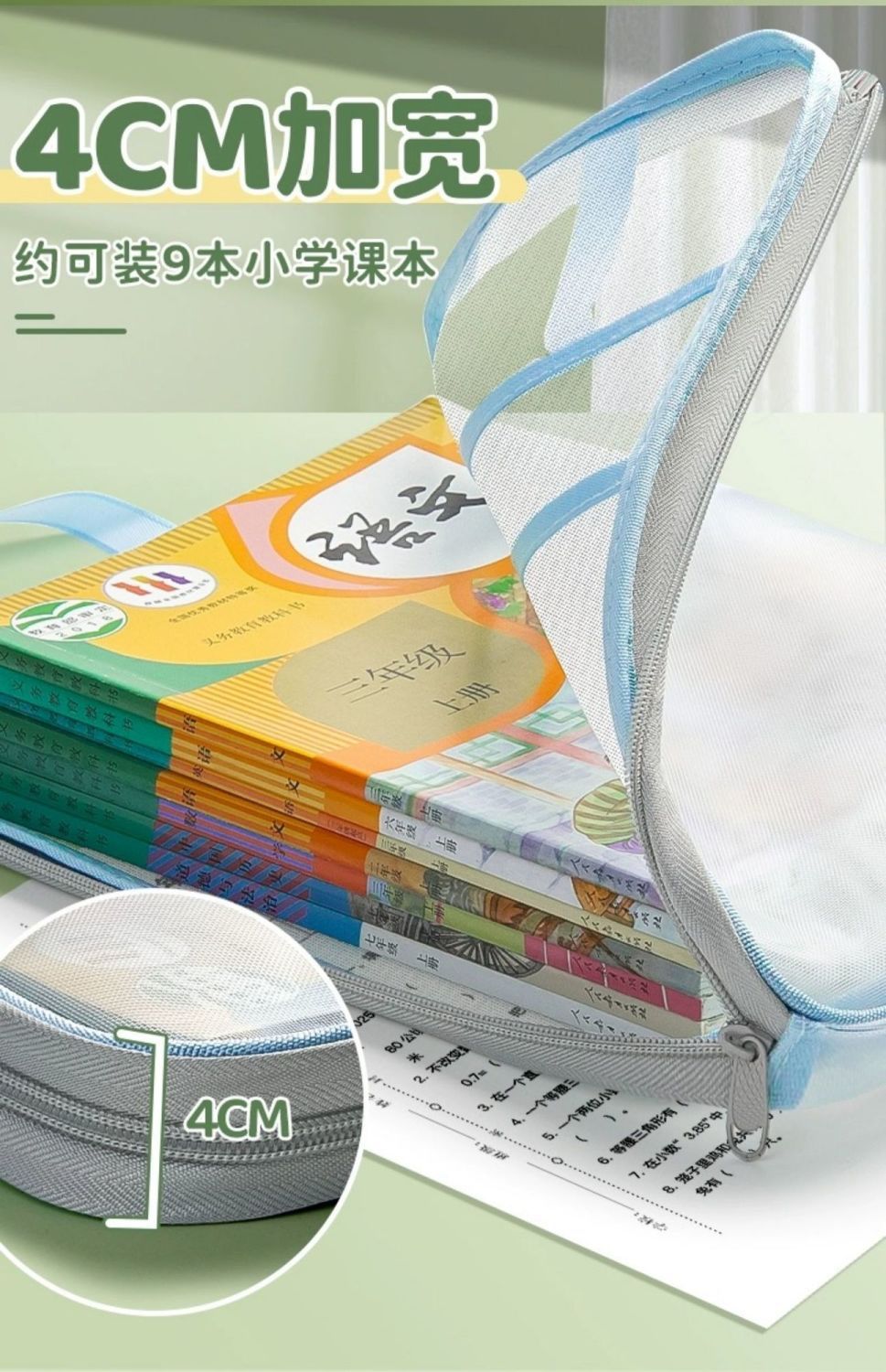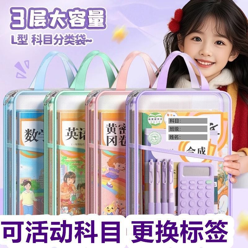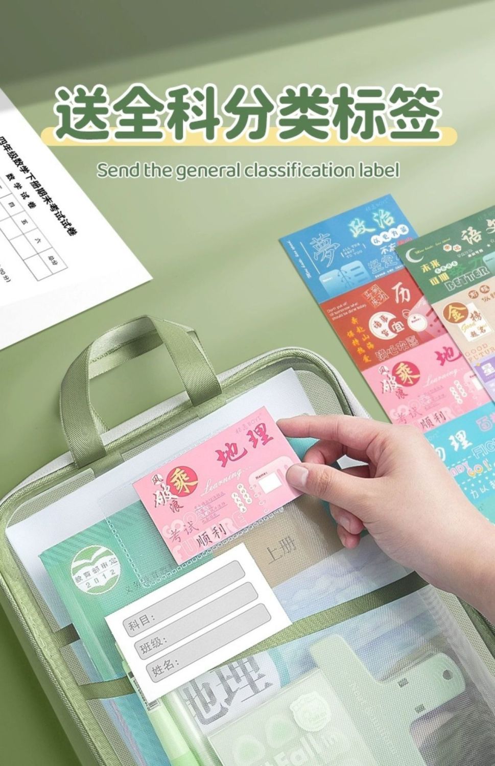 L자형 주제 분류 가방 파일 가방 지퍼가 달린 투명 메쉬 대형 개방형 학생 휴대용 책 가방 시험 가방