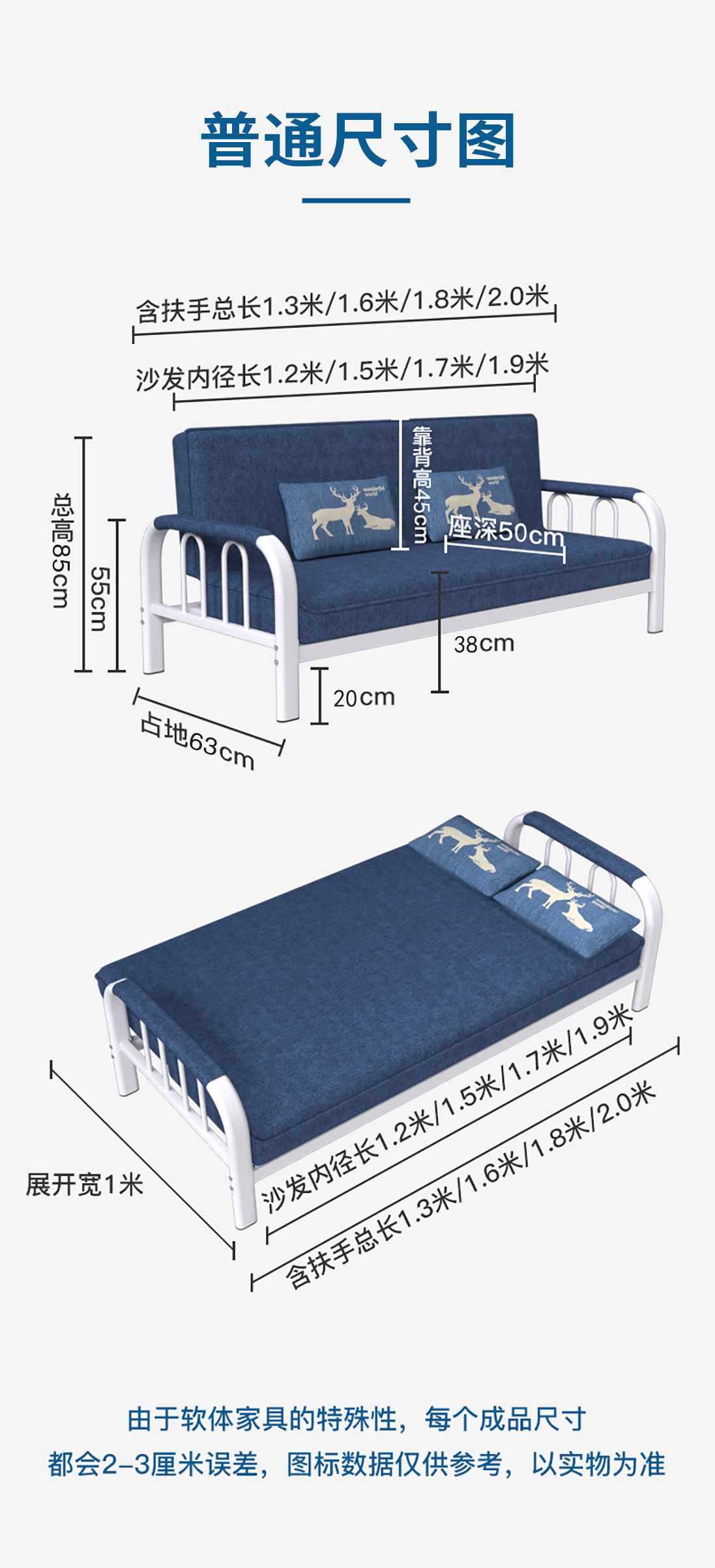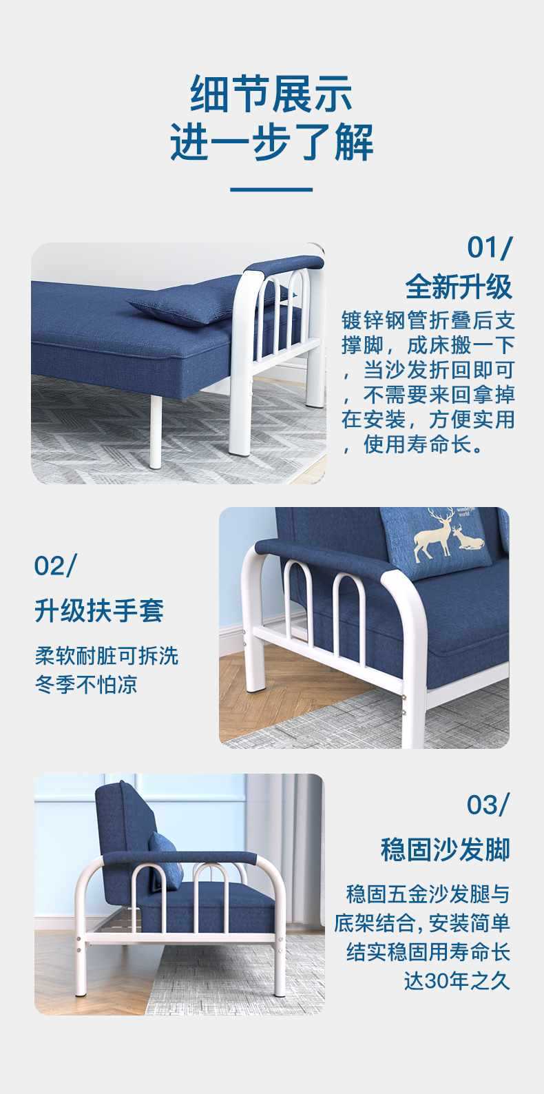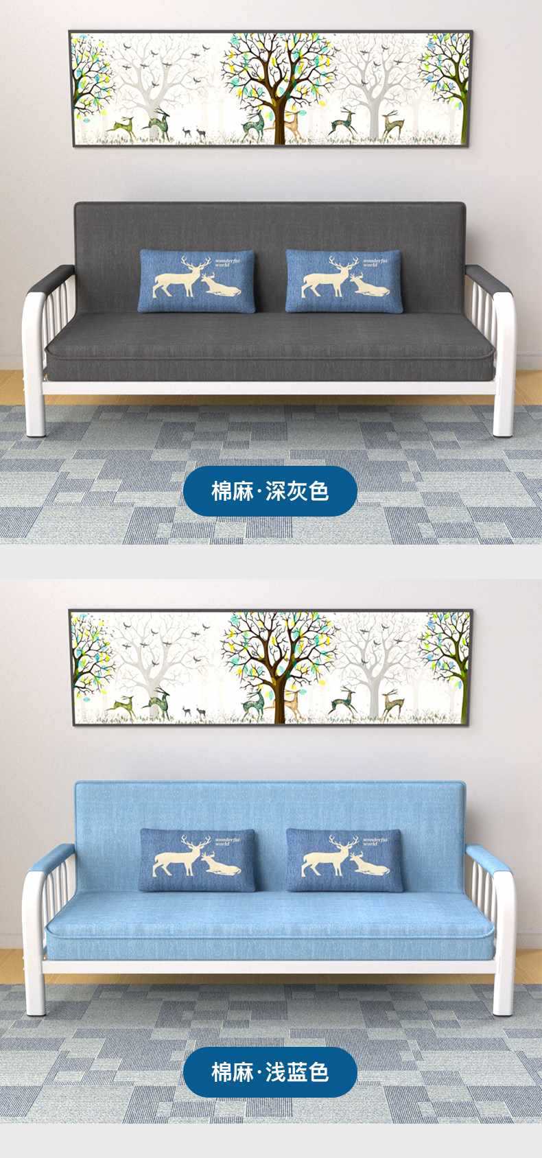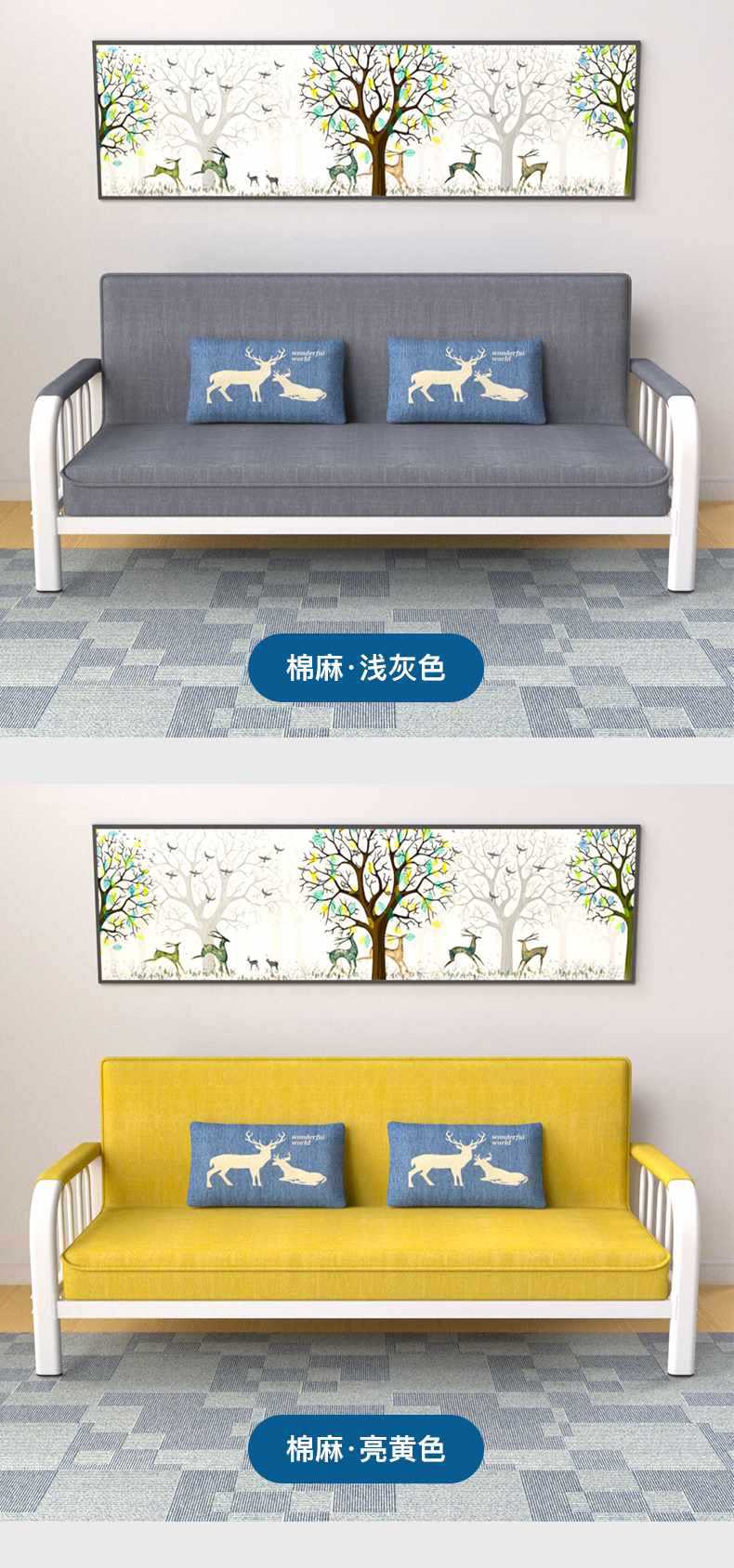 소형 아파트를 위한 소파 베드 이중 목적 접이식 다기능 간단한 거실 싱글, 더블, 3인용 임대실 패브릭 소파스토어 가기