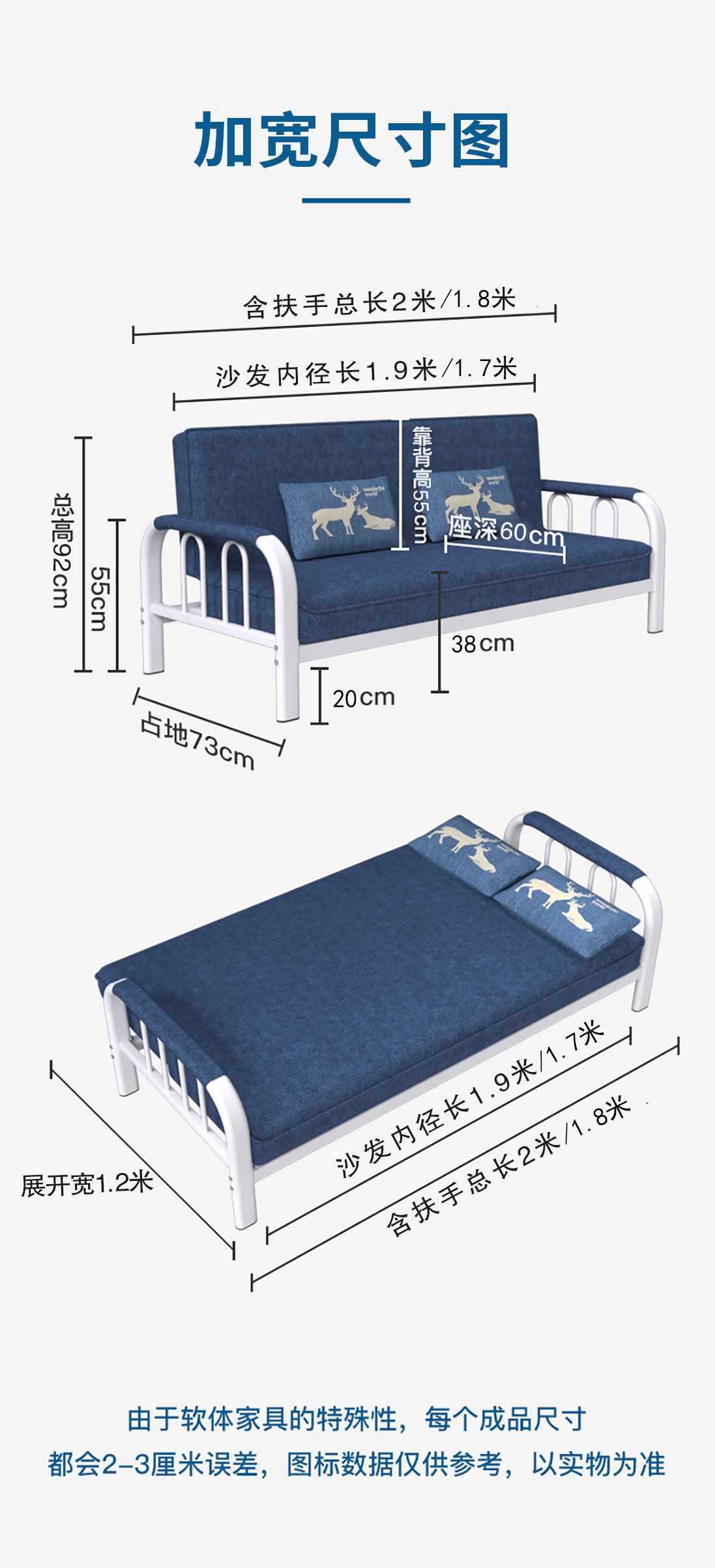 • 분해 및 세탁 불가 팔걸이 포함 길이 1.8m 폭 1m 요추 베개 제외