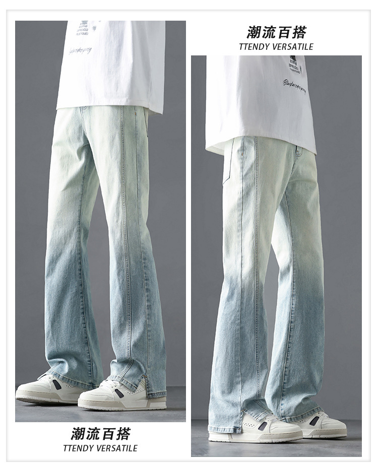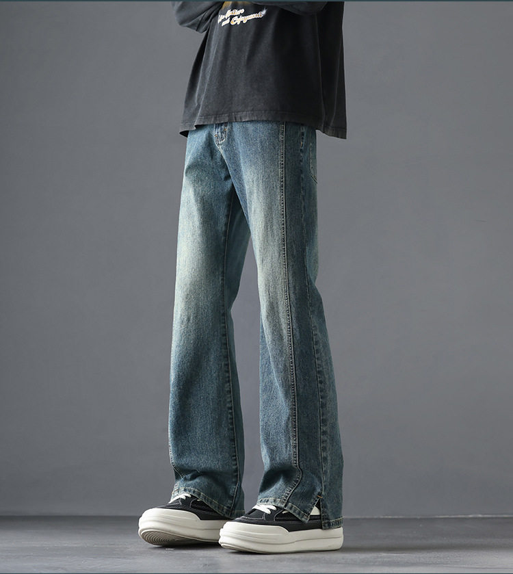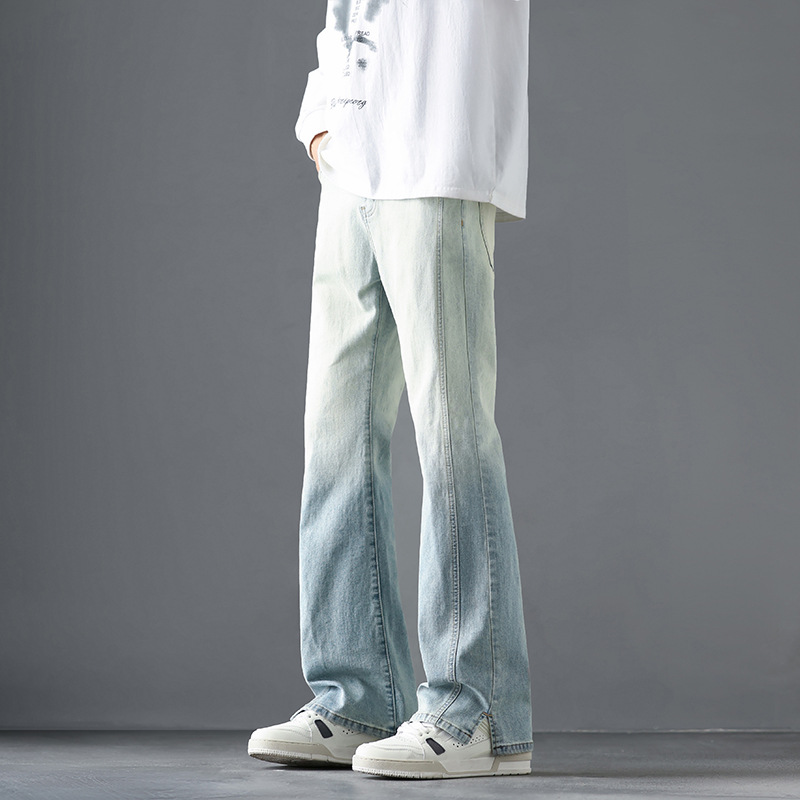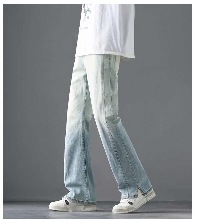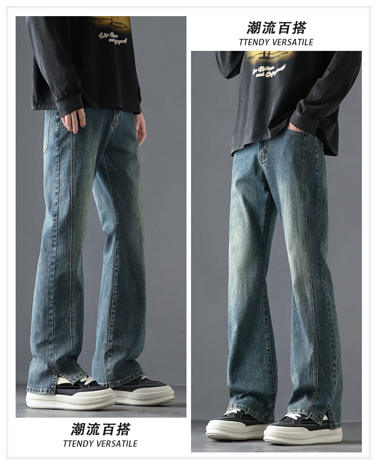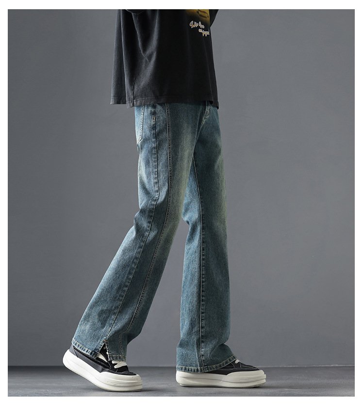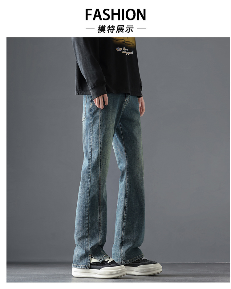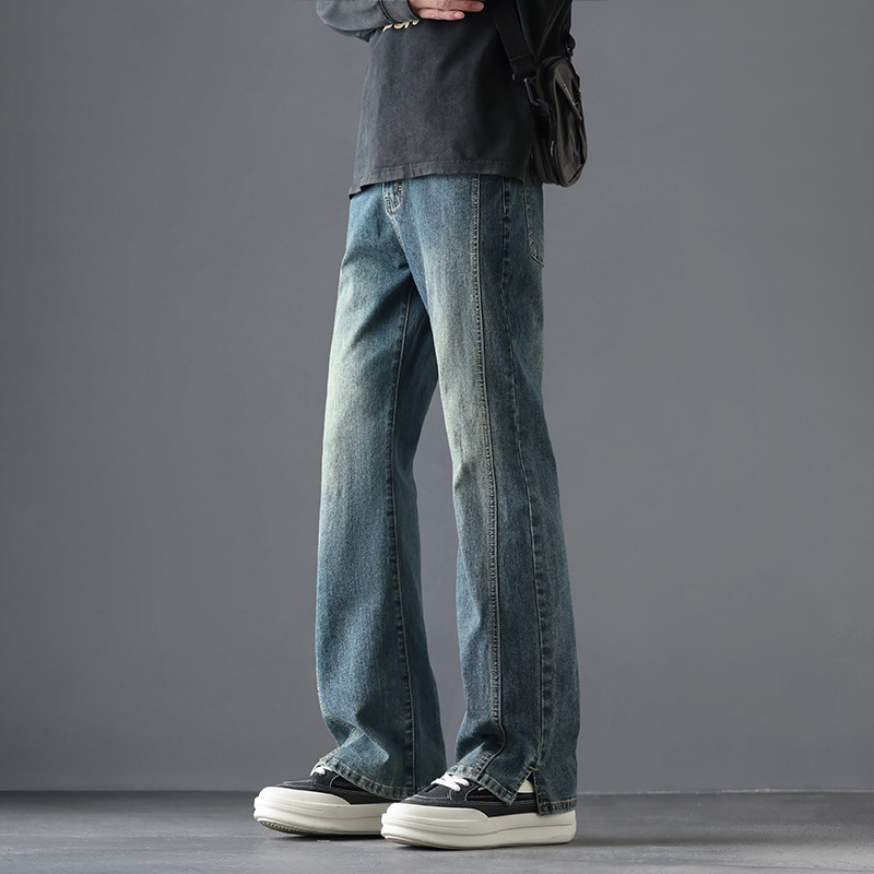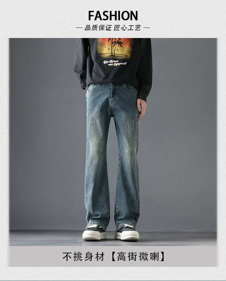 2025 봄, 가을 새로운 미국 하이 스트리트 부츠컷 청바지 남성 루즈 트렌디 대학 스타일 스트레치 캐주얼 바지스토어 가기