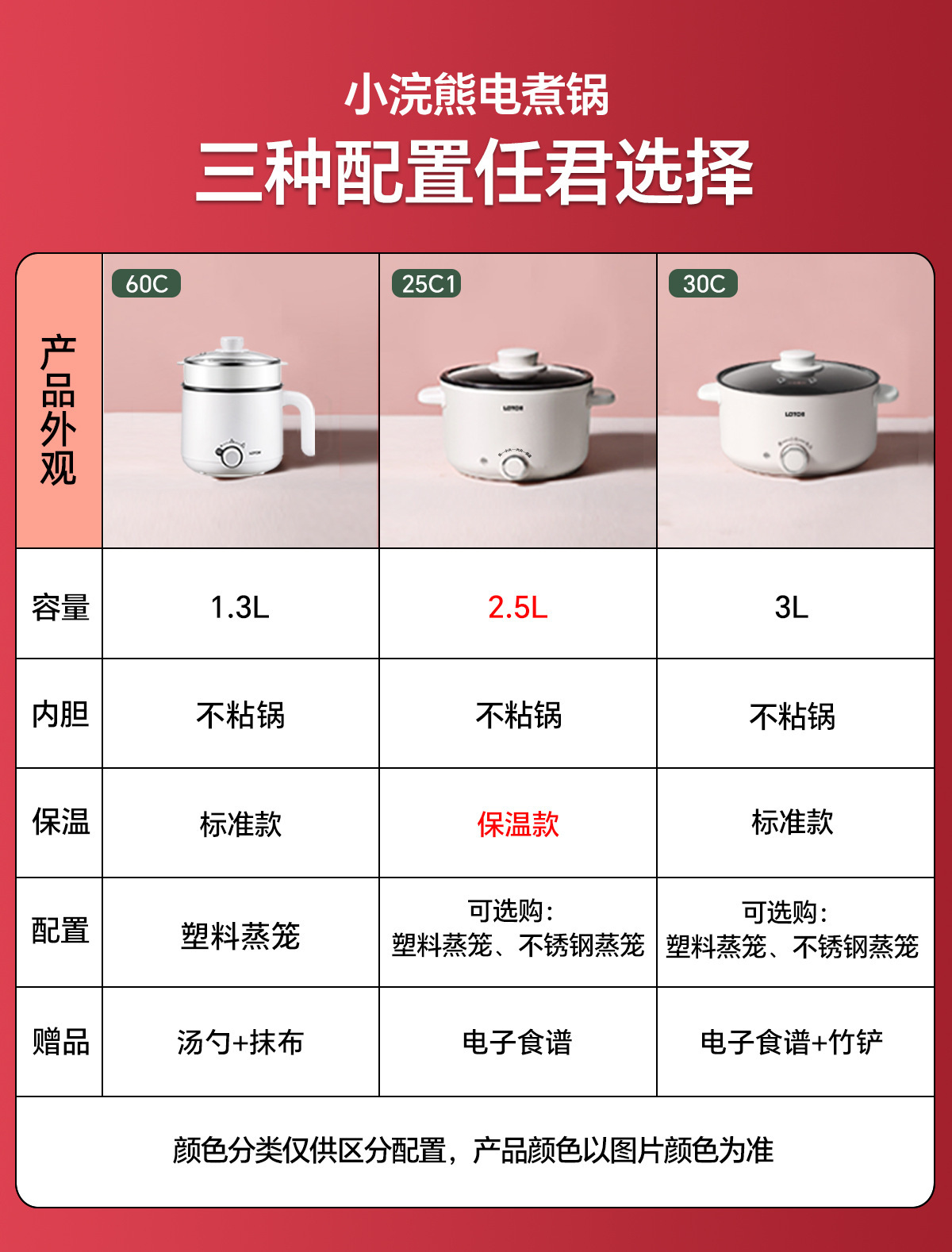 • [2.5L 논스틱 보온모델] 화이트 + 플라스틱 찜기