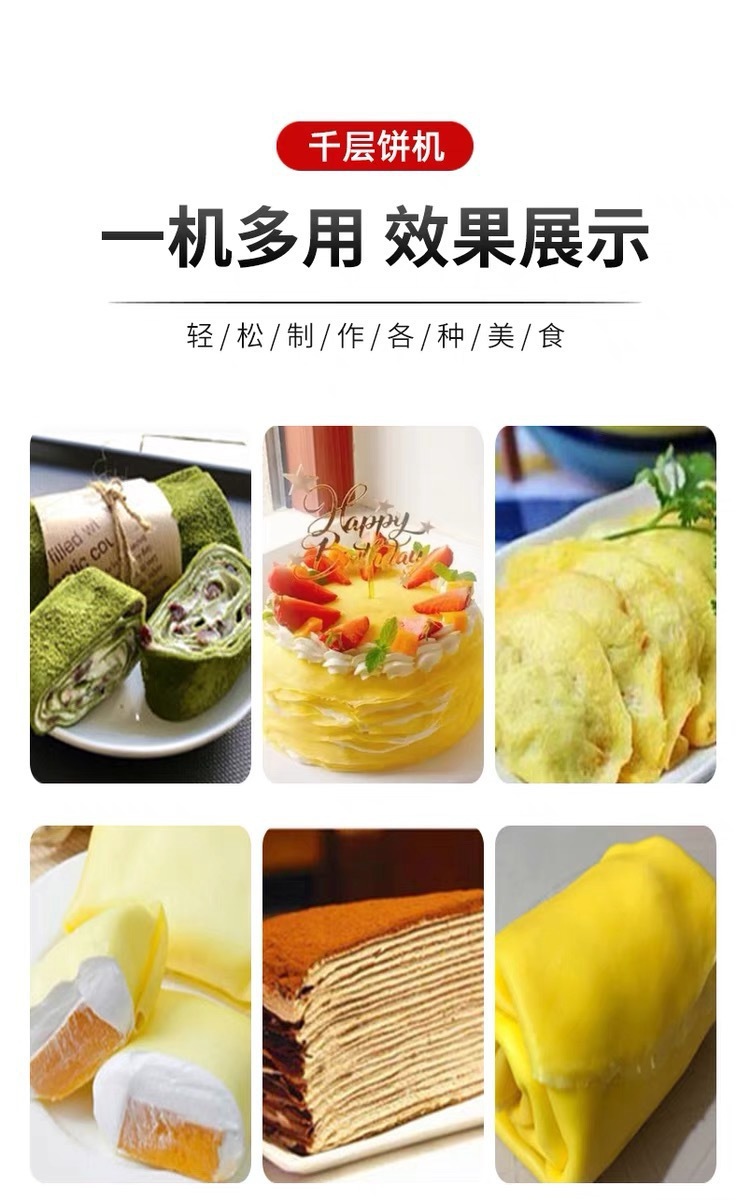 가격 완전 자동 두리안 레이어 케이크 피부 기계 상업용 계란 피부 기계 다기능 팬케이크 피부 수건 롤 봄 케이크 기계스토어 가기