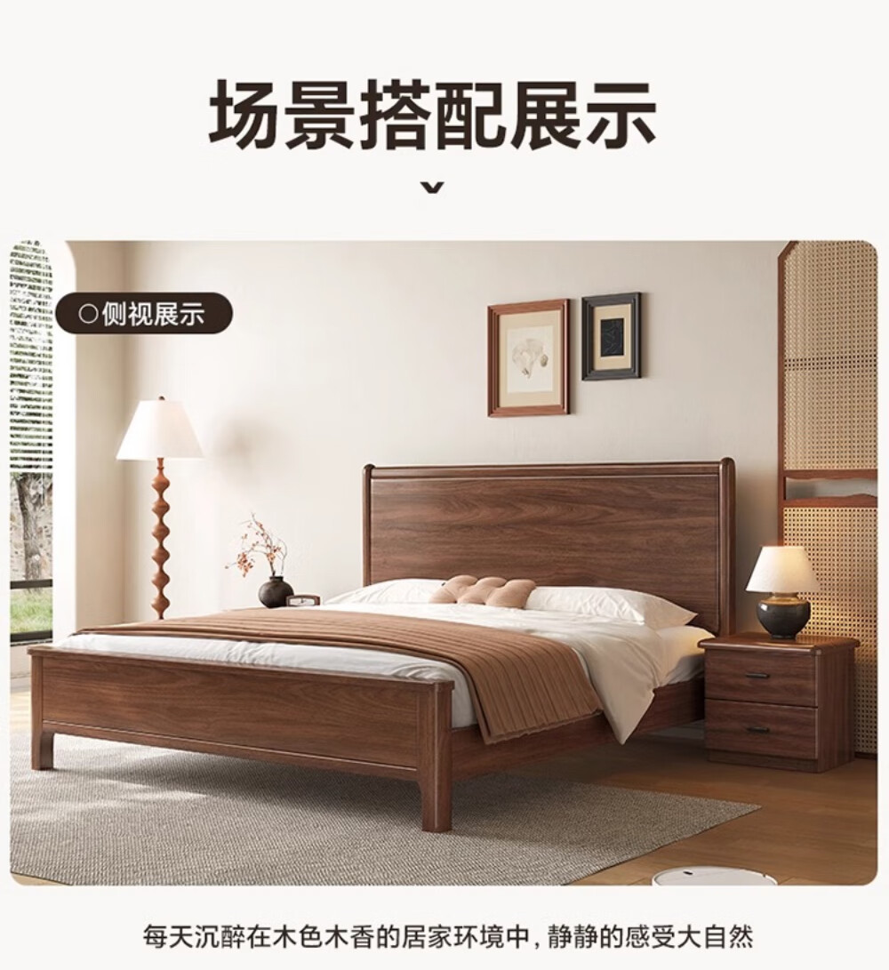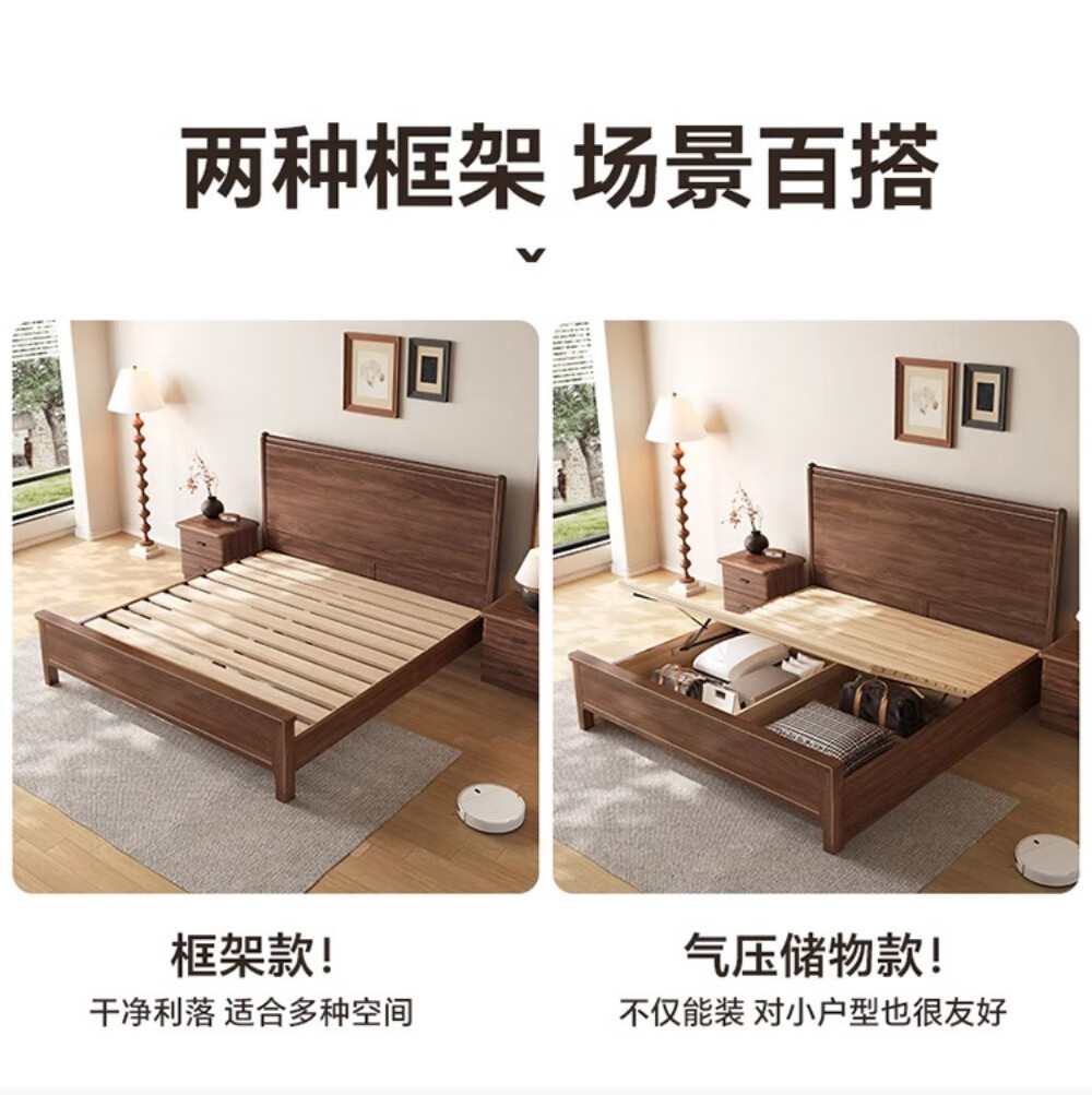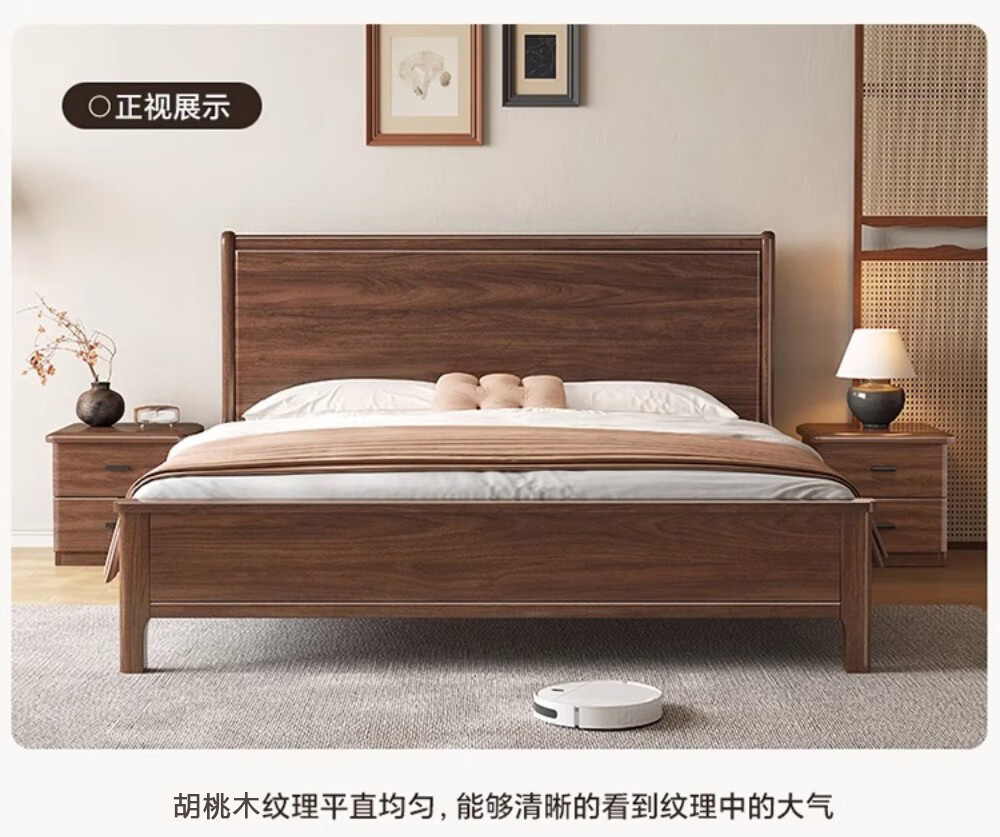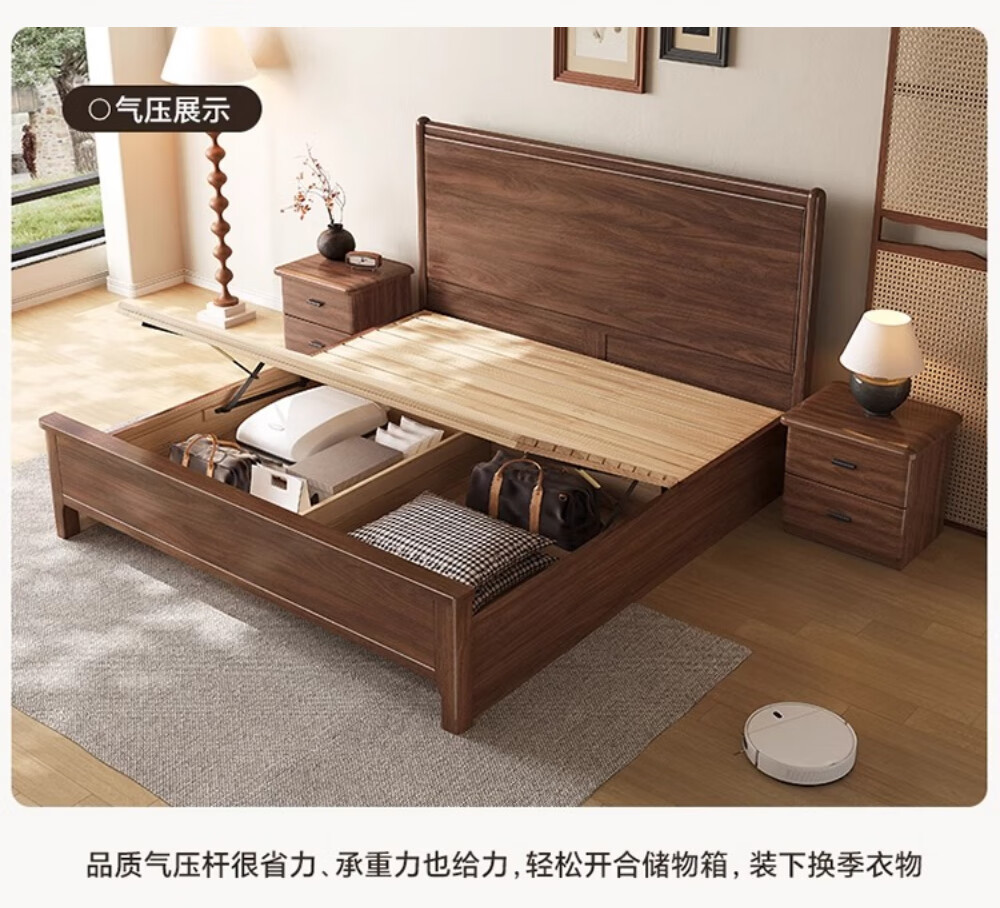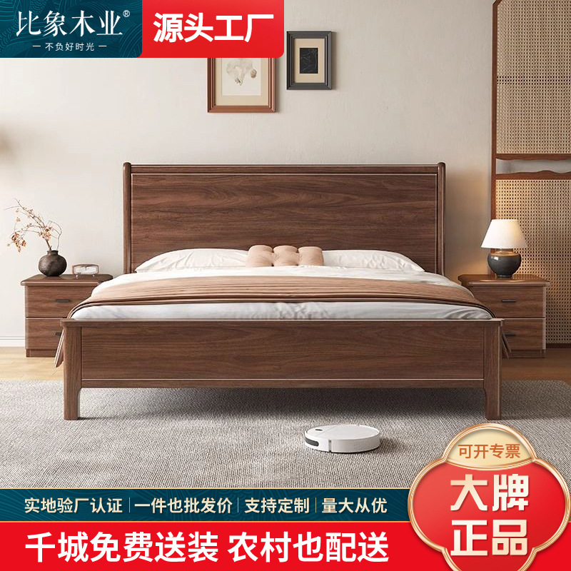 북미 검은 호두나무 침대 마스터 침실 현대적인 미니멀리스트 1.8m 웨딩 침대 중국 스타일의 수납 단단한 나무 하이 박스 트윈 더블 침대스토어 가기