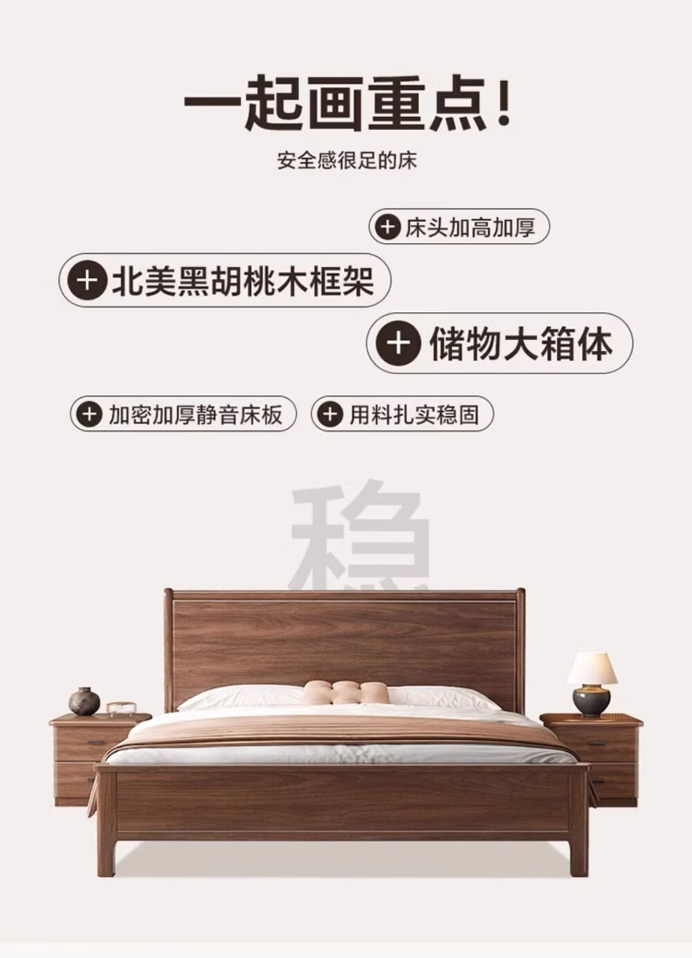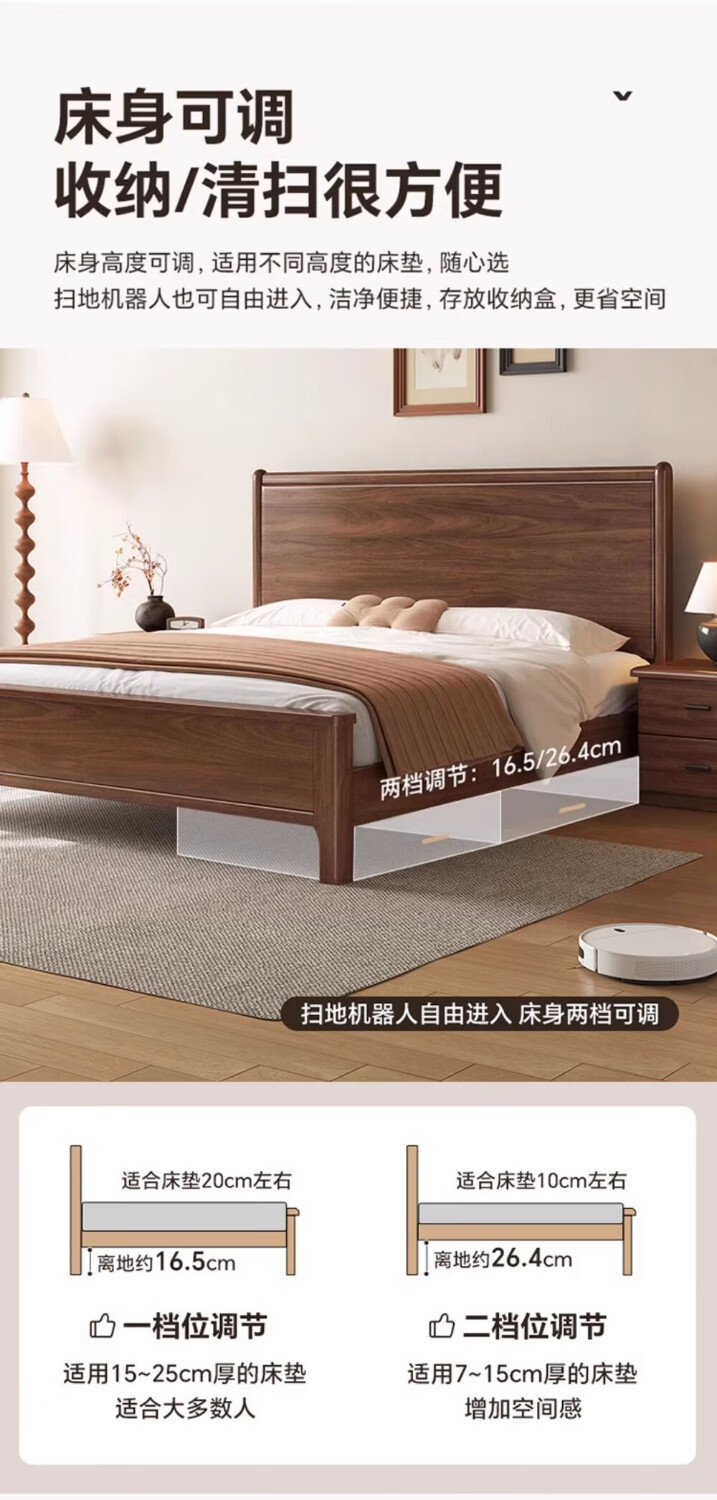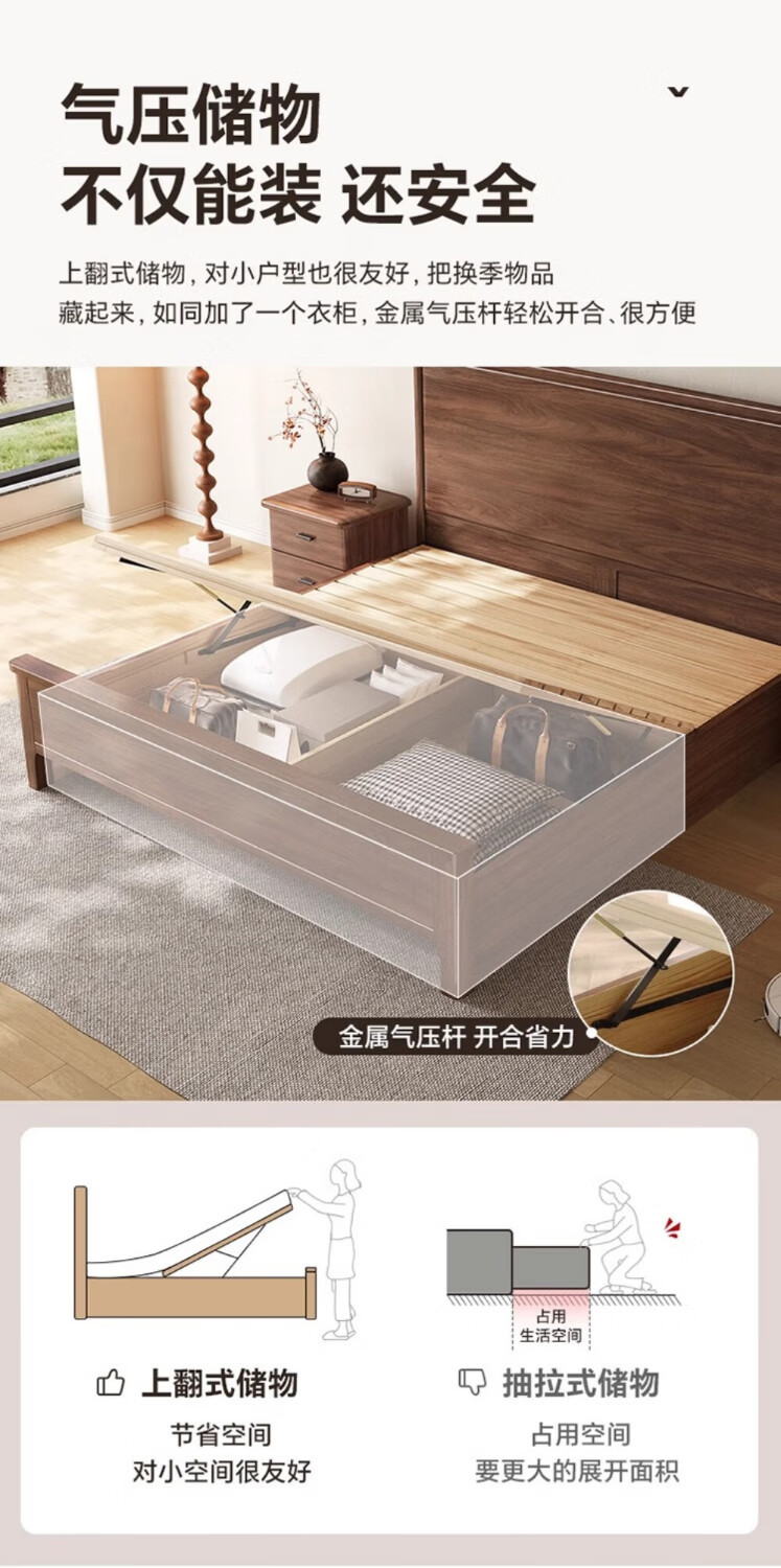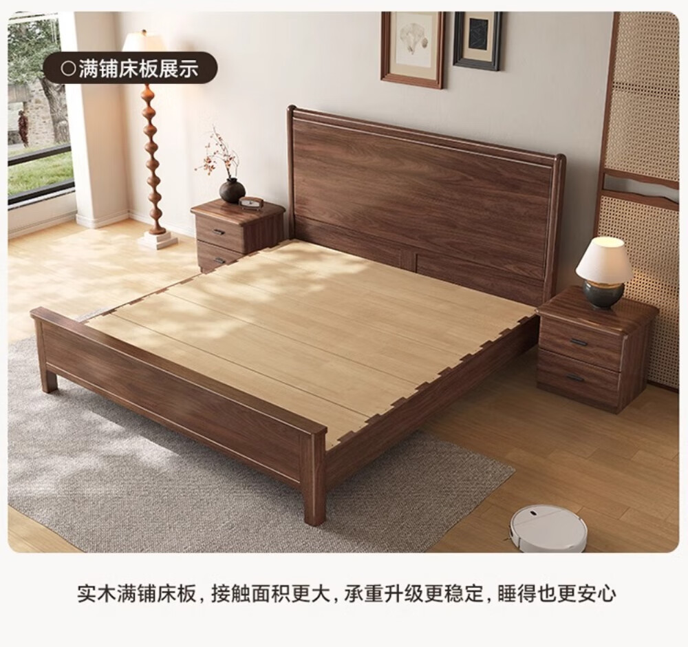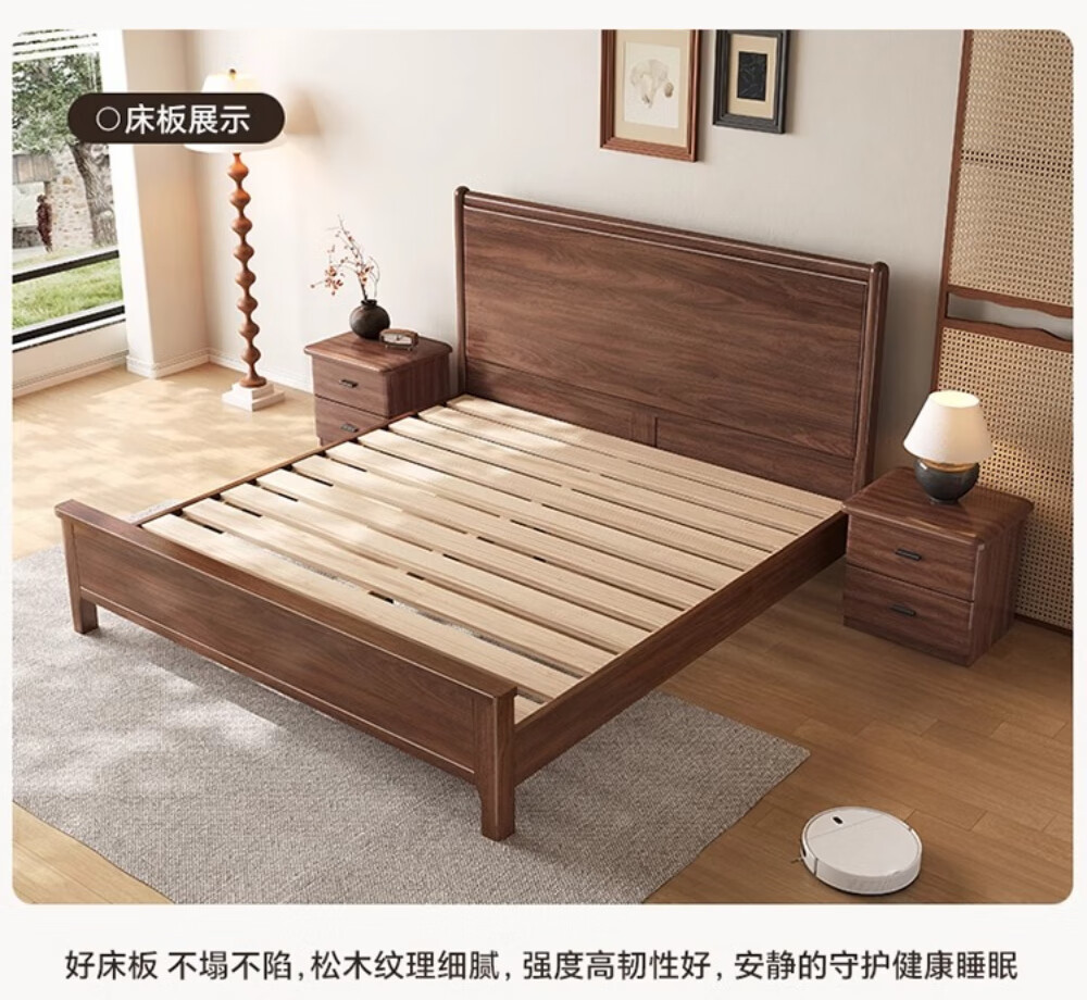 북미 검은 호두나무 침대 마스터 침실 현대적인 미니멀리스트 1.8m 웨딩 침대 중국 스타일의 수납 단단한 나무 하이 박스 트윈 더블 침대스토어 가기