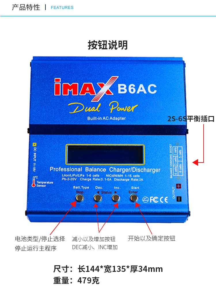 IMAX B6AC 밸런스 충전기 다기능 스마트 리튬 배터리 충전기 80W 케이블 모델 항공기 모델 자동차 모델