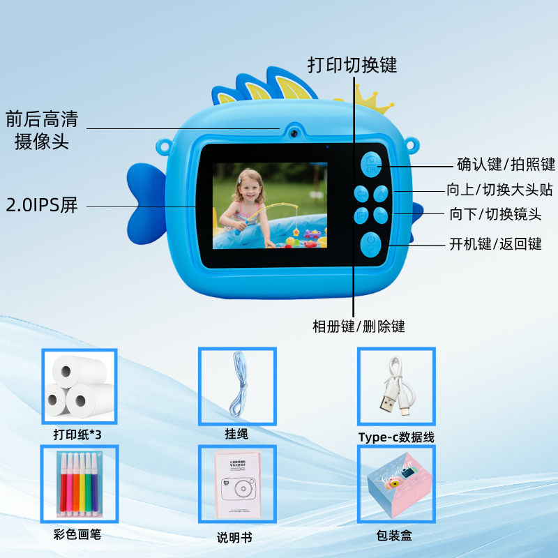Y600 즉석 사진 어린이 카메라 디지털 즉석 사진 인쇄 카메라 고화질 인쇄 귀여운 만화 즉석 사진