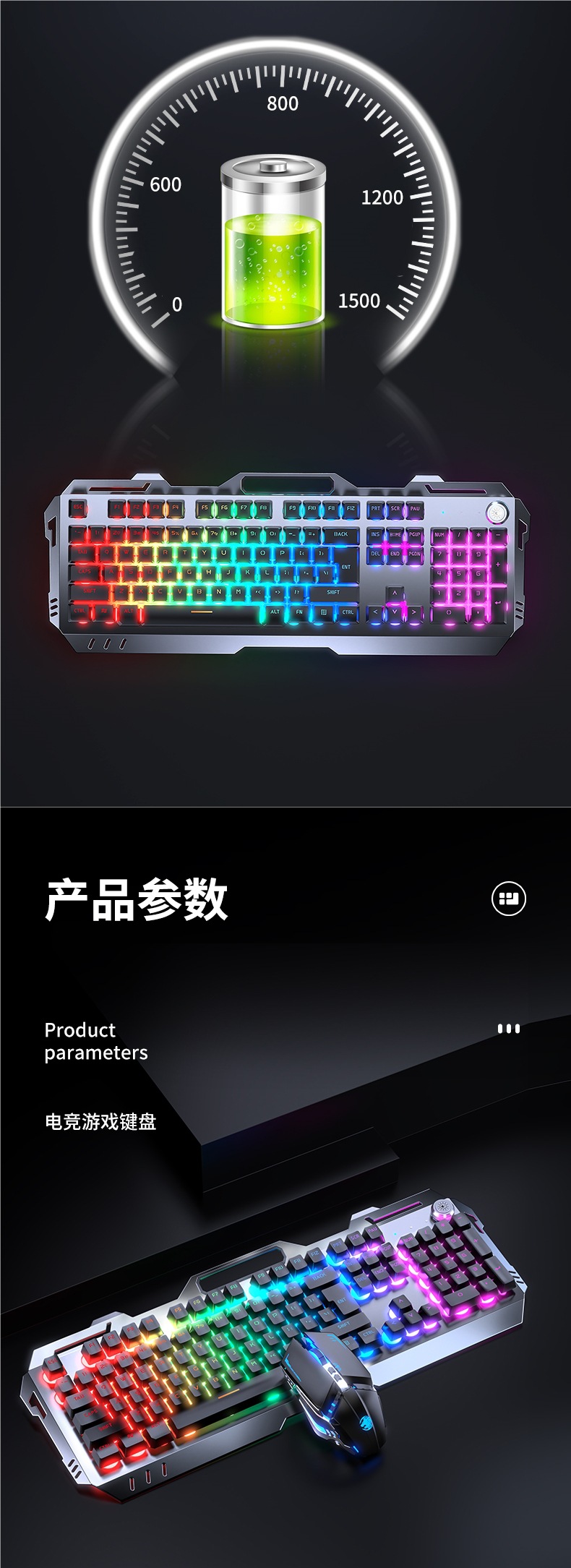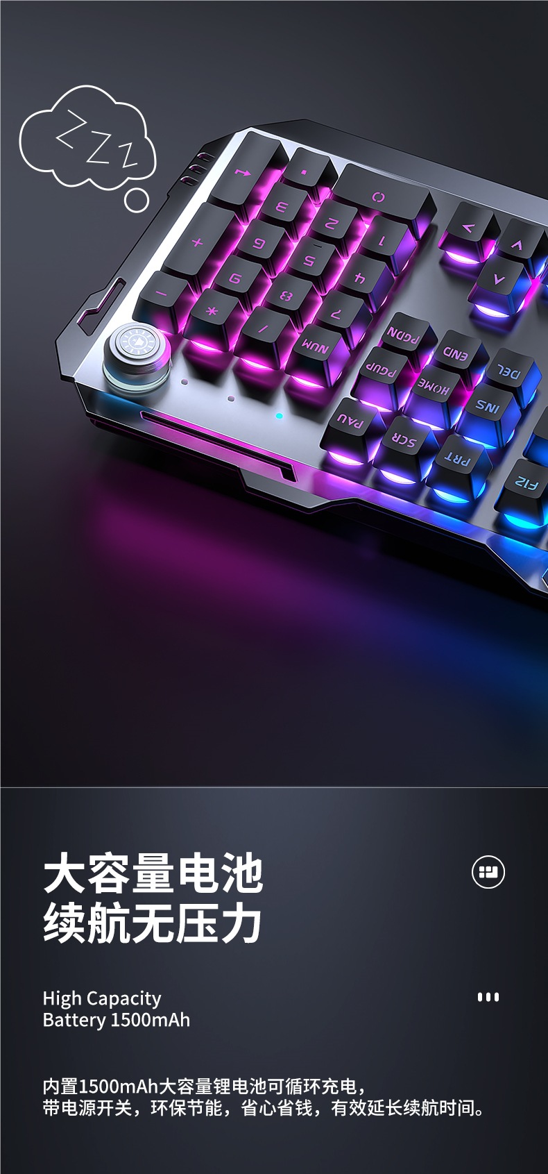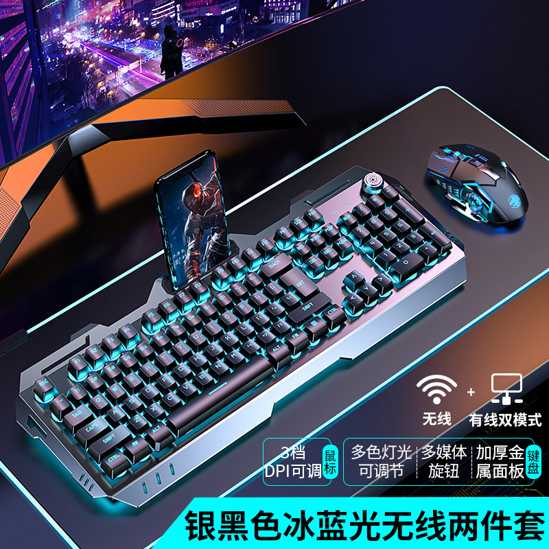 • 메탈 메카니컬 터치 - 게이밍 전용 - 실버 블랙 아이스 블루 라이트 3종 세트 [무선 듀얼 모드 충전 버전] + 무선 게이밍 마우스 + 헤드폰 - No - 104키 - 공식