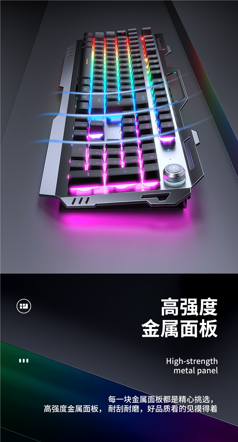 • 메탈 기계식 느낌 - 게임 전용 - 실버 블랙 오렌지 옐로우 라이트 [플래그십 에디션] - 없음 - 104 키 - 공식 표준