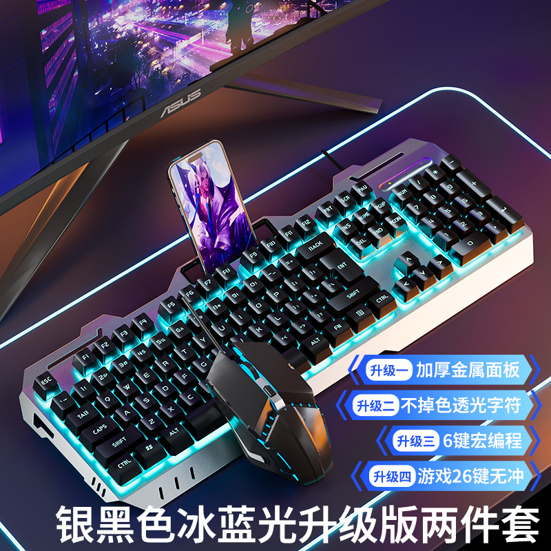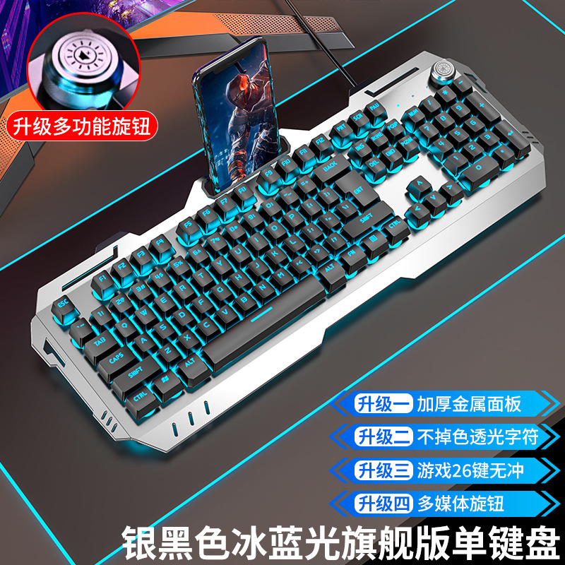 • 메탈 기계식 느낌 - 게임 전용 - 실버 블랙 아이스 블루 라이트 [얼티밋 에디션] + G9 매크로 마우스 - 아니요 - 104 키 - 공식 표준