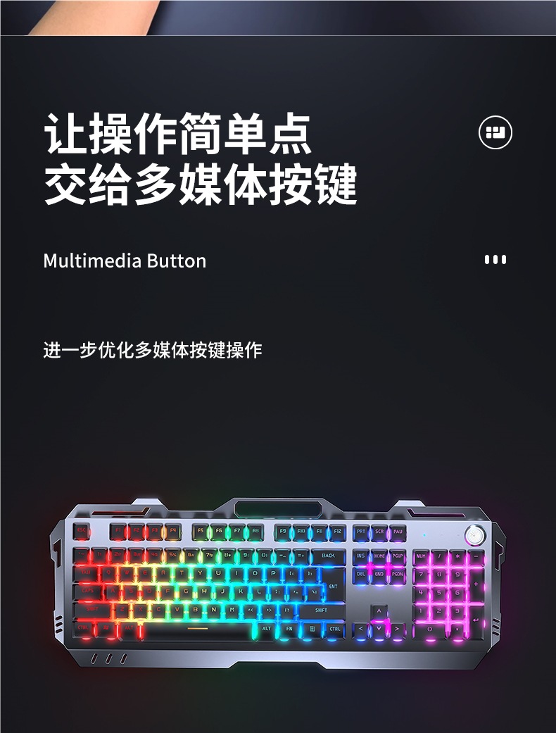 • 메탈 메카니컬 느낌 - 게이밍 전용 - 실버 및 블랙 레인보우 라이트 [플래그십 에디션] - 없음 - 104키 - 공식 규격