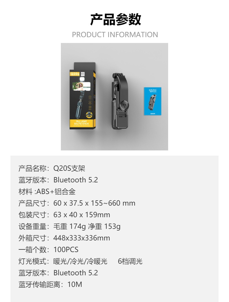 Q20S 미니 셀카봉 조명 포함 데스크탑 라이브 방송 삼각대 휴대폰 거치대 도매 사진 촬영 도구 휴대용 컴팩트스토어 가기