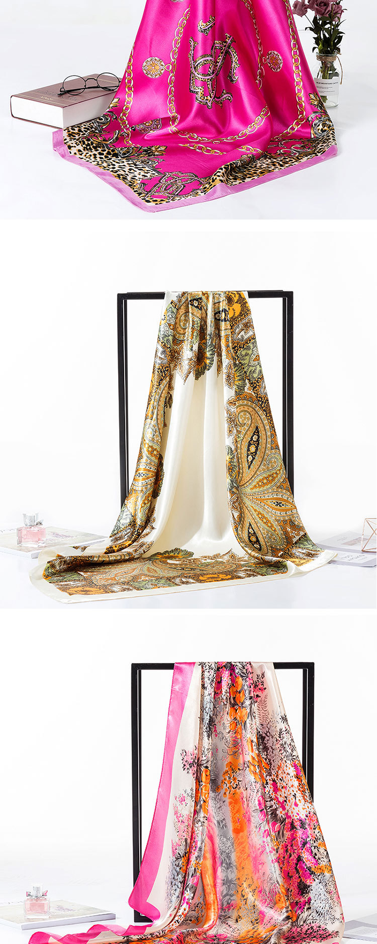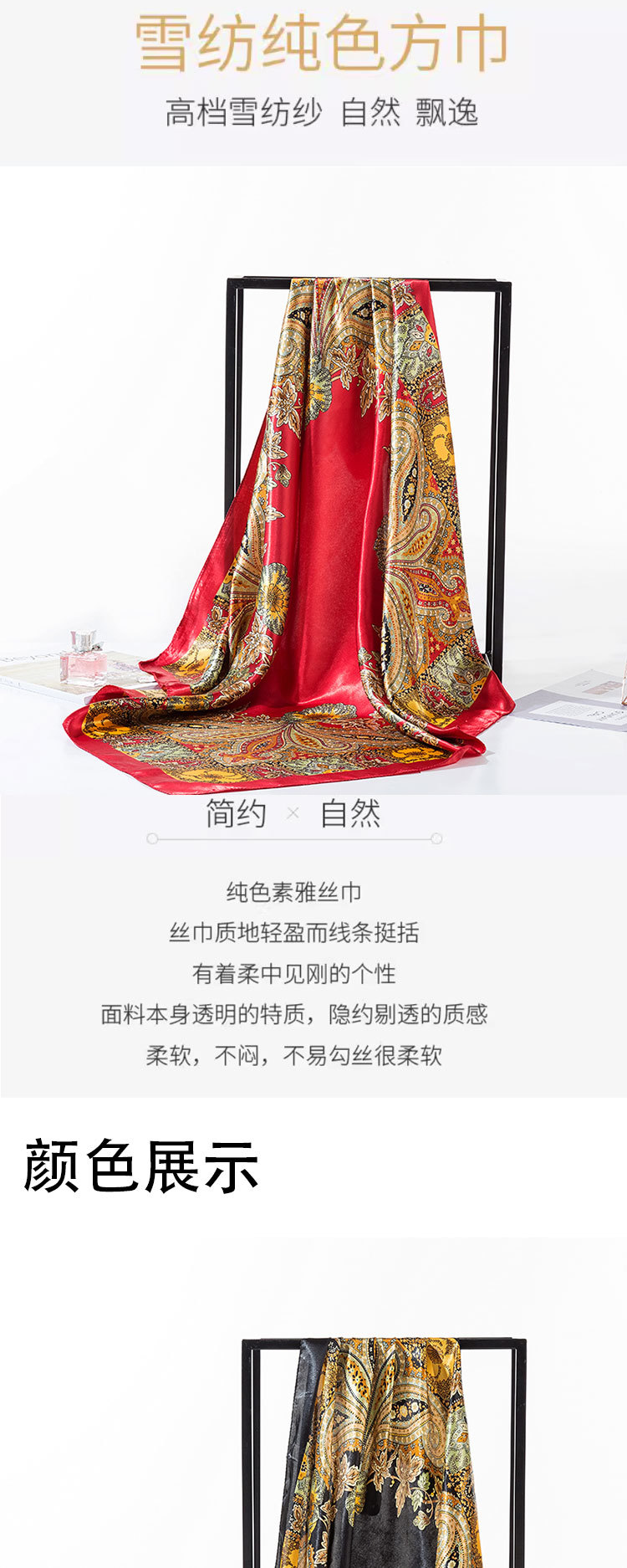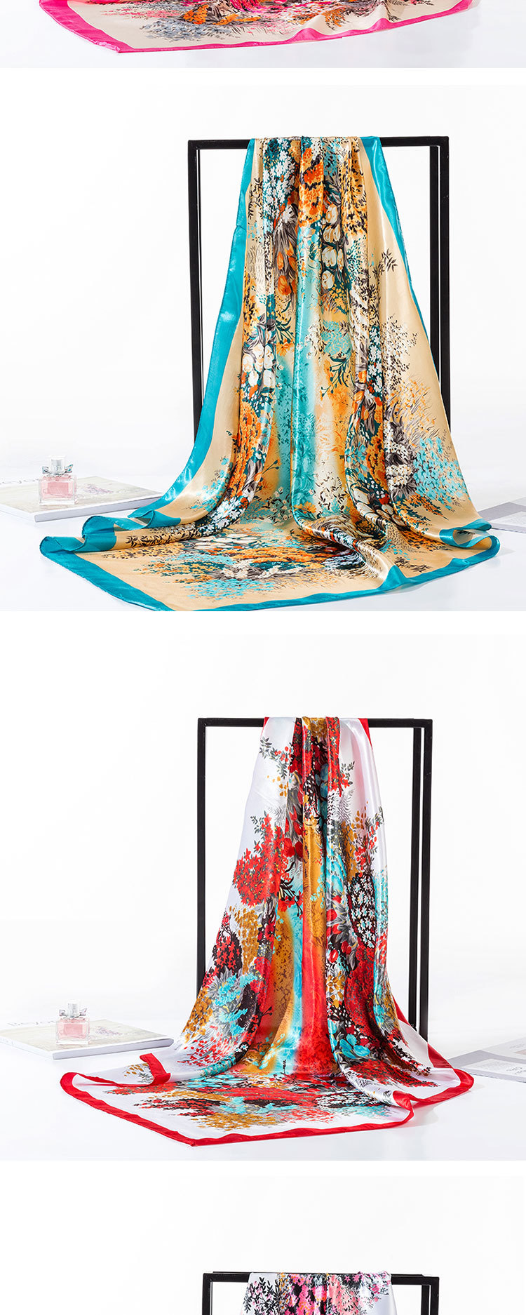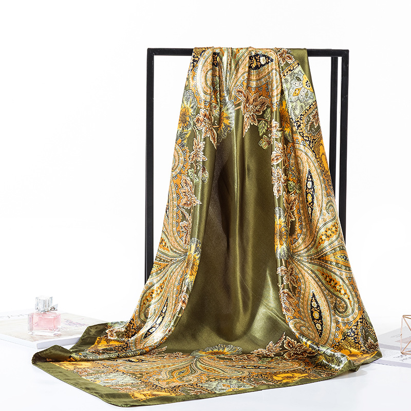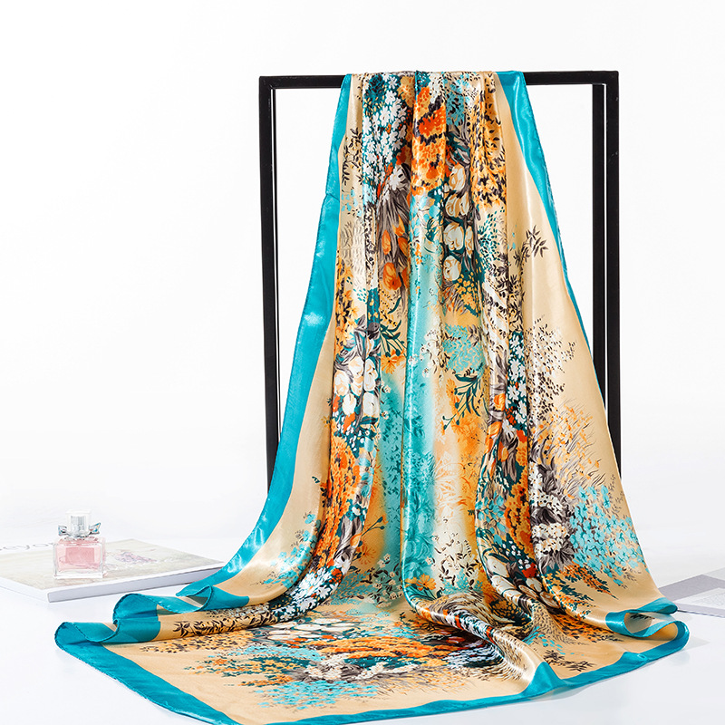 2025 새로운 여성의 모조 실크 스카프 허리 드럼 꽃 시리즈 전문 대형 사각형 스카프 목도리 스카프 도매스토어 가기
