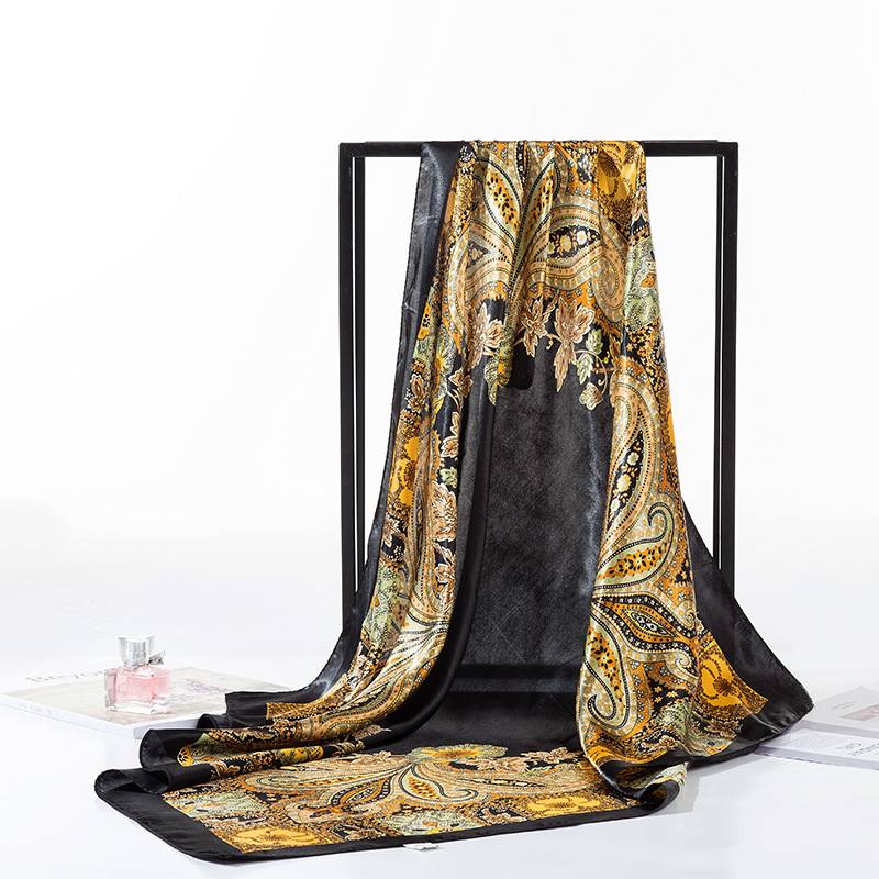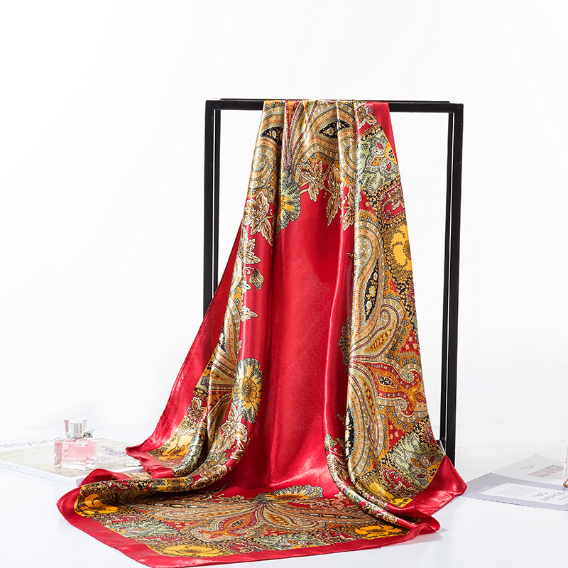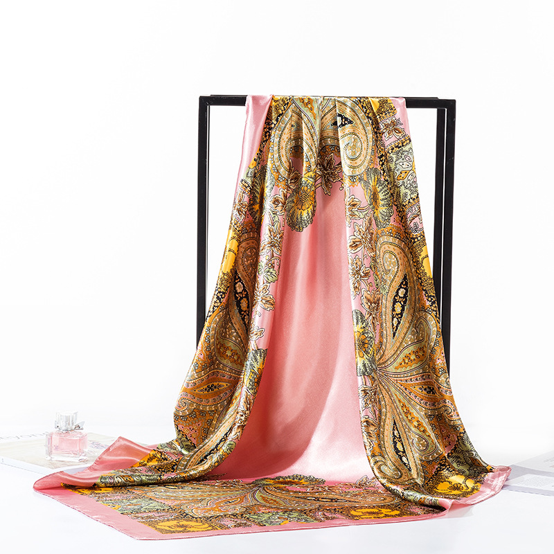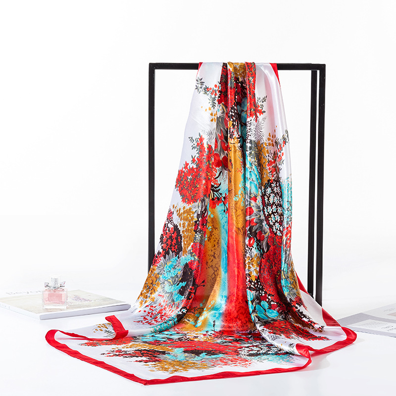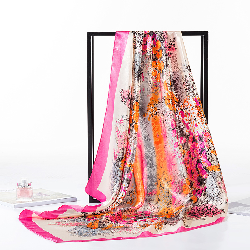 2025 새로운 여성의 모조 실크 스카프 허리 드럼 꽃 시리즈 전문 대형 사각형 스카프 목도리 스카프 도매