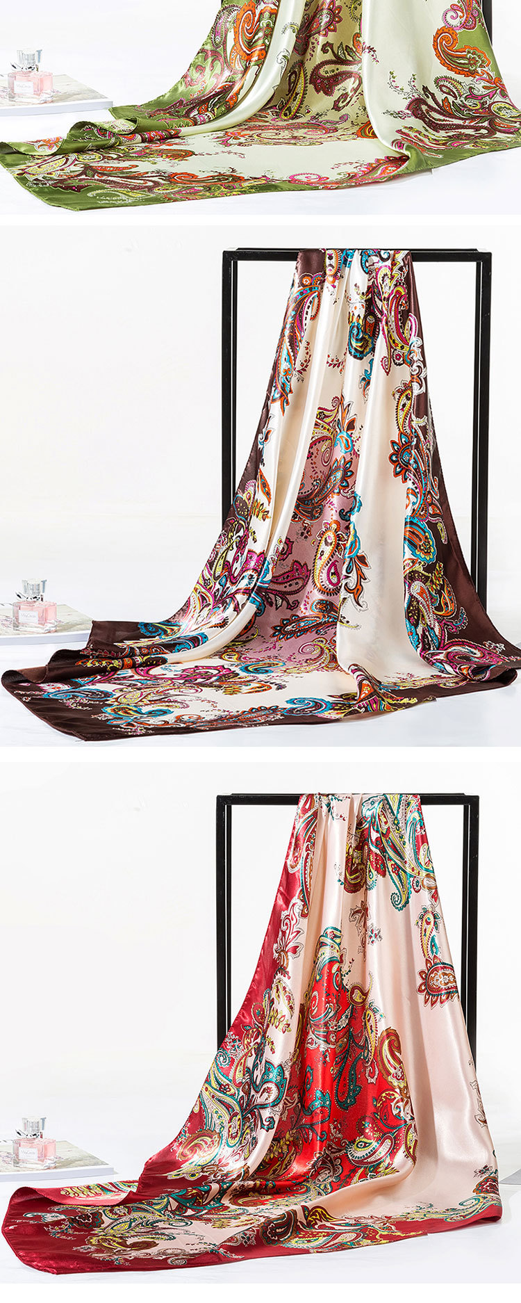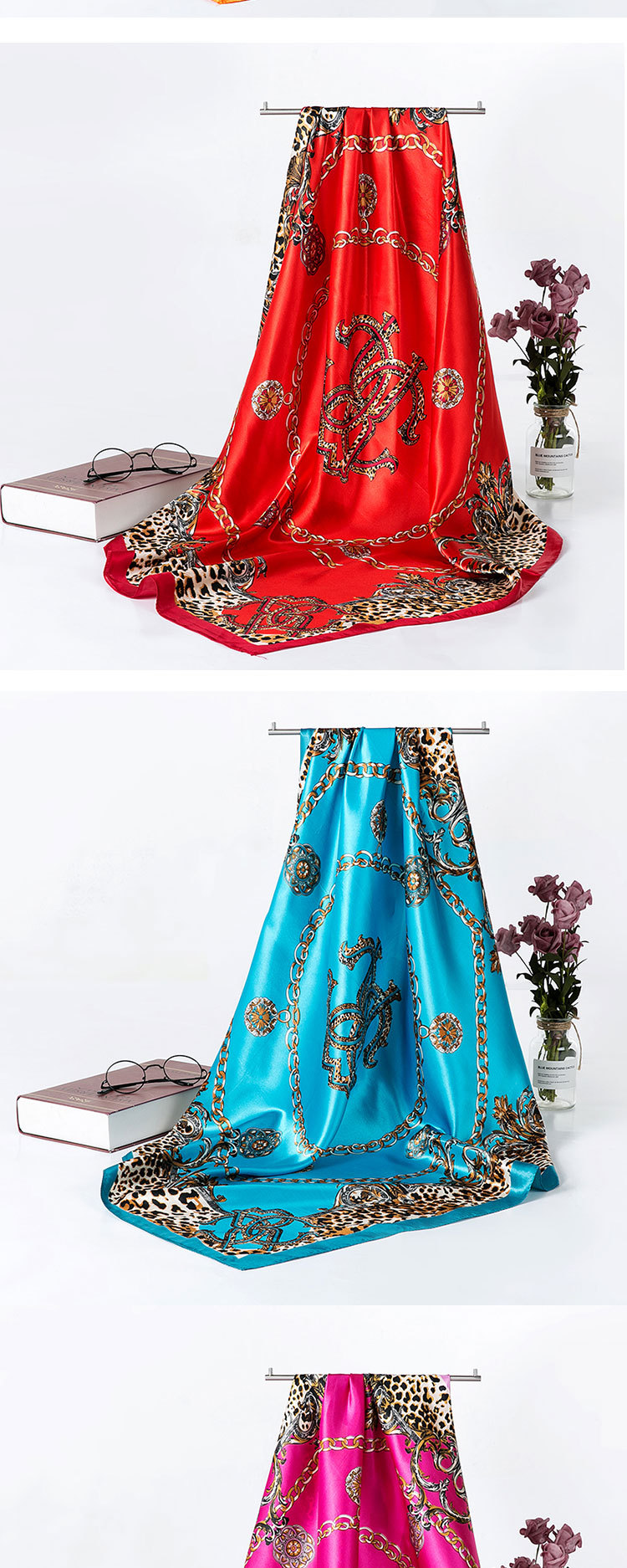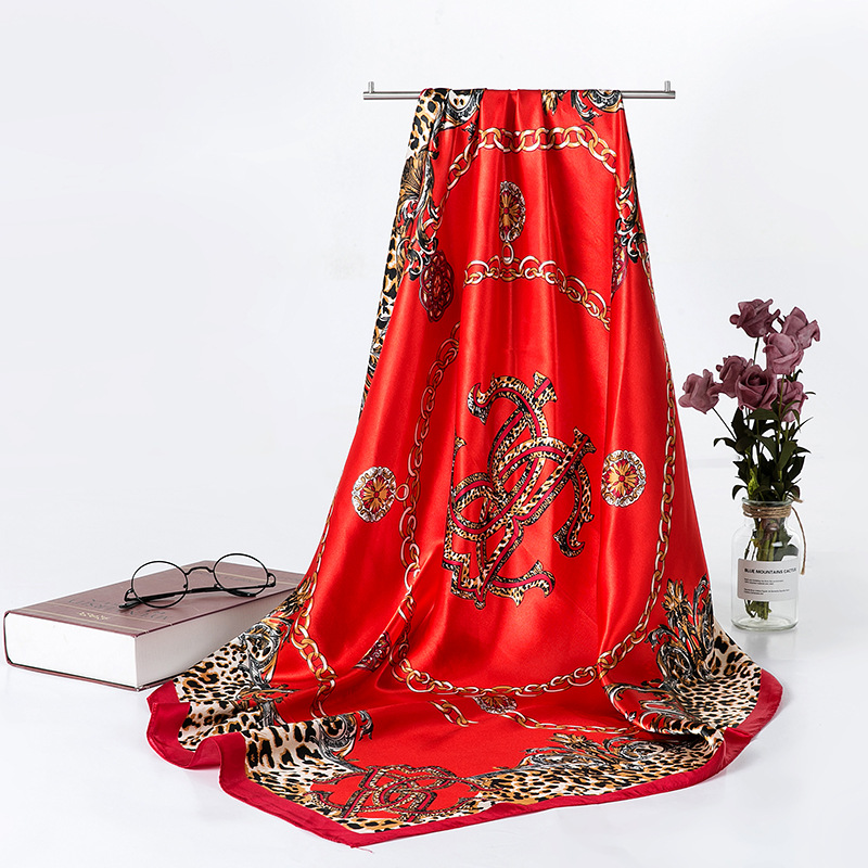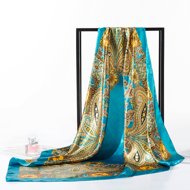 2025 새로운 여성의 모조 실크 스카프 허리 드럼 꽃 시리즈 전문 대형 사각형 스카프 목도리 스카프 도매