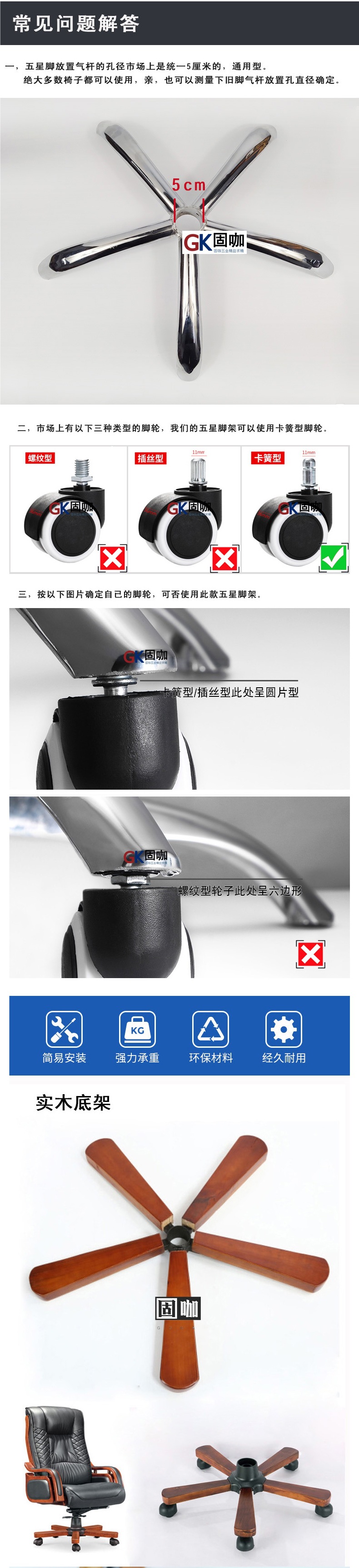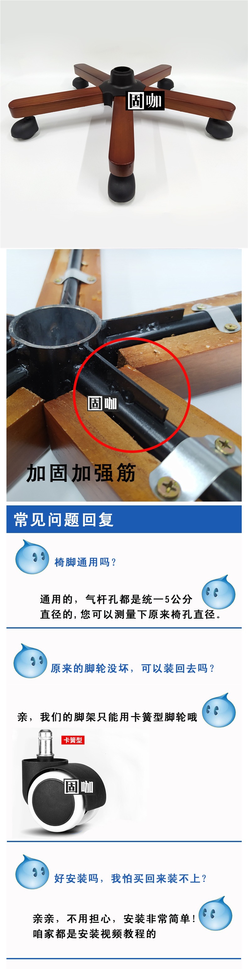 사무실 의자 회전 의자 액세서리 두꺼운 단단한 나무 보스 의자 발 섀시 5성 삼각대 컴퓨터 의자 베이스 스틸 삼각대스토어 가기