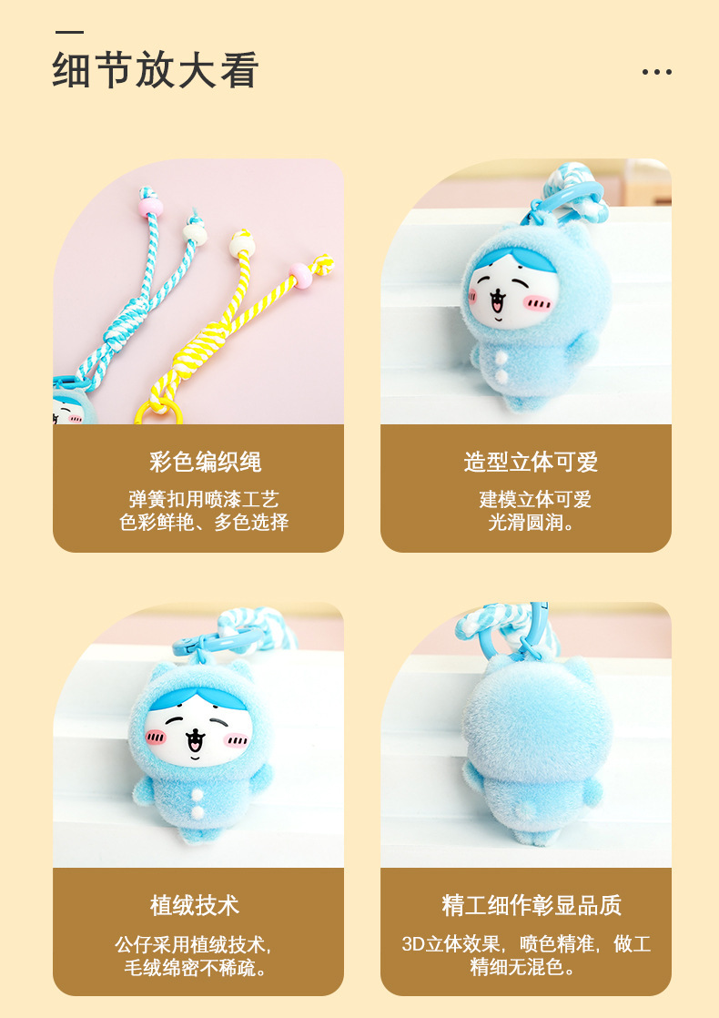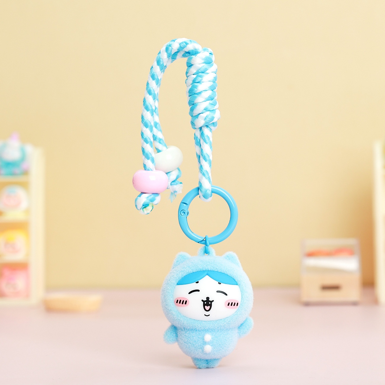 귀여운 만화 벨벳 Jiikawa 키 체인 펜던트 다채로운 땋은 로프 학교 가방 펜던트 키 체인 도매