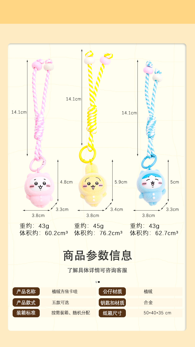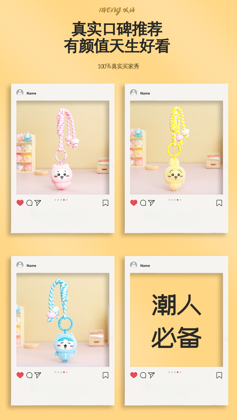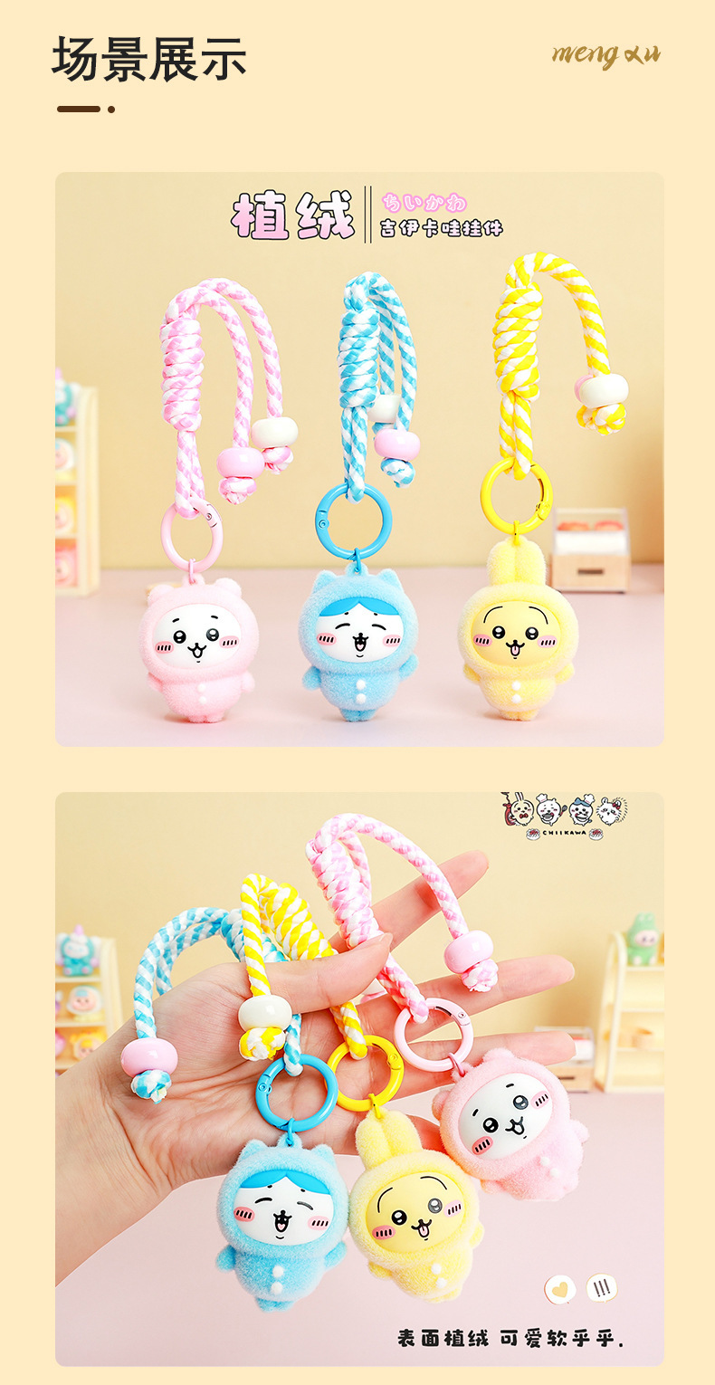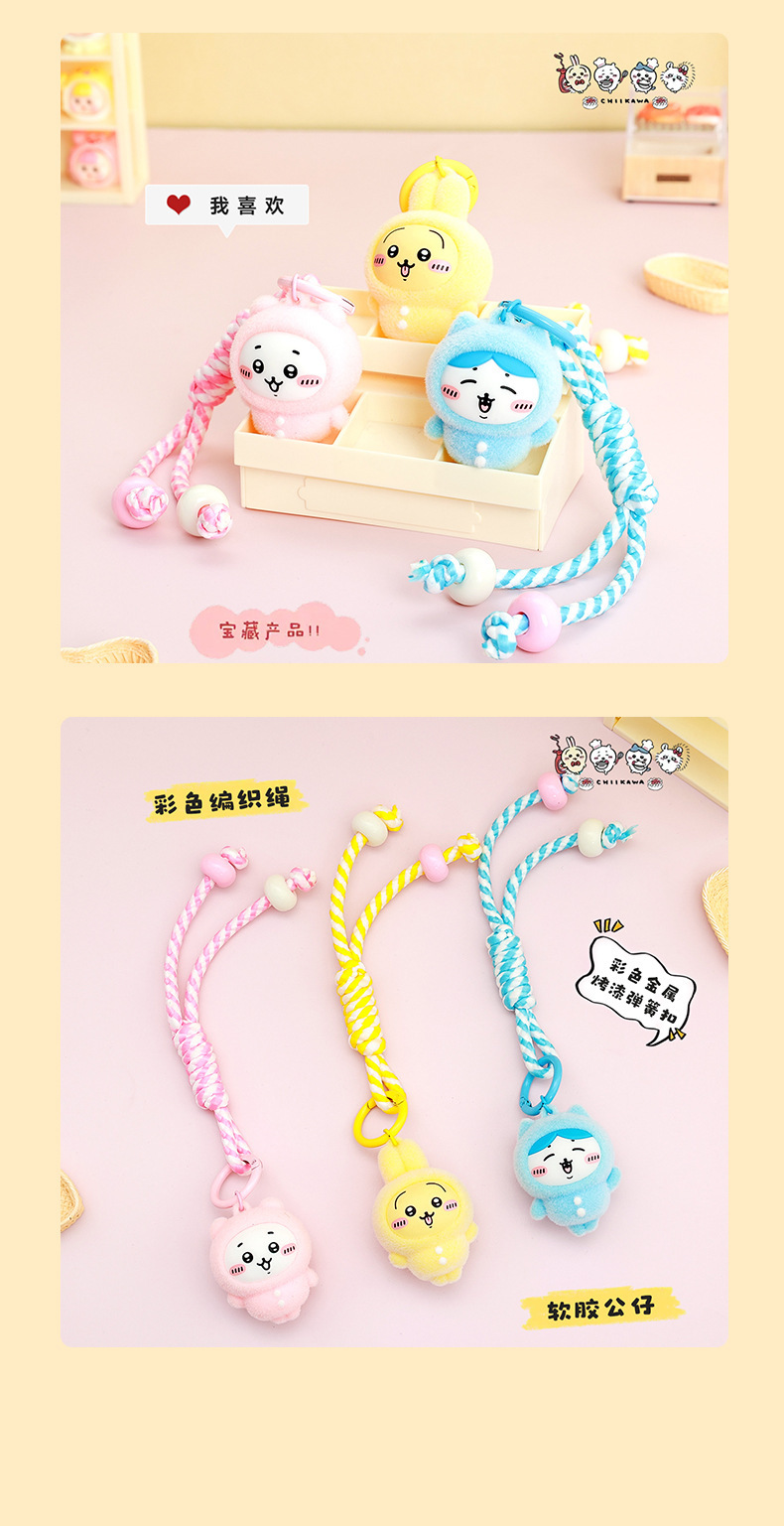 귀여운 만화 벨벳 Jiikawa 키 체인 펜던트 다채로운 땋은 로프 학교 가방 펜던트 키 체인 도매스토어 가기