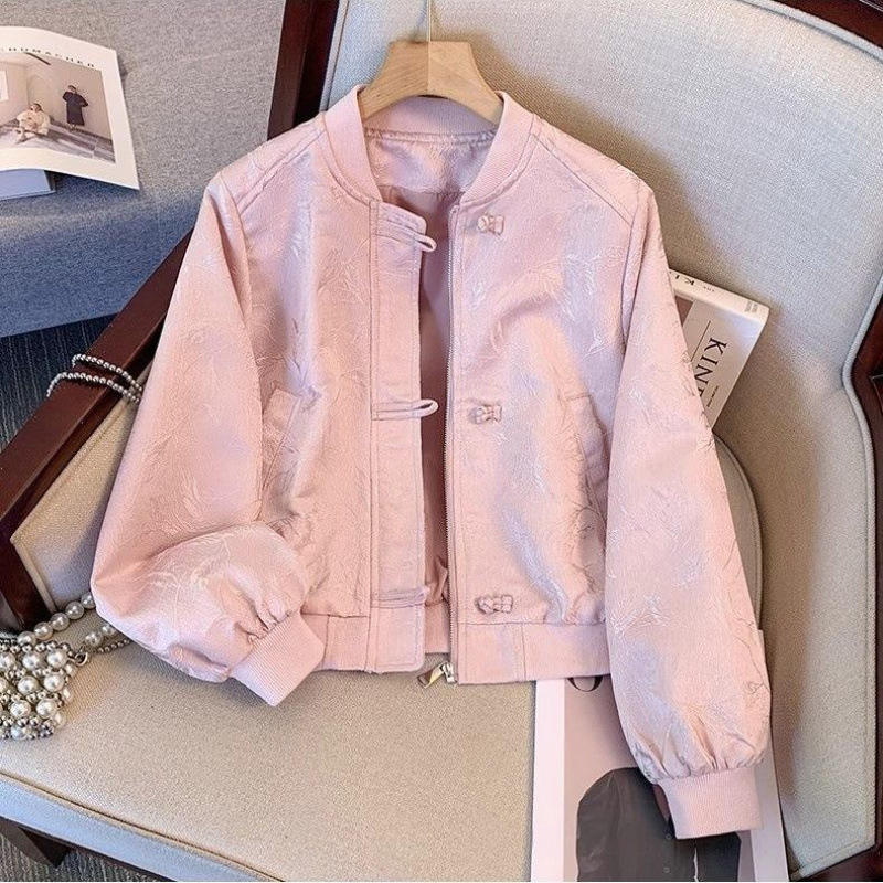 여성을위한 새로운 중국 스타일 야구 재킷 봄, 가을 2024 새로운 핫 스타일 버클 자카드 작은 향기 재킷