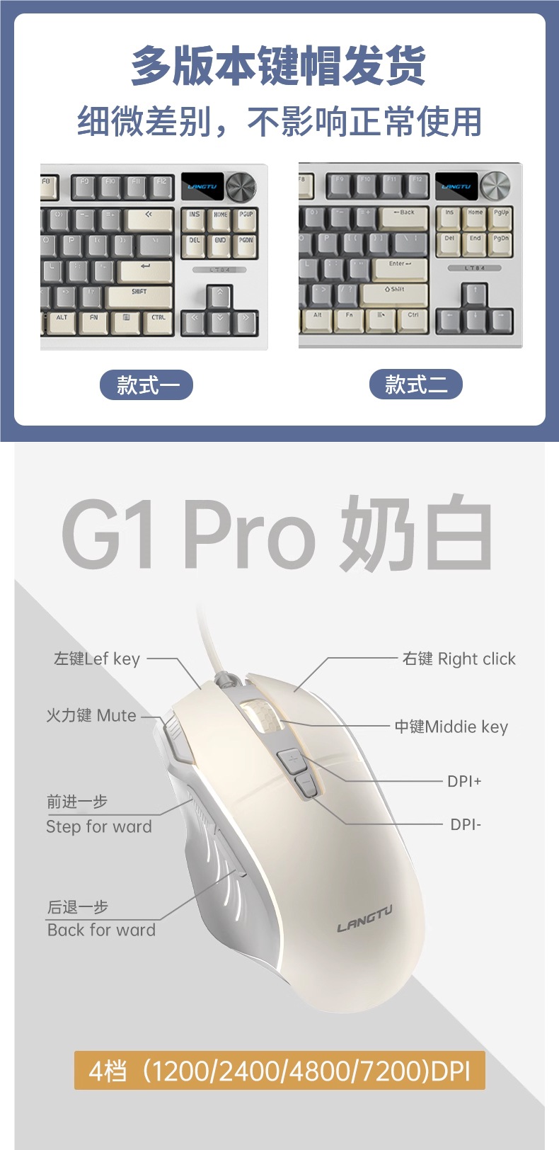 • Ice Blue-LOGO 스크린 [실버 샤프트] 키보드 및 마우스 세트