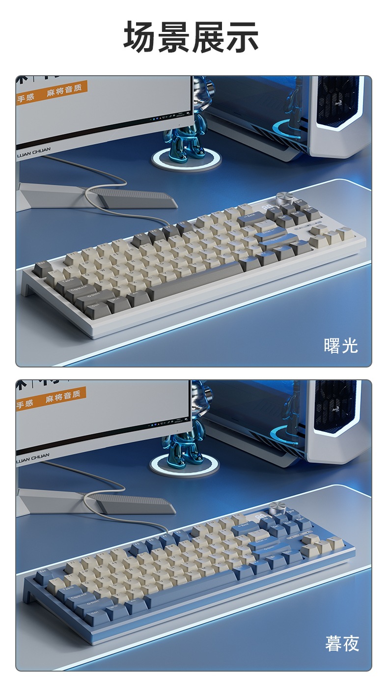• 아이스 블루-로고 스크린 [골드 샤프트] 키보드 및 마우스 세트