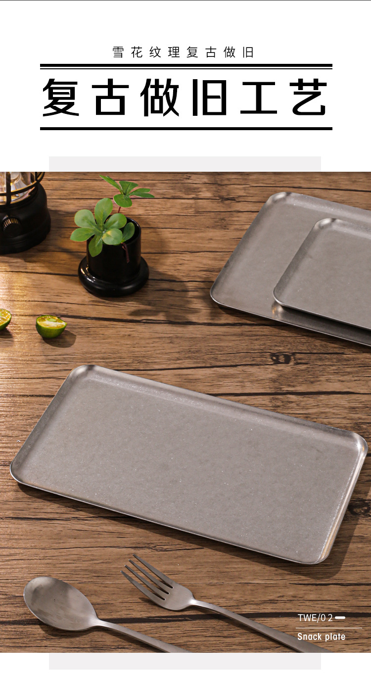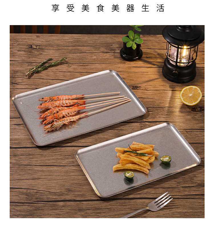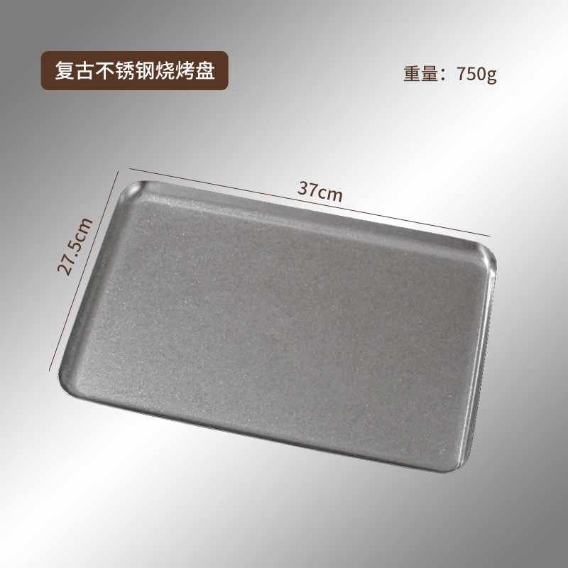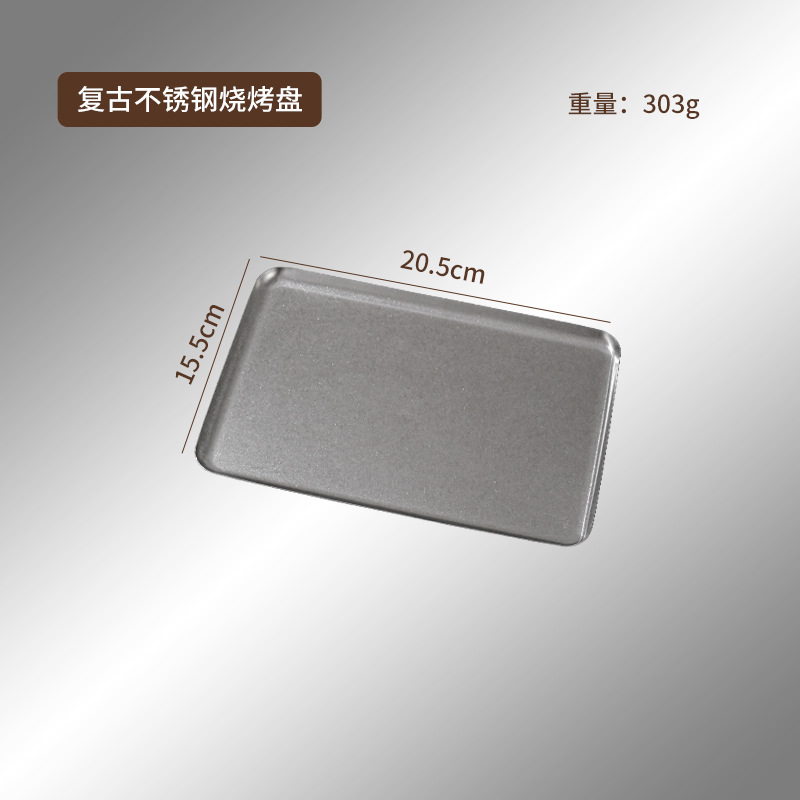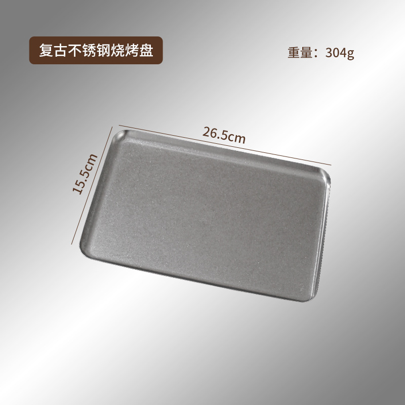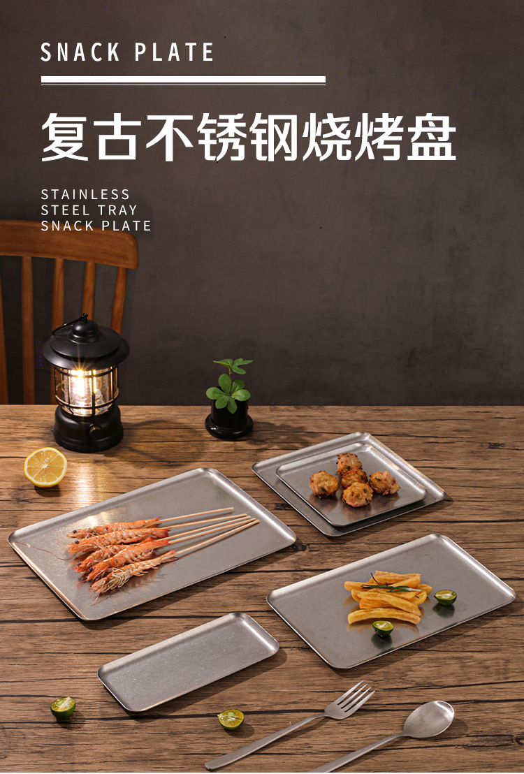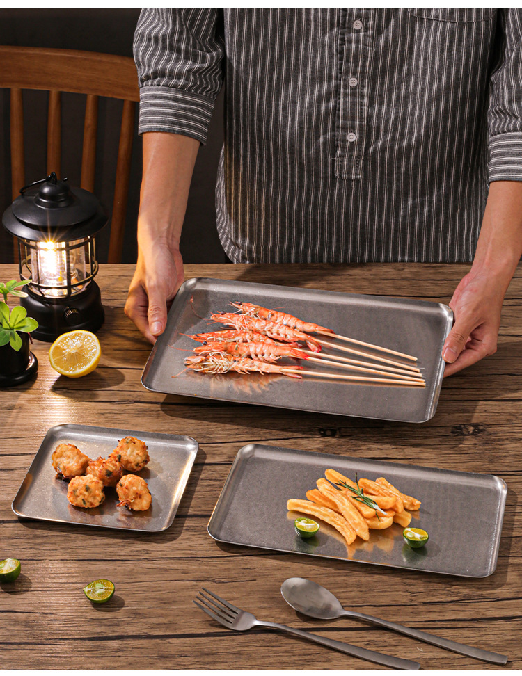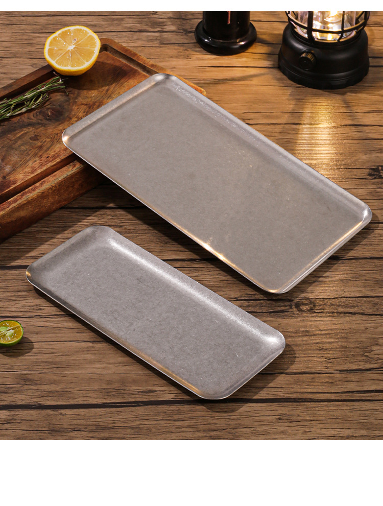 레트로 스테인리스 직사각형 접시 카페 보관 트레이 바베큐 트레이 빈티지 인더스트리얼 스타일 평평한 트레이