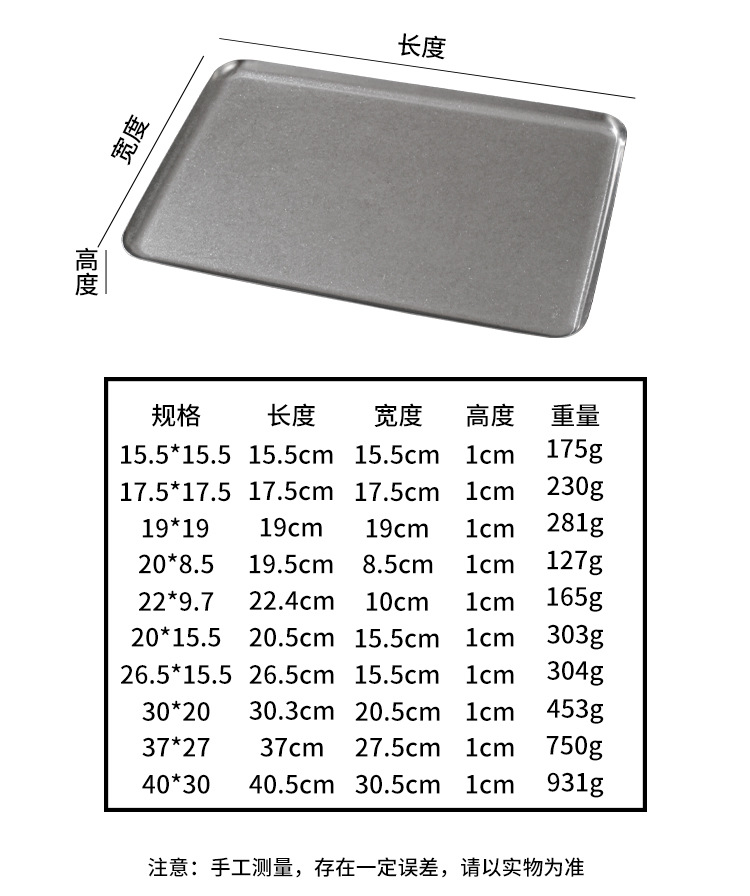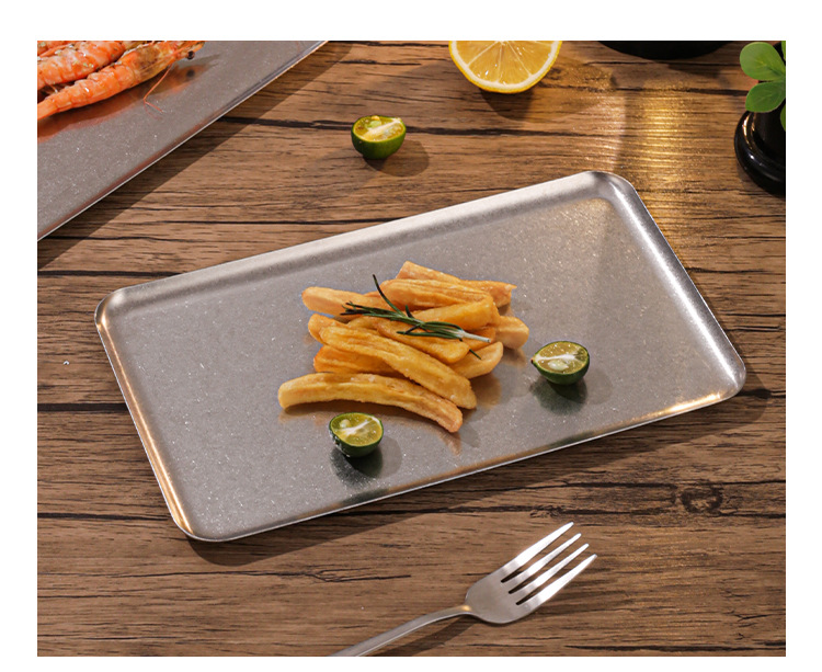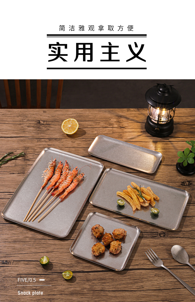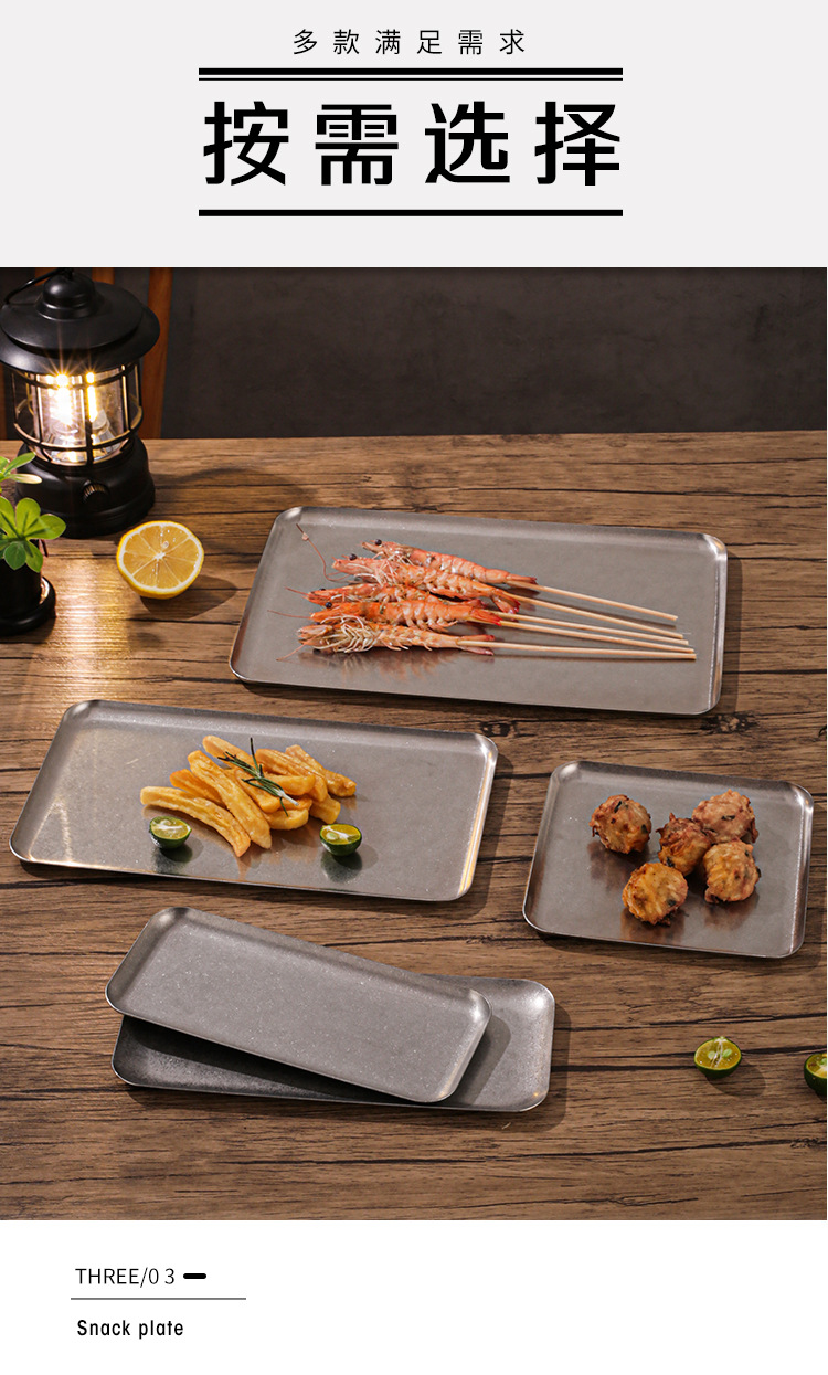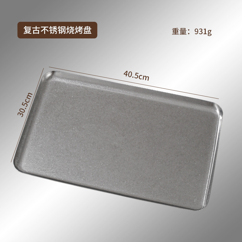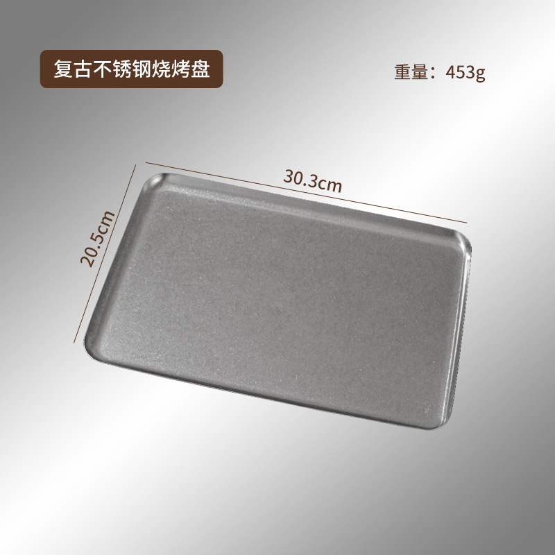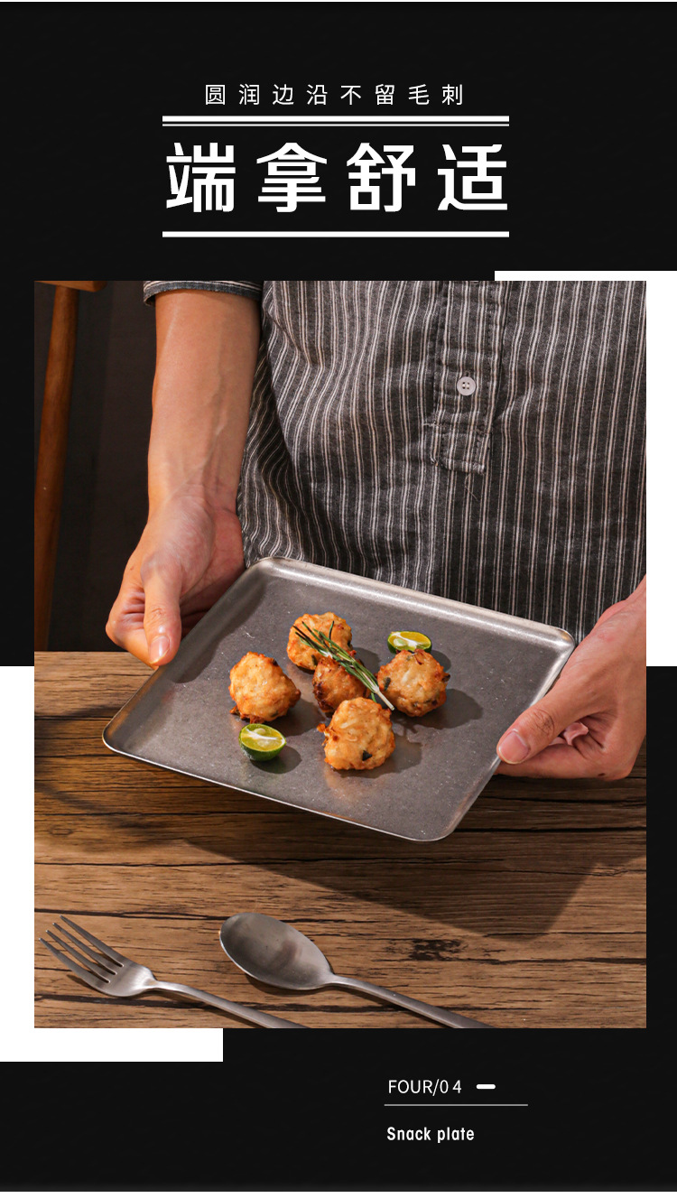 레트로 스테인리스 직사각형 접시 카페 보관 트레이 바베큐 트레이 빈티지 인더스트리얼 스타일 평평한 트레이
