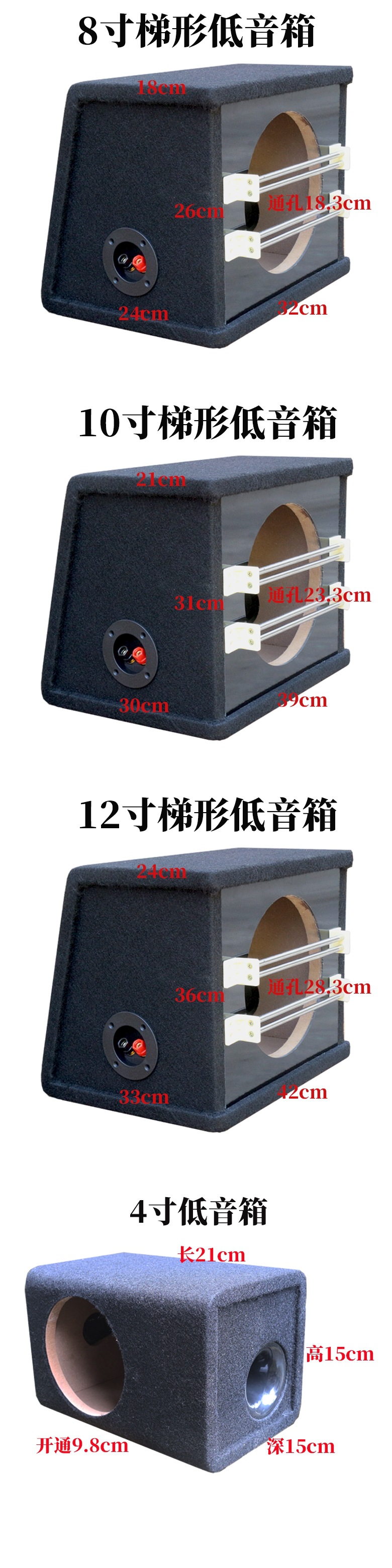 자동차 오디오 서브우퍼 빈 케이스 홈 초저 사다리꼴 오픈 박스 소량 10inch 12inch 스피커 나무 상자