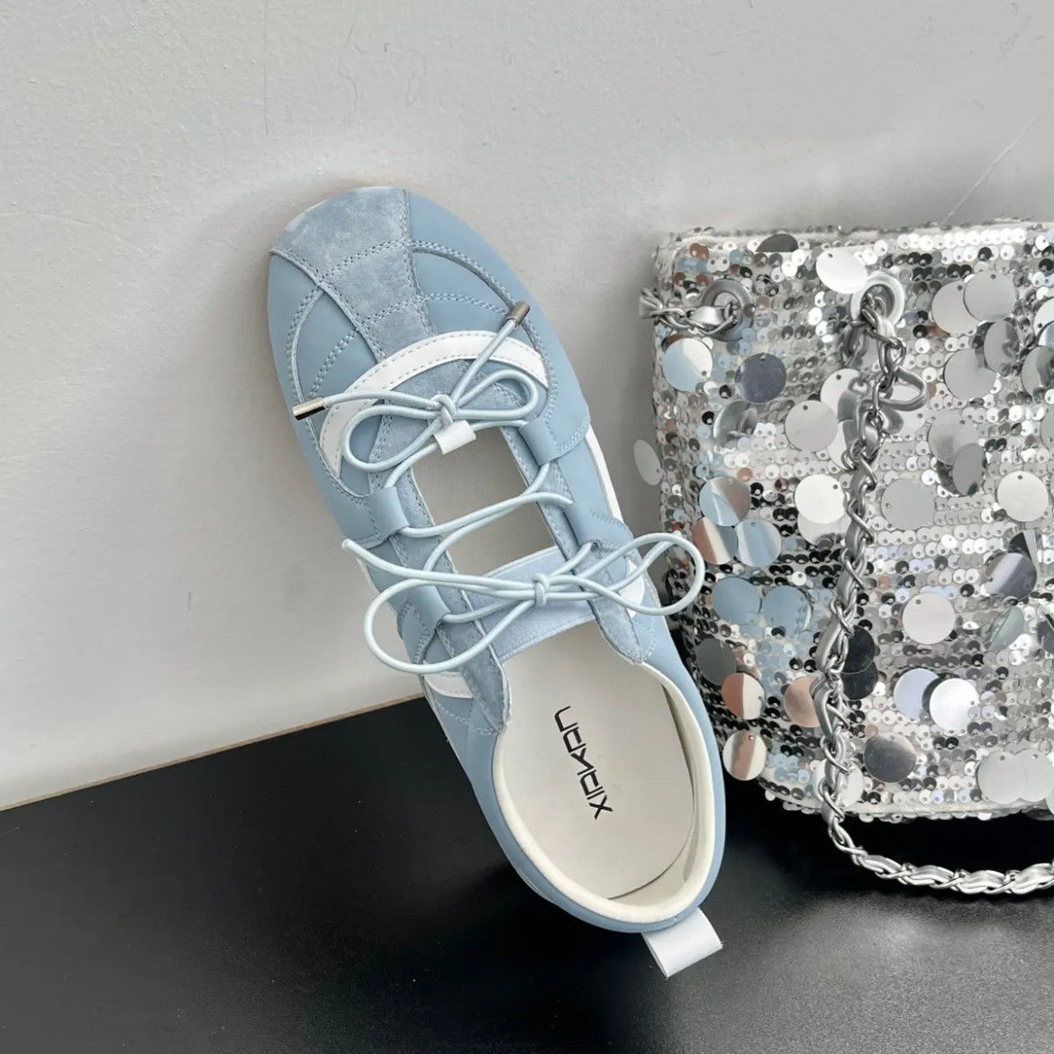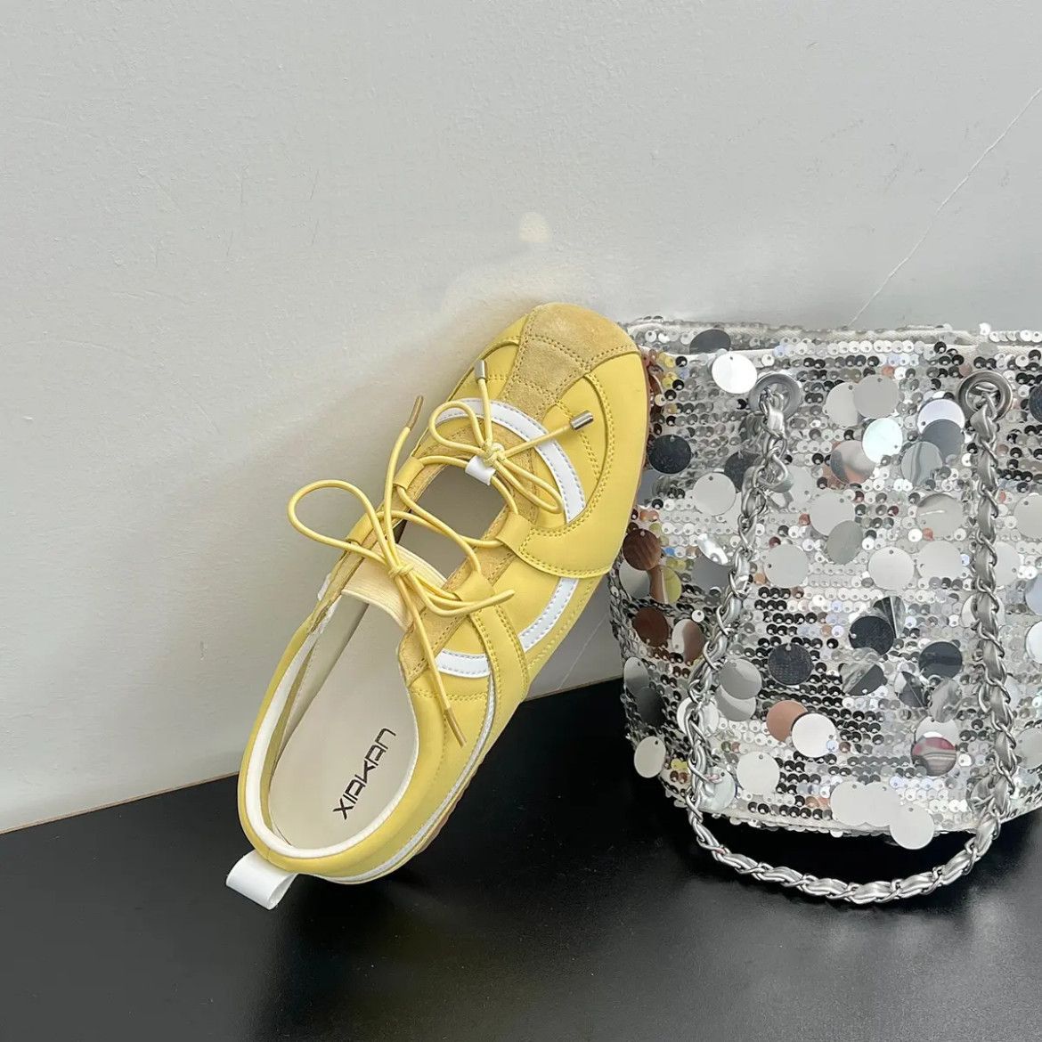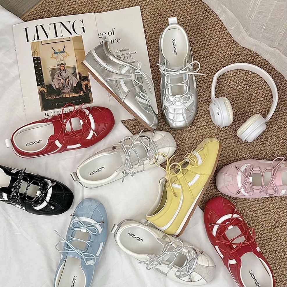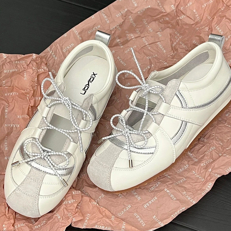 여성 인터넷 연예인과 같은 스타일을위한 실버 발레 슈즈 2025 여름 새로운 한국 스타일 나비 넥타이 통기성 경량 로퍼스토어 가기