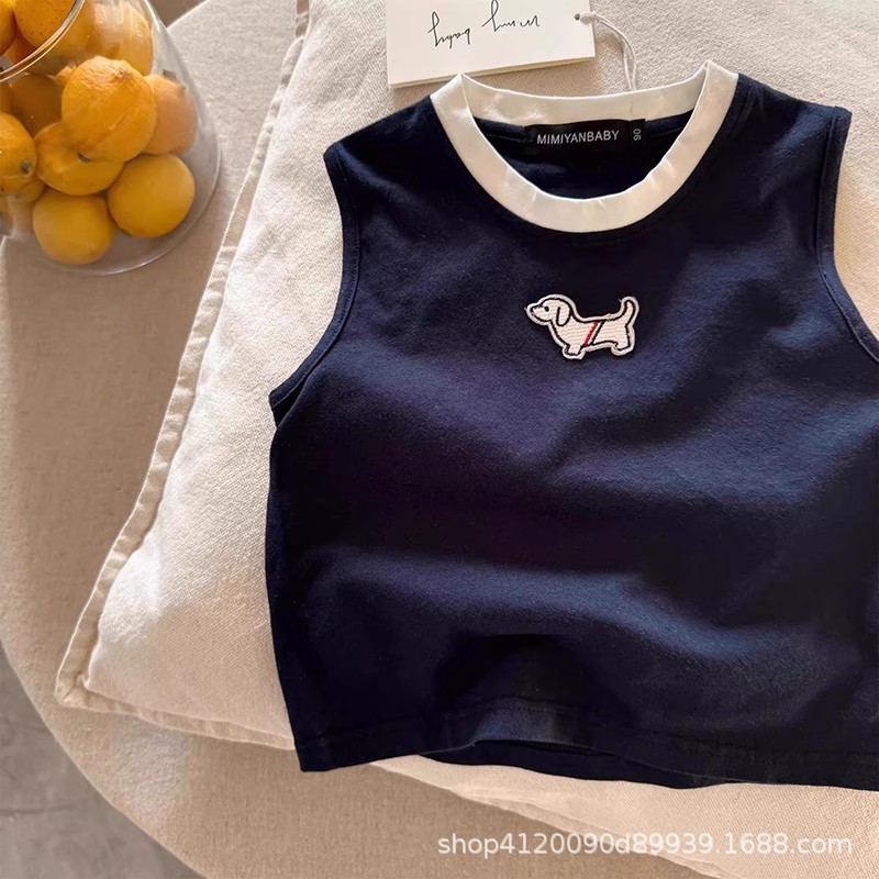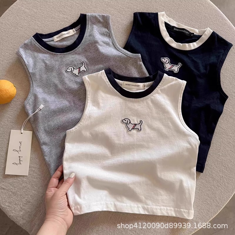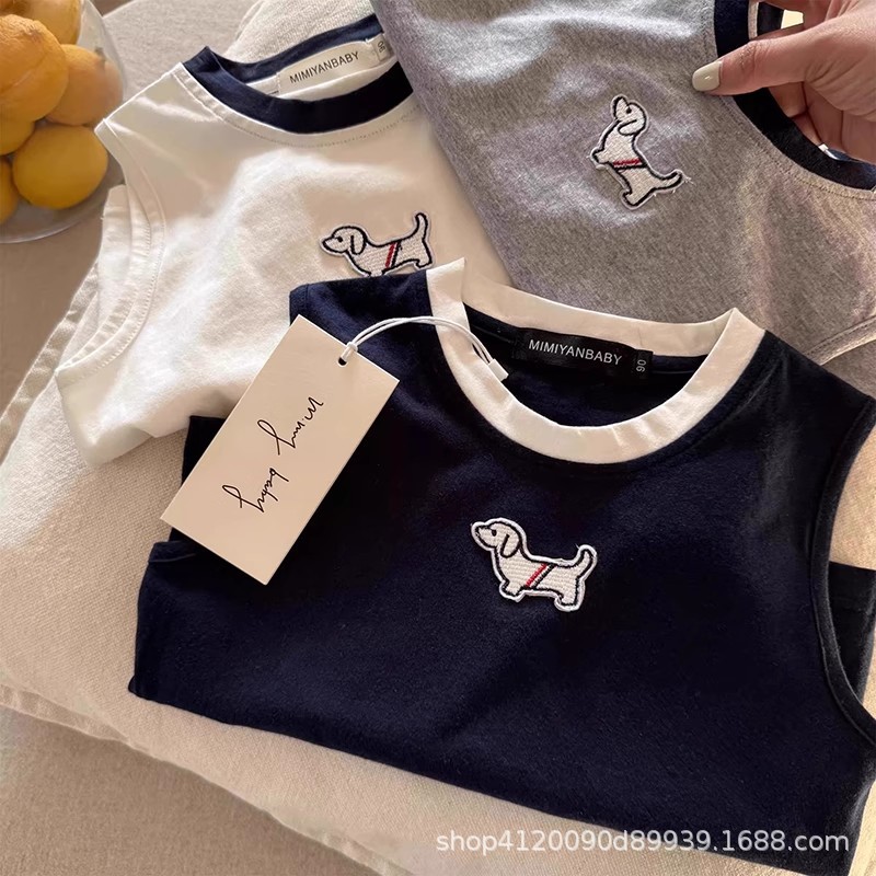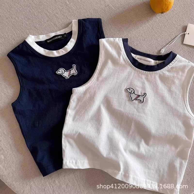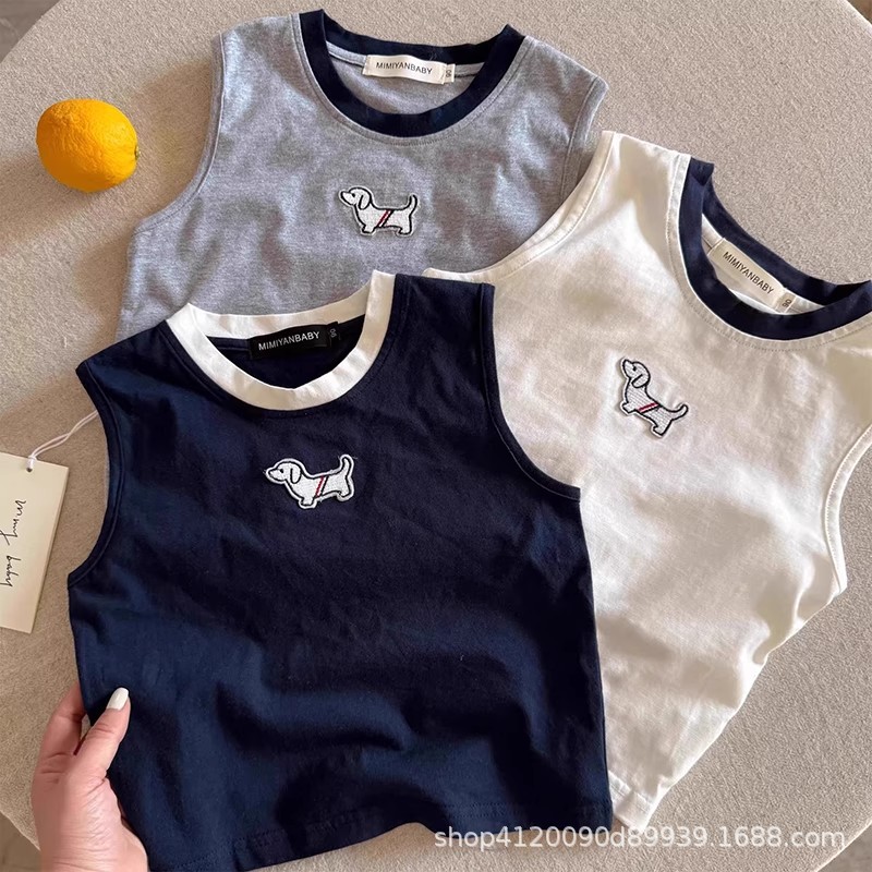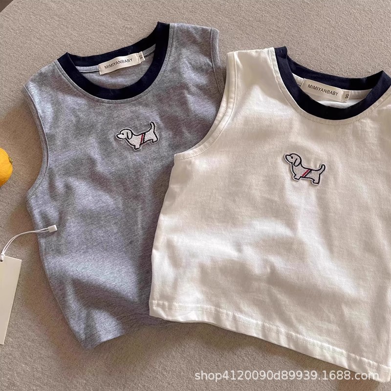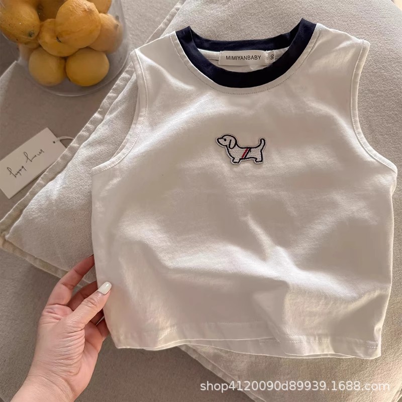 도매 순수 코튼 소녀 민소매 조끼 여름 어린이 만화 티셔츠 소년 여름 옷 아기 탑 여름 아동 의류스토어 가기