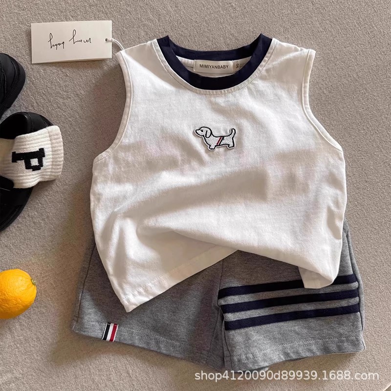 도매 순수 코튼 소녀 민소매 조끼 여름 어린이 만화 티셔츠 소년 여름 옷 아기 탑 여름 아동 의류