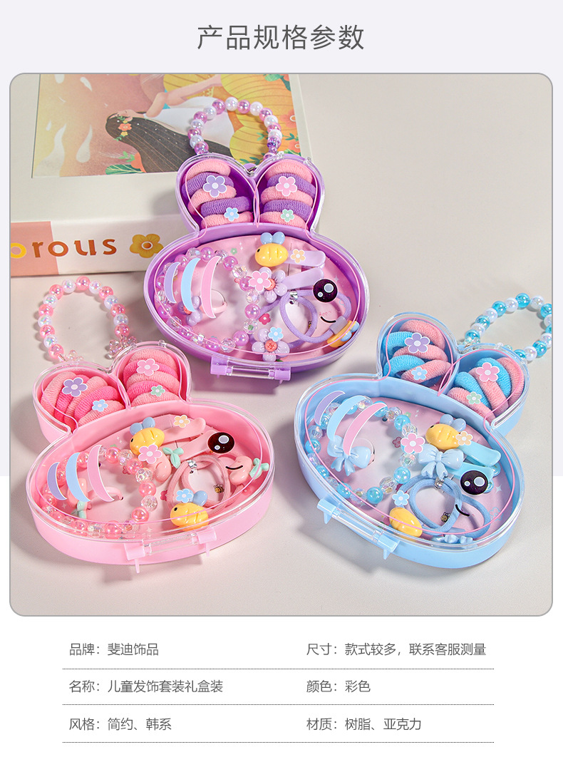 • 귀여운 토끼 헤어 액세서리 팔찌 세트 조합 1박스