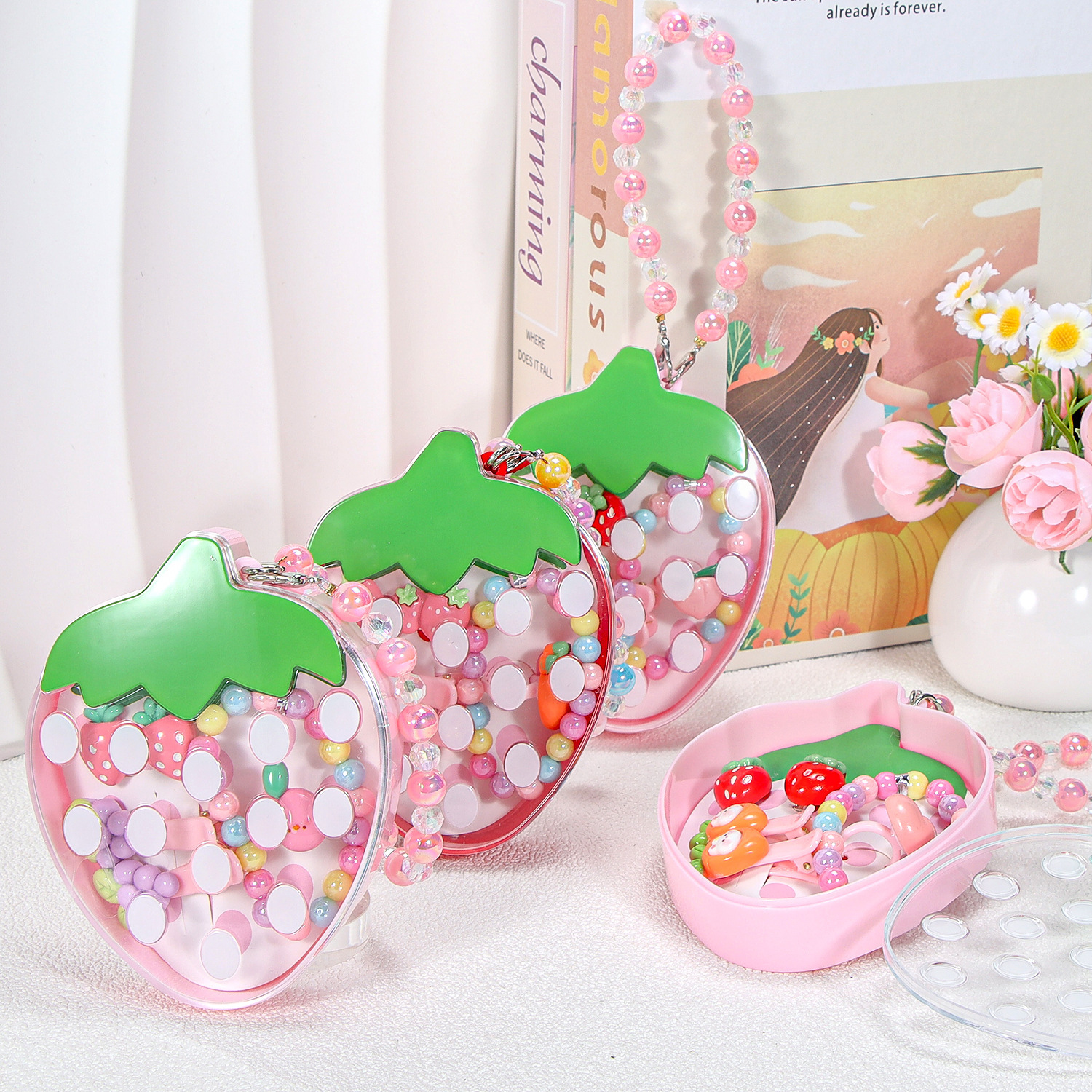 • 입체적인 딸기 헤어 액세서리 팔찌 세트 1박스