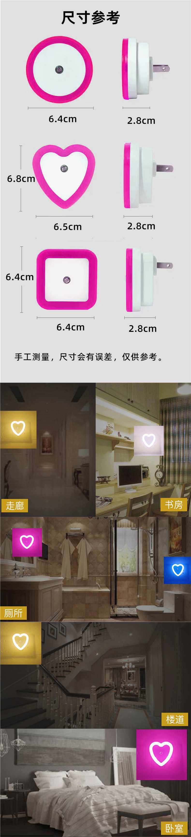 • 1개 구매시 3개 무료(동일 스타일) 4개 발송 [하트 모양 핑크] (조명 제어 센서)