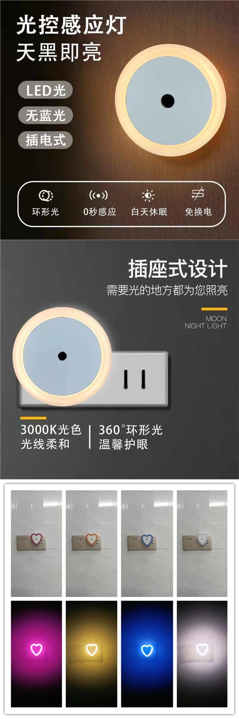 작은 밤 빛 플러그인 광 제어 센서 빛 밤 빛 침실 led 램프 머리맡 밤 빛 어린이 수면 에너지 절약 d