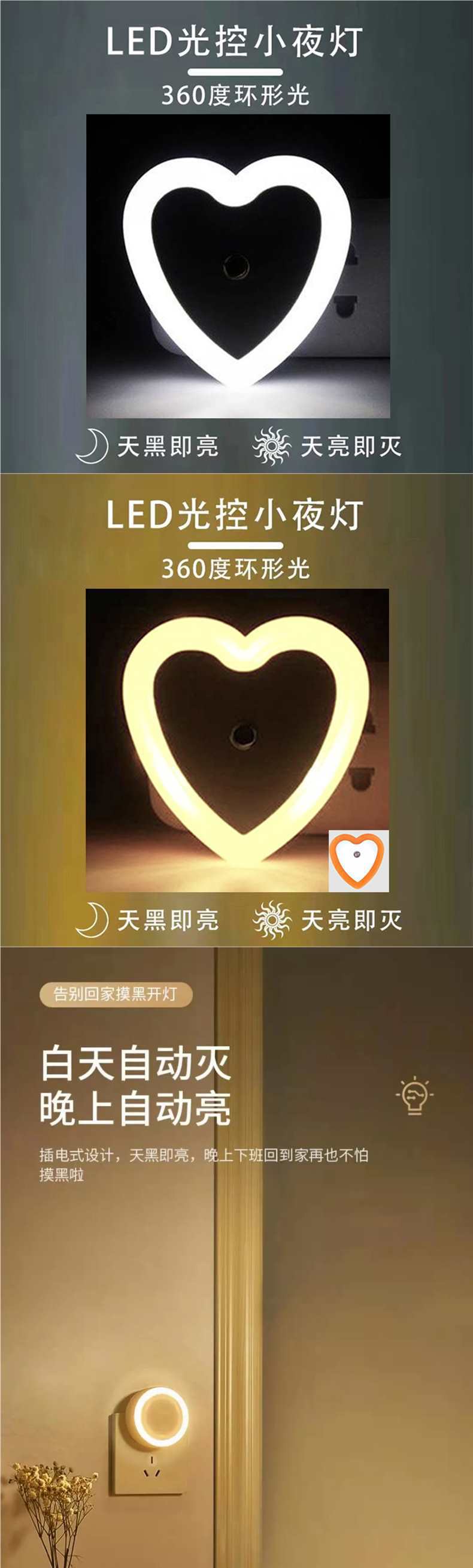 • 1개 구매시 1개 무료(동일 스타일) 2개 발송 [하트형 화이트] (조명 제어 센서)