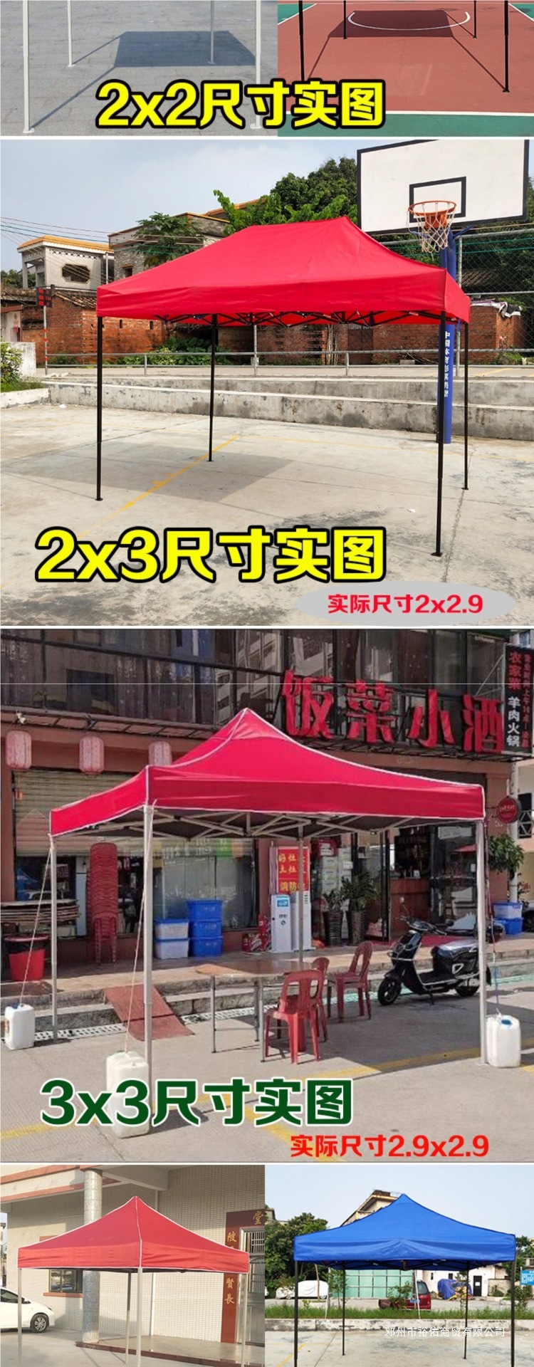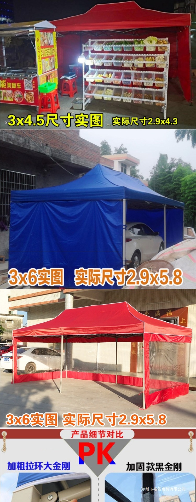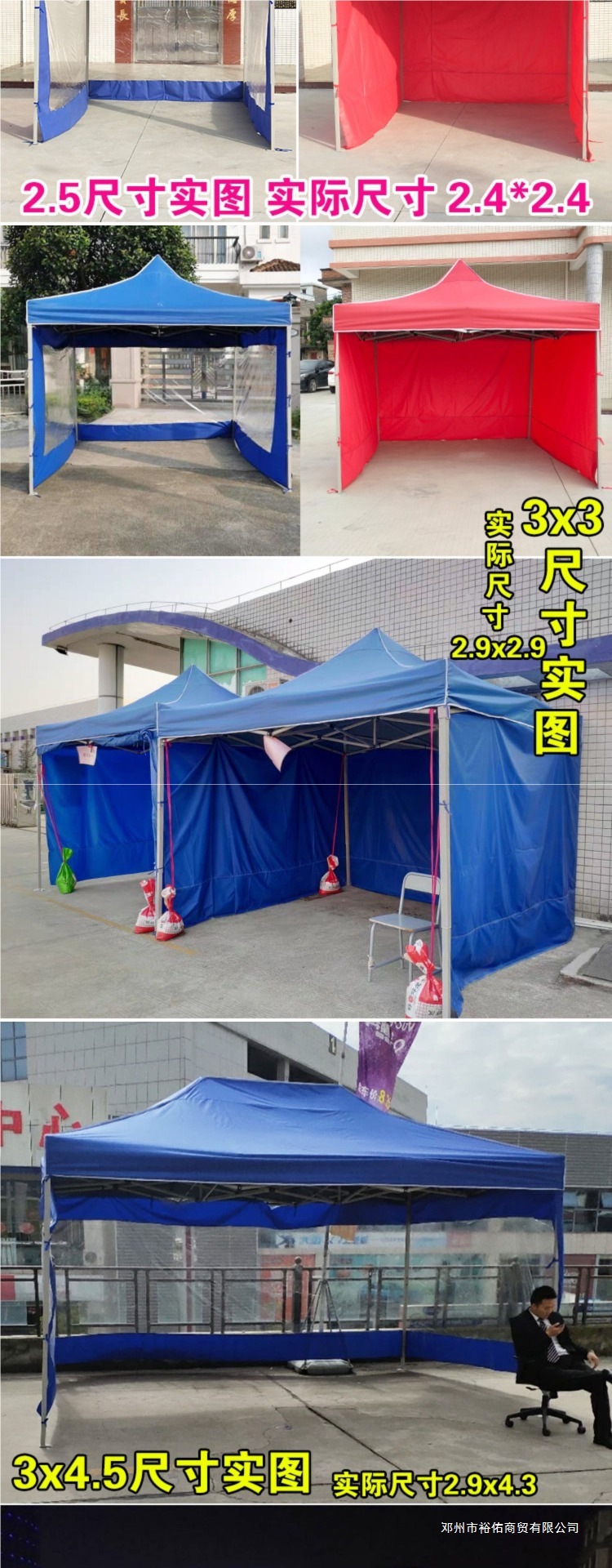 • 두꺼운 다리 3x3 텐트 + 불투명 천 3면