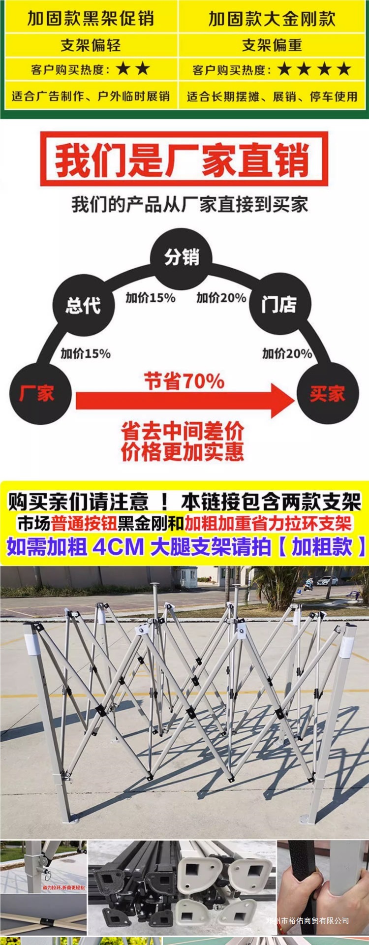 Yuyou 두꺼운 4개의 다리 광고 접이식 텐트 주차 차양 및 방수 천막 야시장 바베큐 노점 접이식 대형 우산