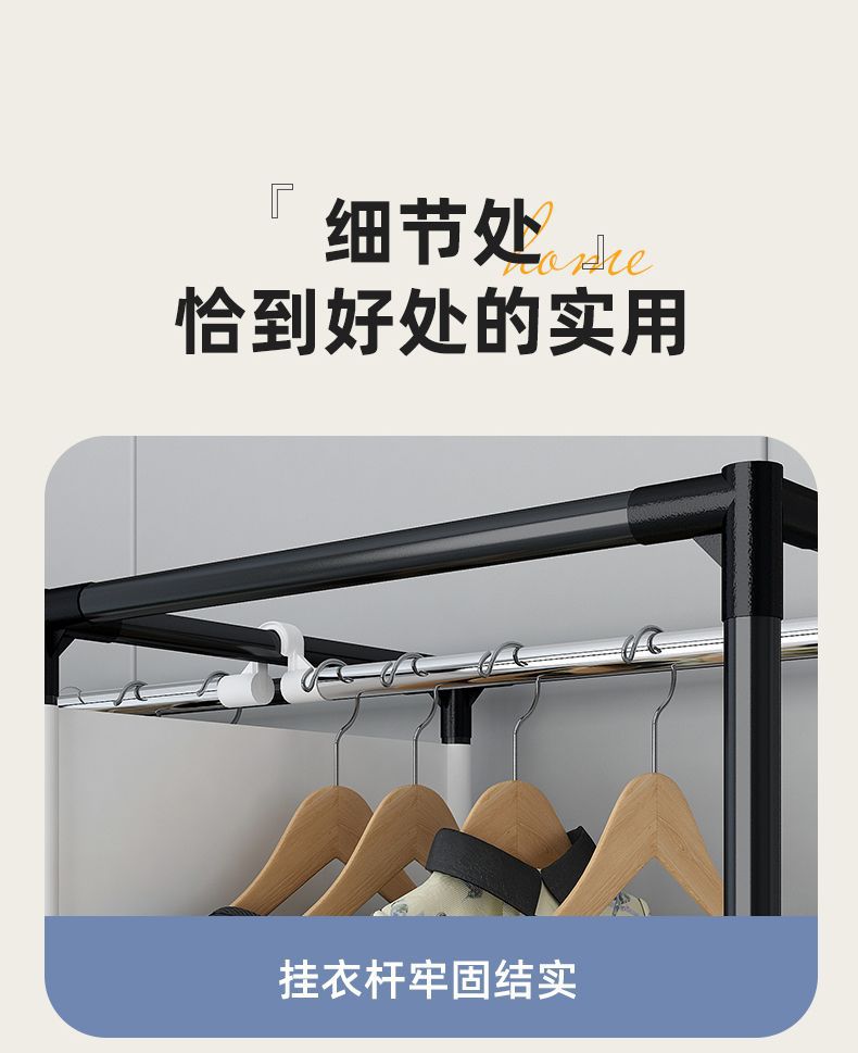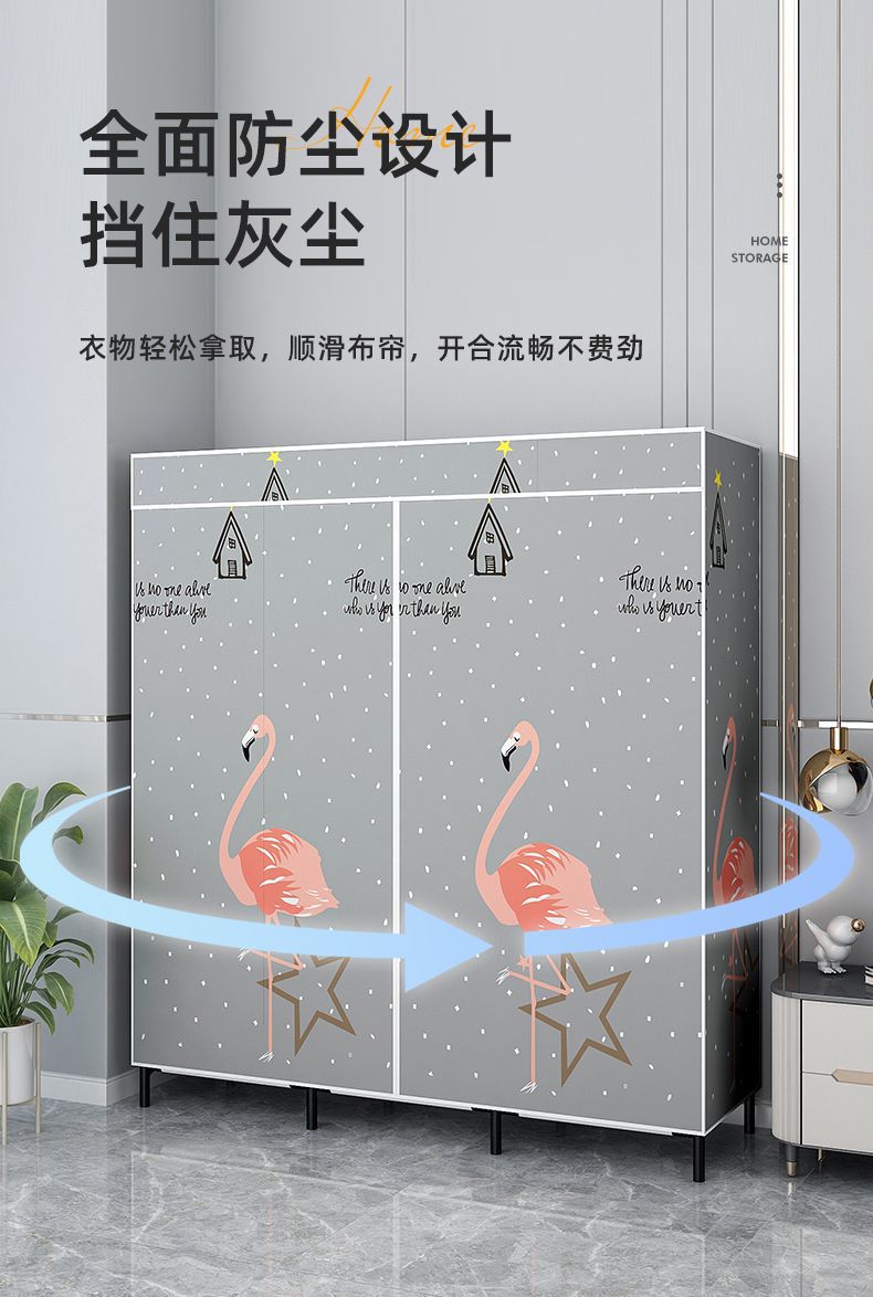 가정용 침실용 간이 옷장 강철 파이프 두껍고 강화된 조립식 천 옷장 임대실 두꺼운 수직 바닥 옷장