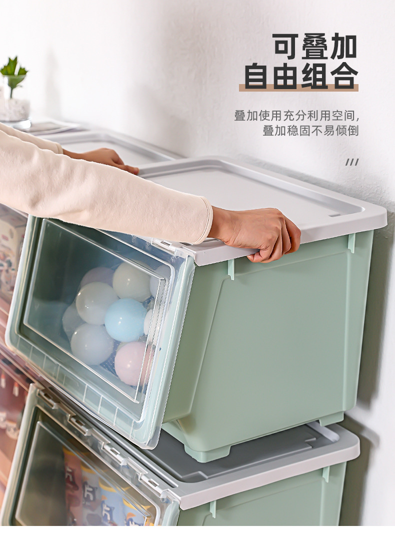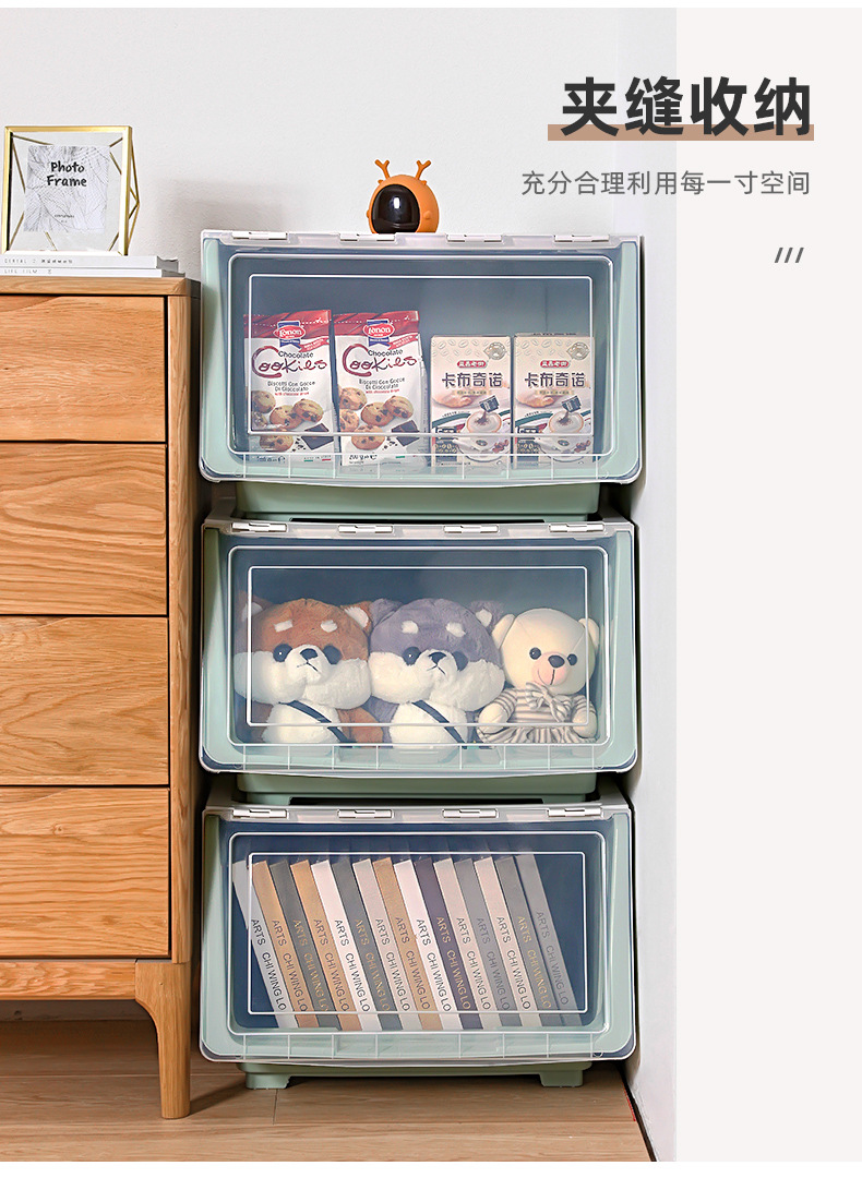 Younai 스낵 보관 상자 투명 어린이 플립 보관 바구니 정리 상자 홈 보관 캐비닛 장난감 보관 상자스토어 가기