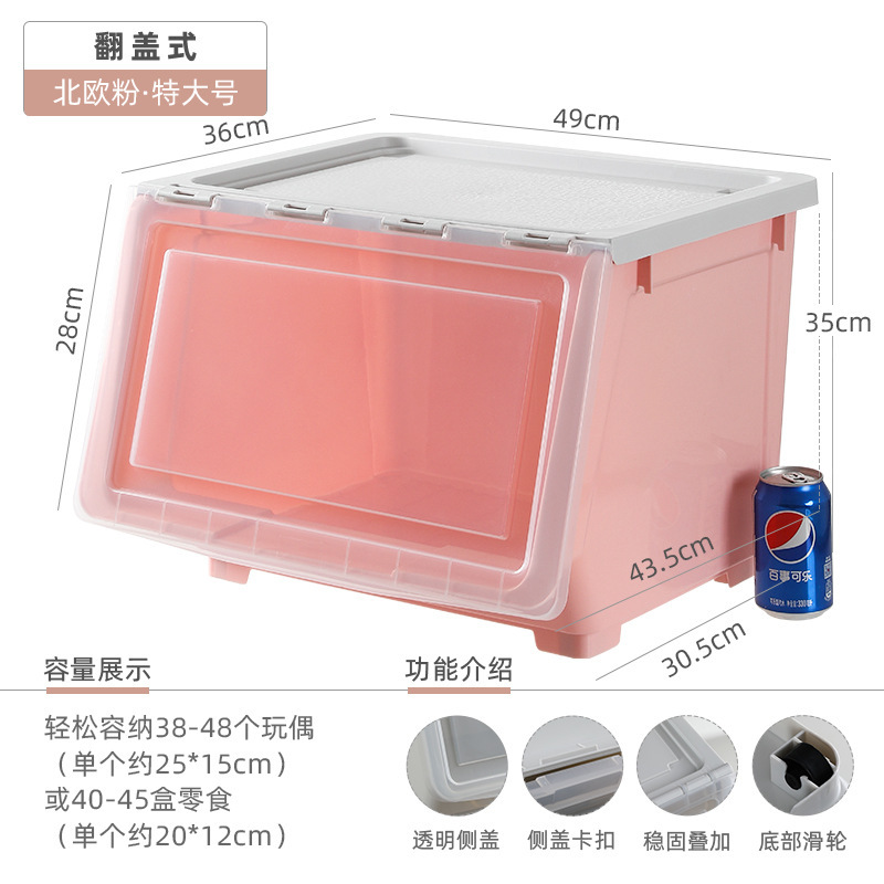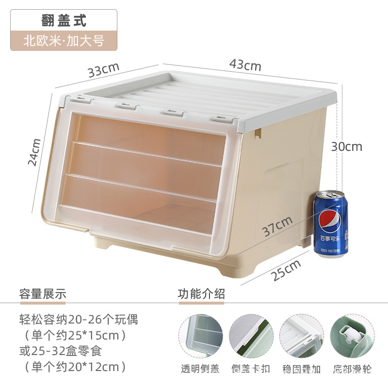 Younai 스낵 보관 상자 투명 어린이 플립 보관 바구니 정리 상자 홈 보관 캐비닛 장난감 보관 상자