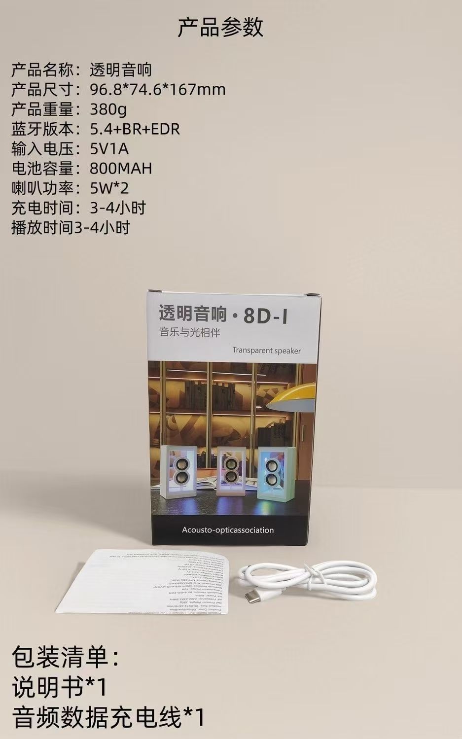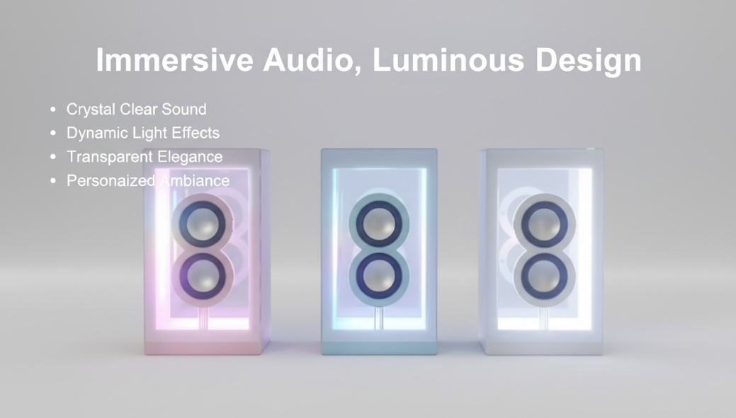 소스 공장 개인 모델 RGB 매직 컬러 조명 긴 배터리 수명 투명 블루투스 스피커 투명 스피커