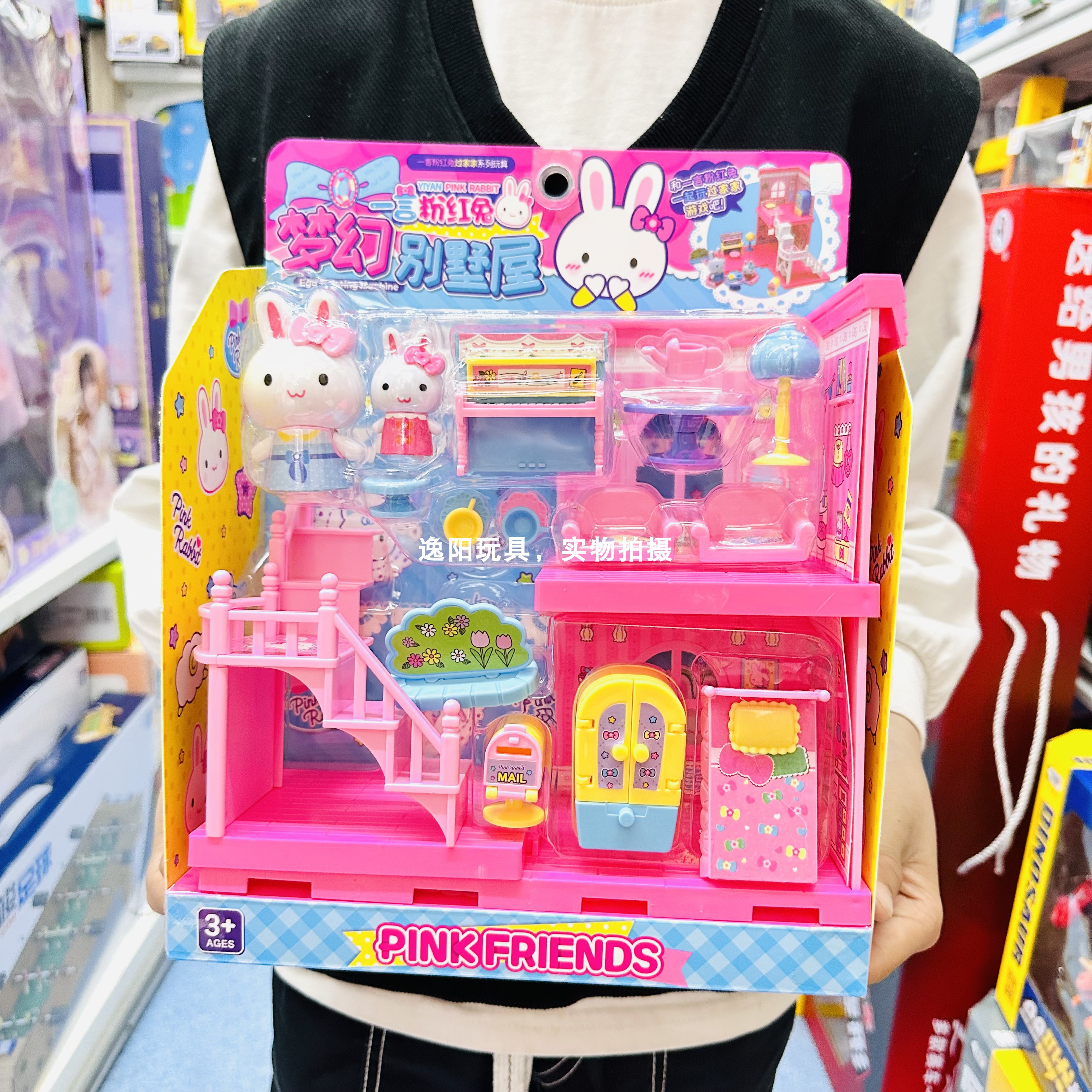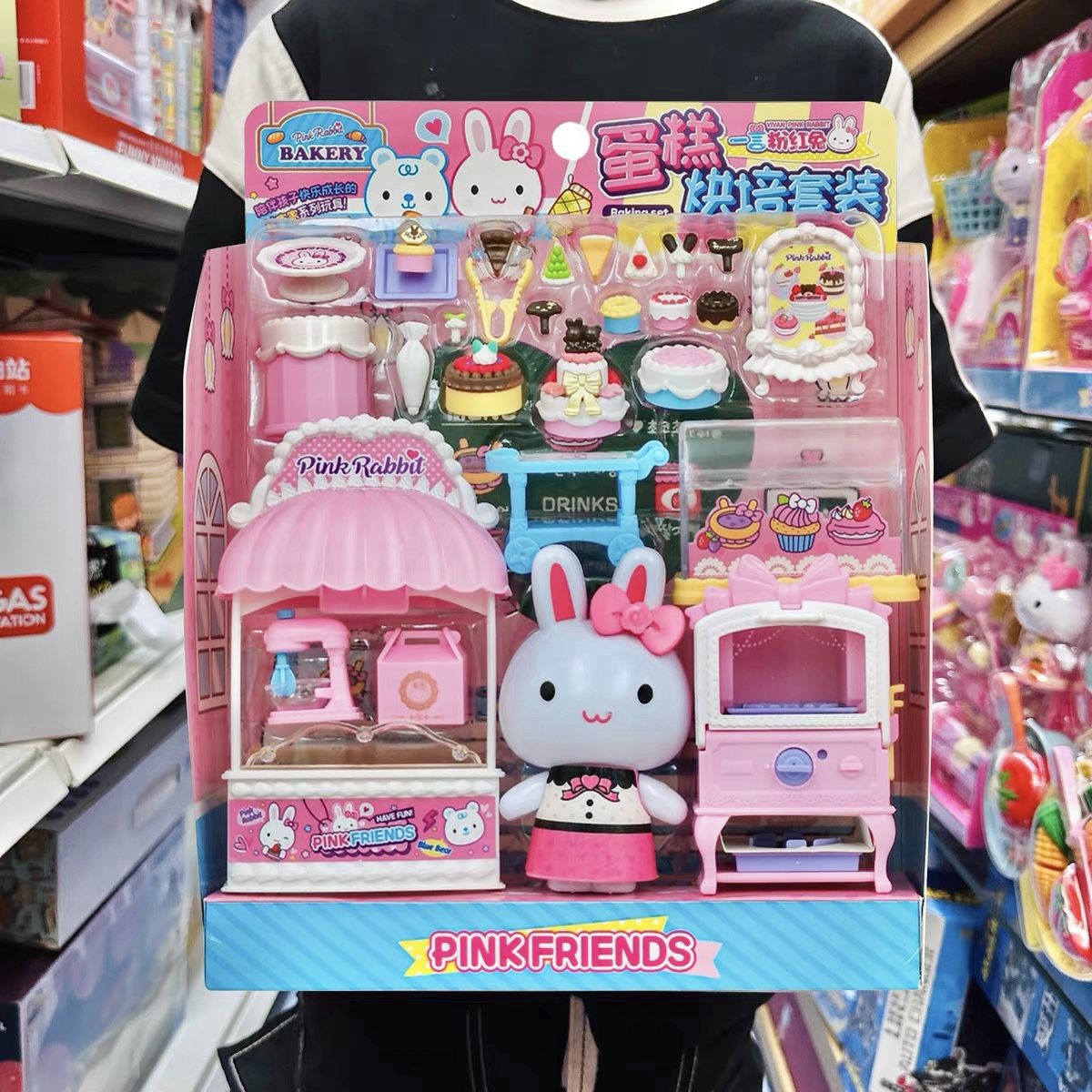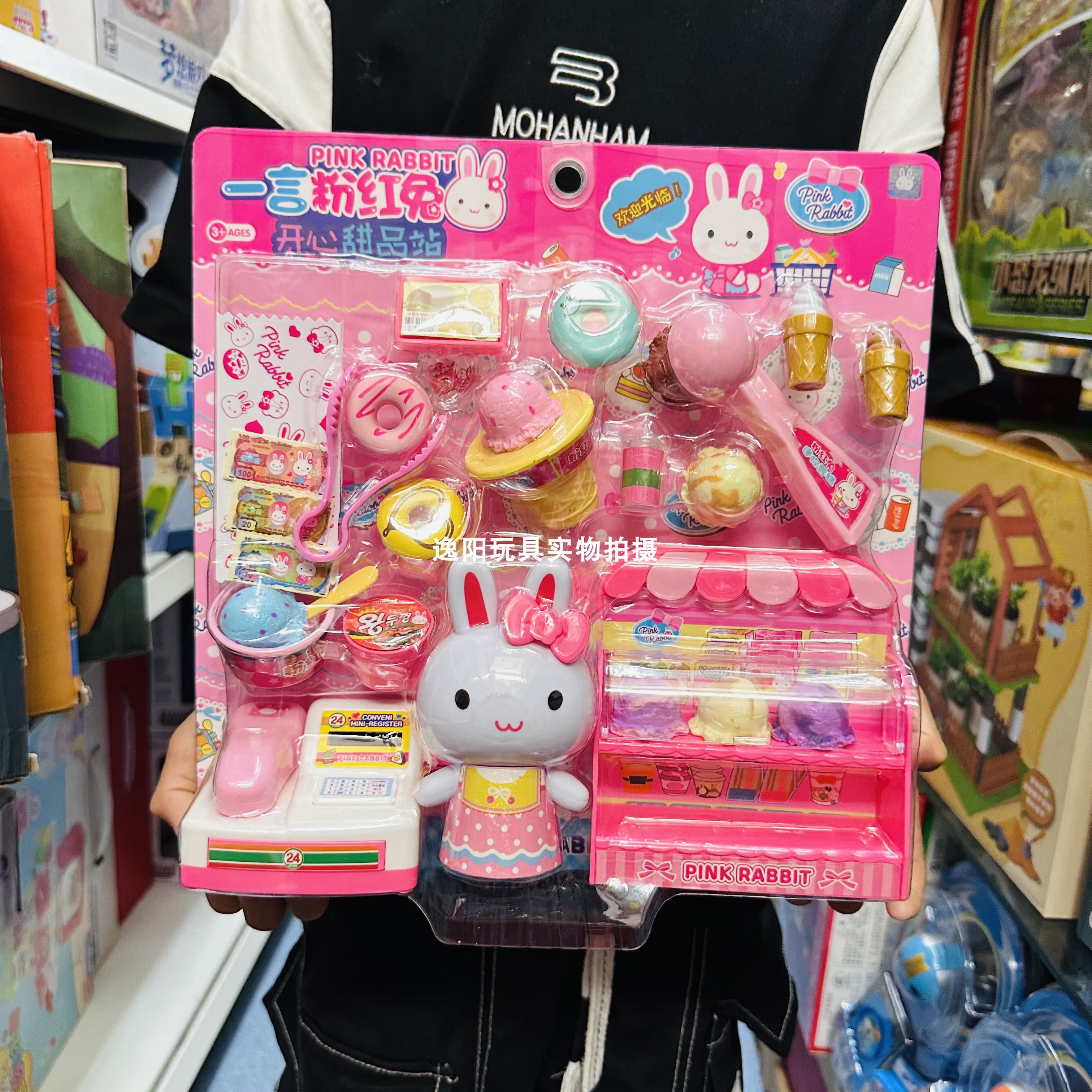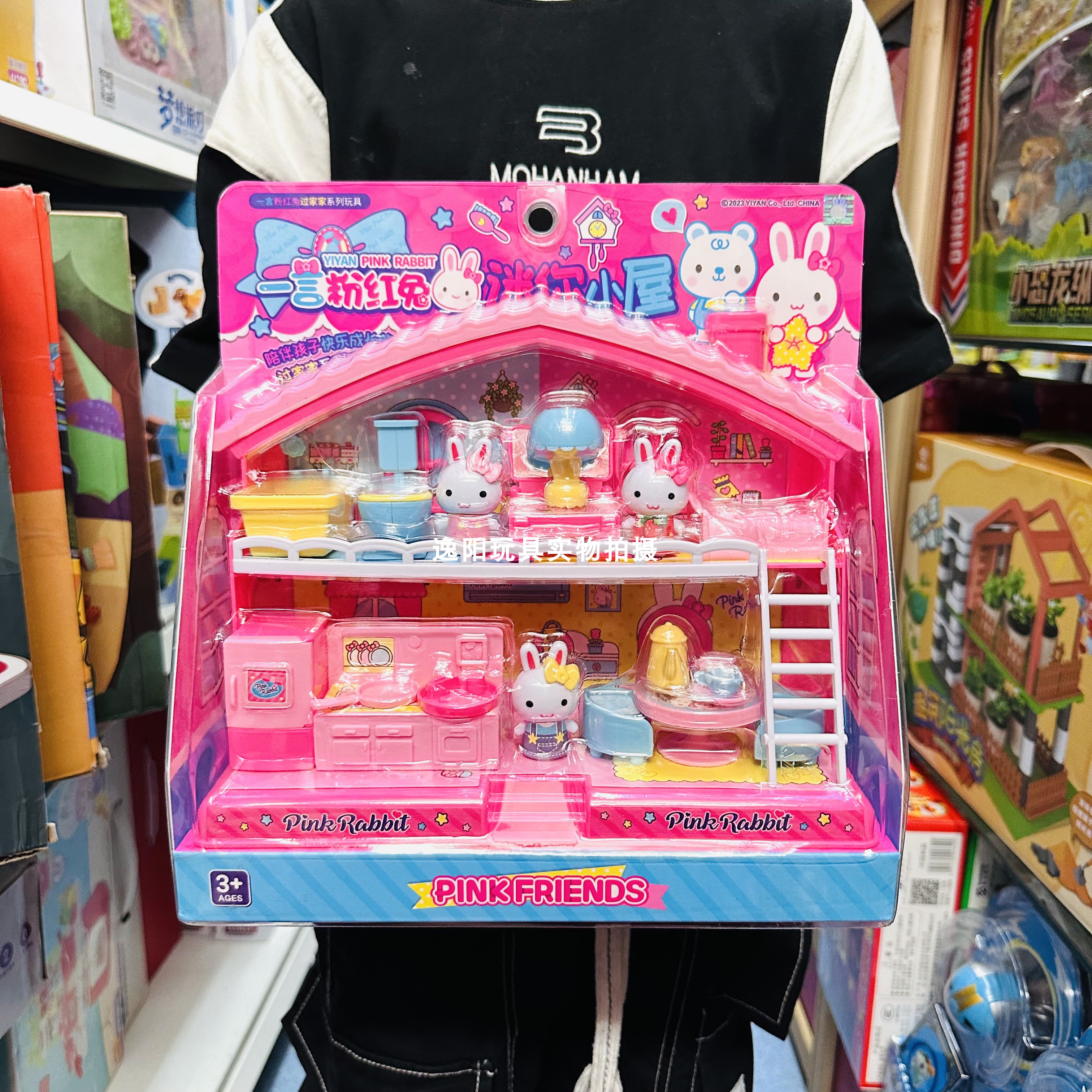 Yiyan 핑크 토끼 미니 캐빈 아이스크림 판매점 토끼 침실 주방 소녀 놀이 집 장난감스토어 가기