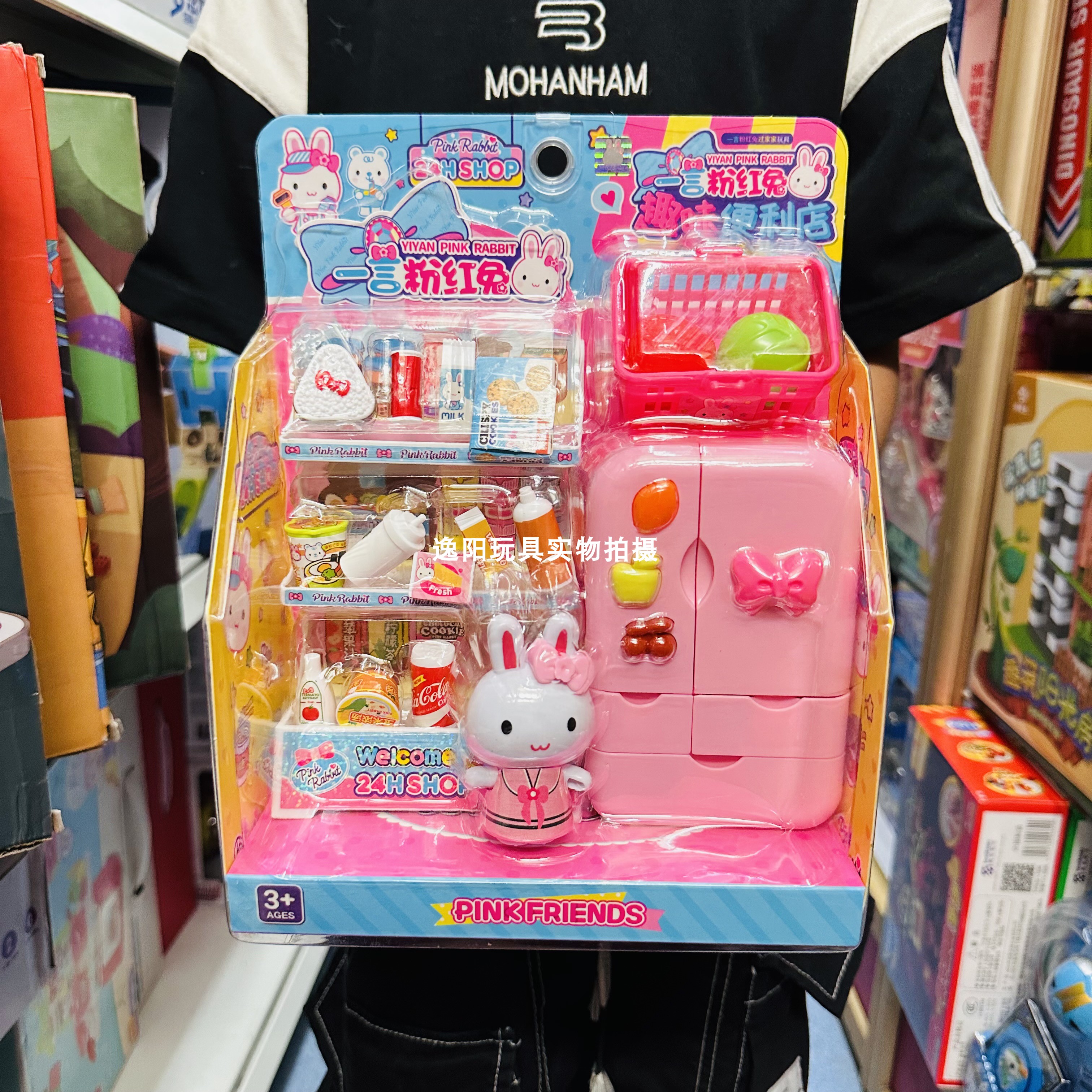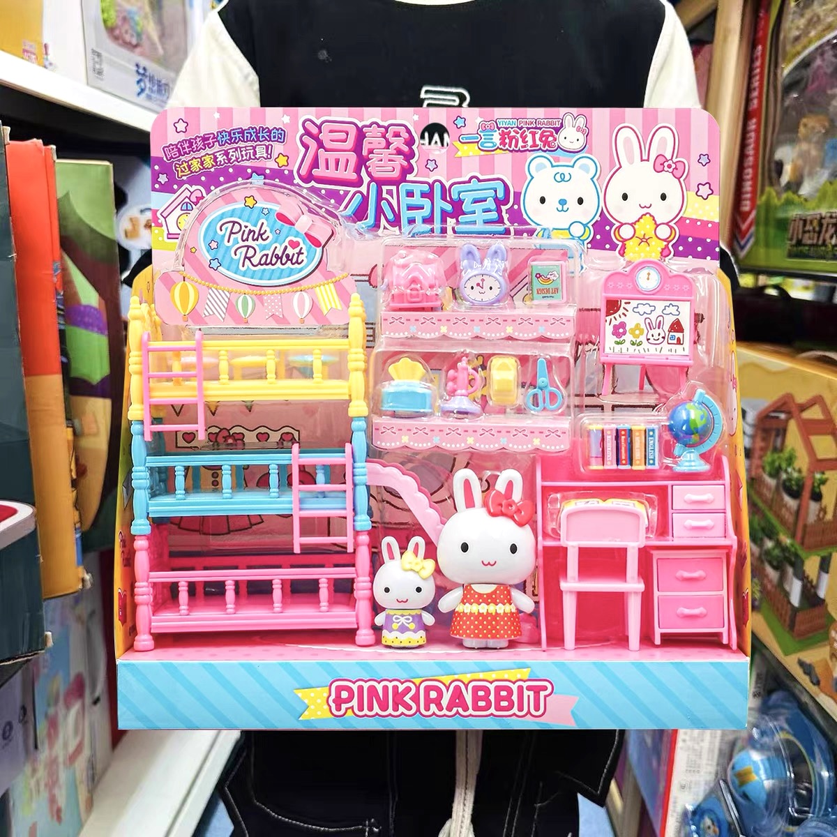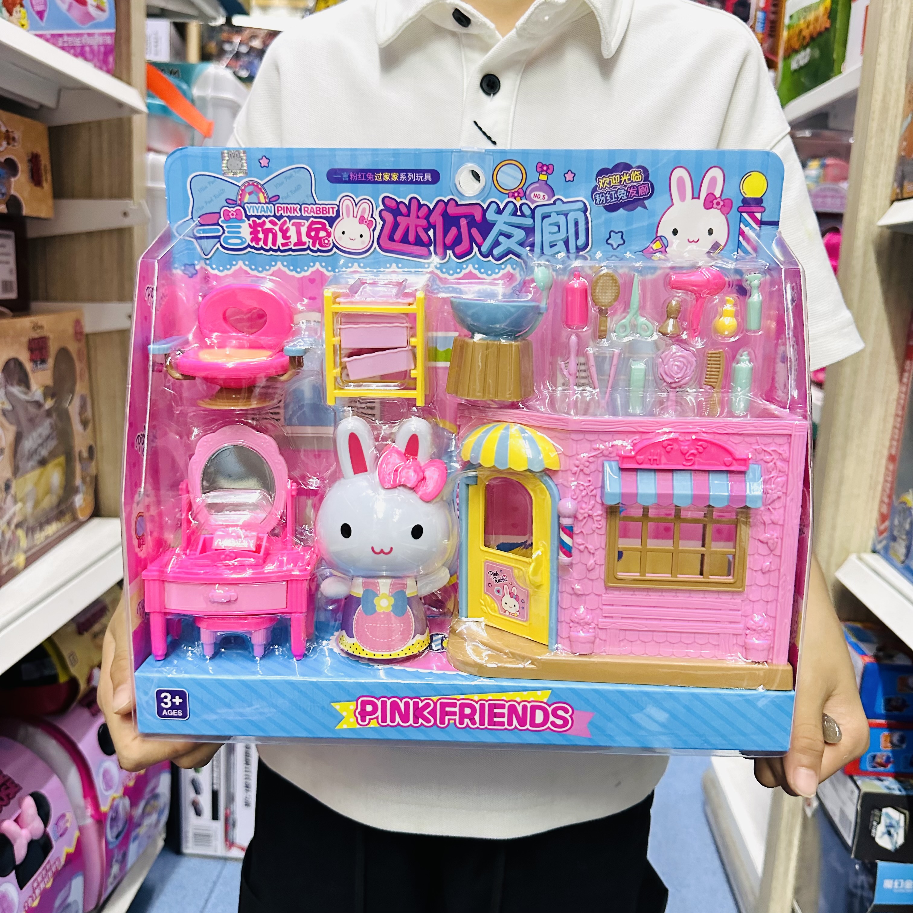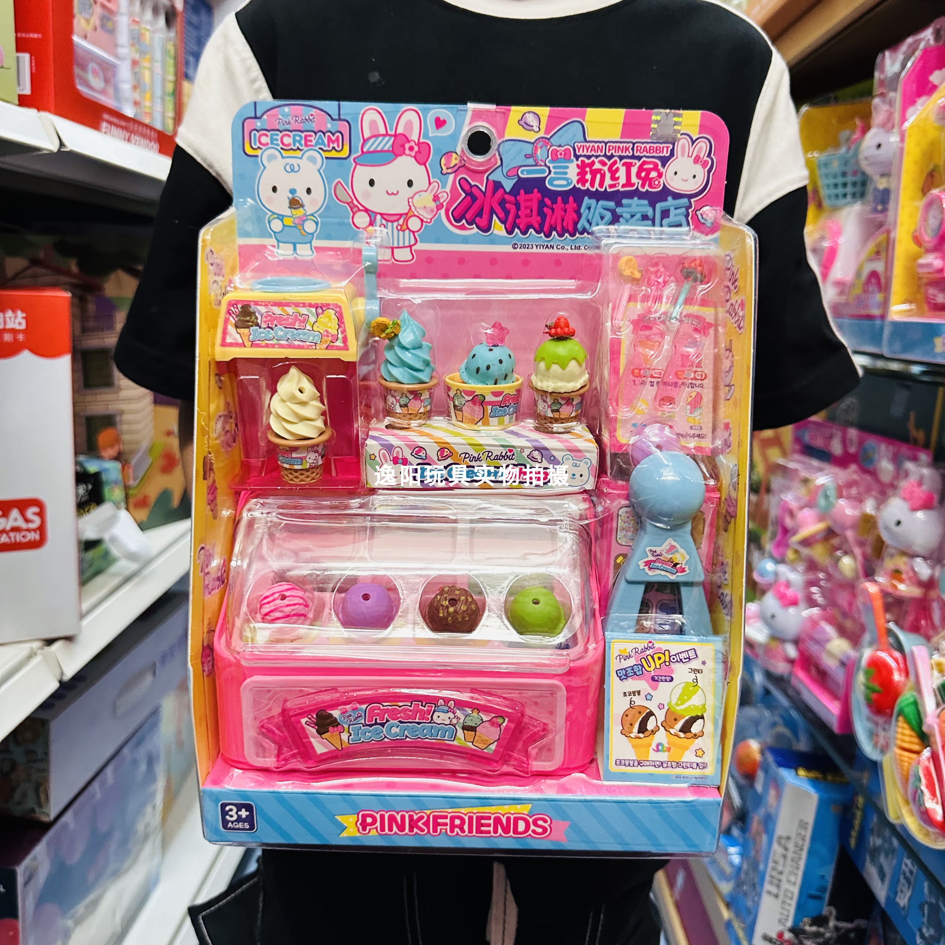 Yiyan 핑크 토끼 미니 캐빈 아이스크림 판매점 토끼 침실 주방 소녀 놀이 집 장난감스토어 가기