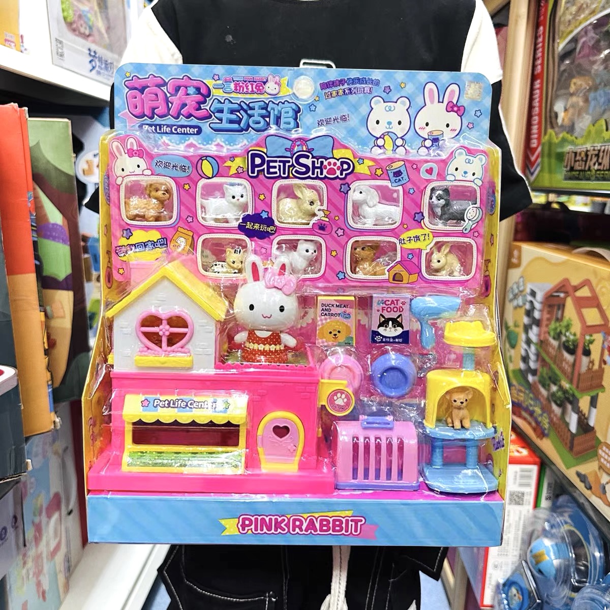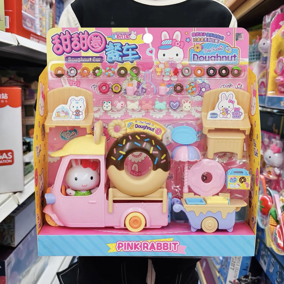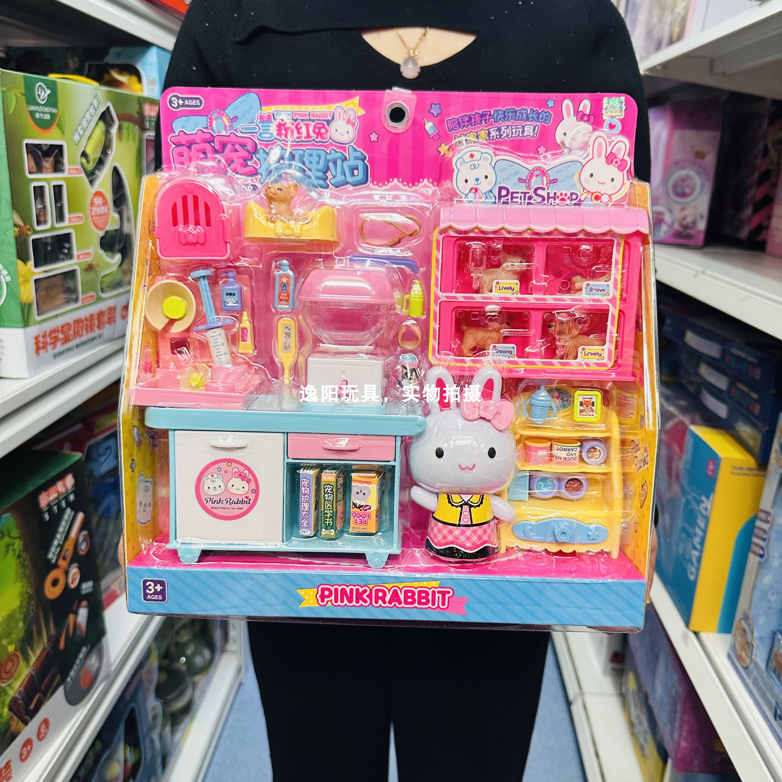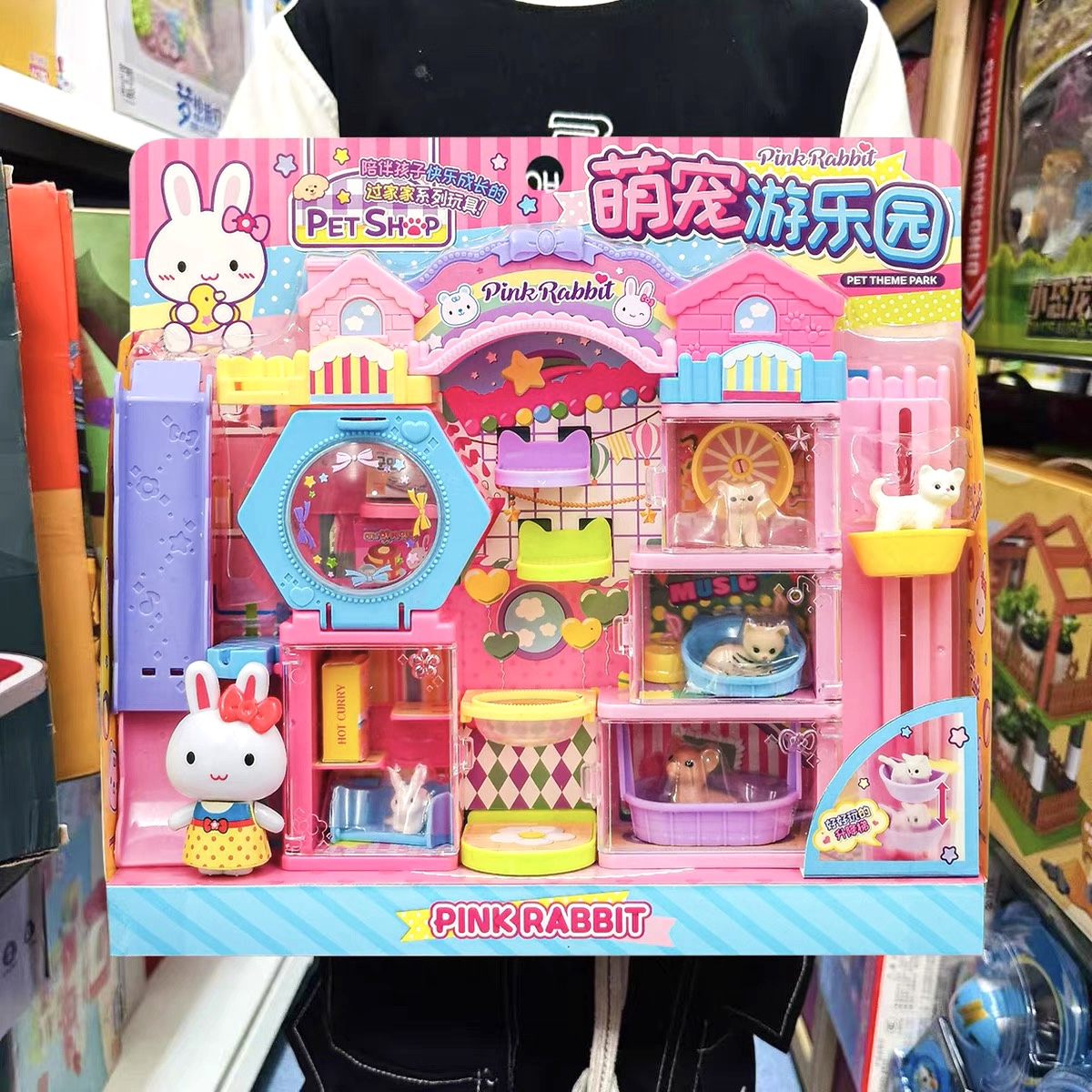 Yiyan 핑크 토끼 미니 캐빈 아이스크림 판매점 토끼 침실 주방 소녀 놀이 집 장난감스토어 가기