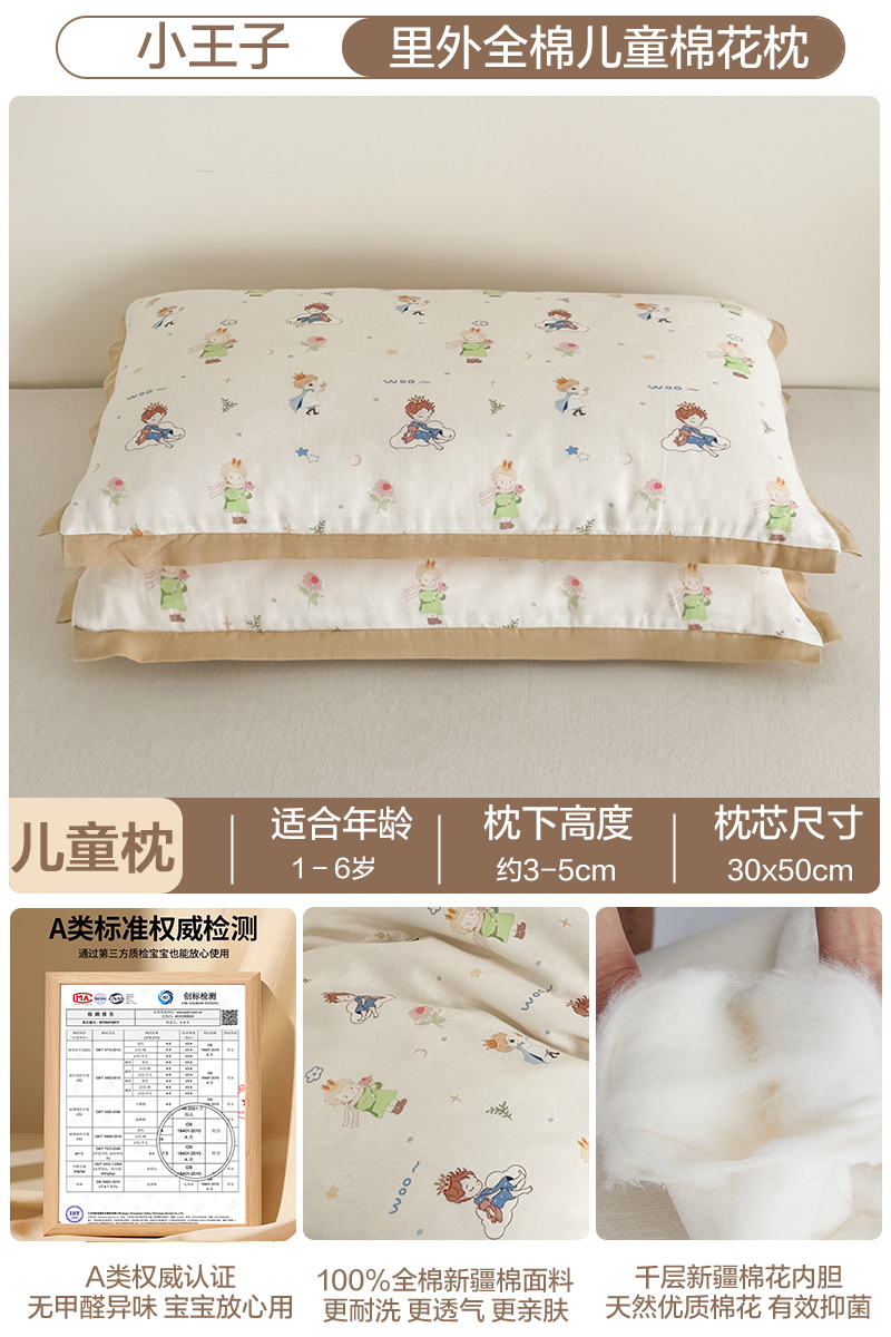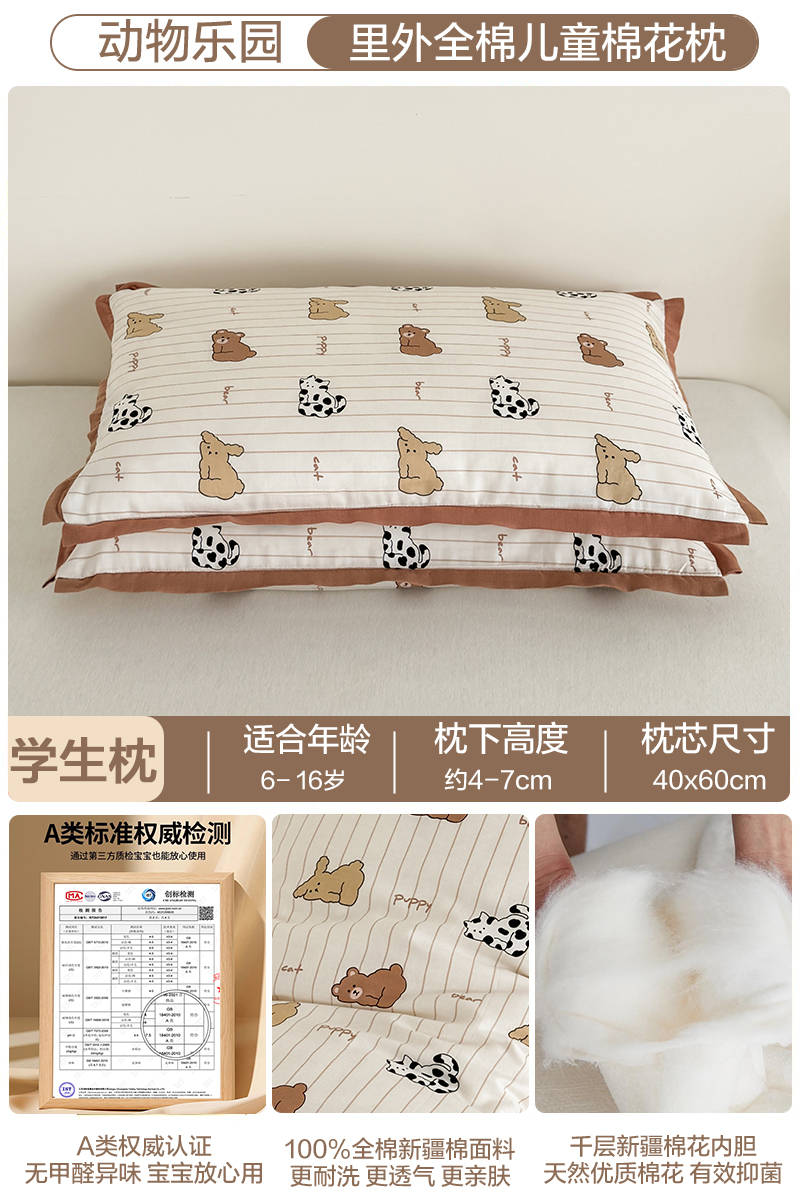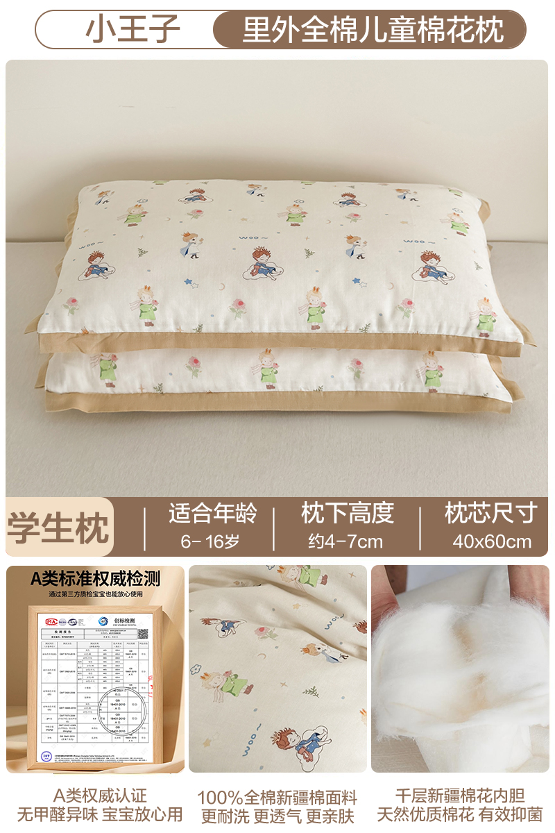 클래스 A 면 어린이 면 베개 유치원 아기를 위한 특수 작은 베개 커버 베개 코어는 경추를 보호하고 수면을 돕습니다.스토어 가기