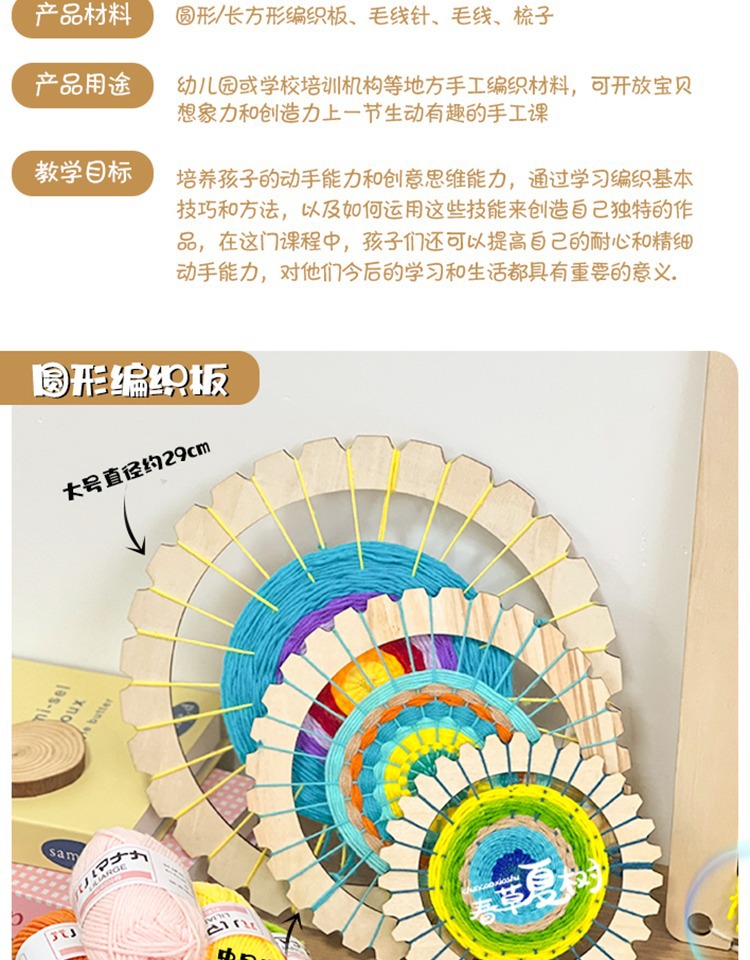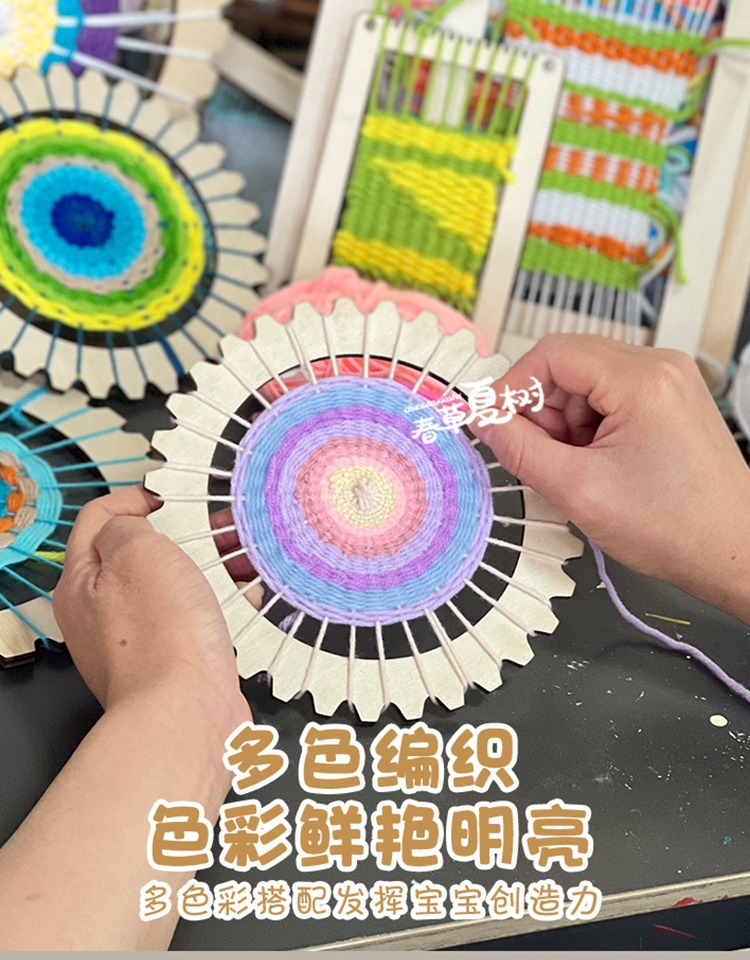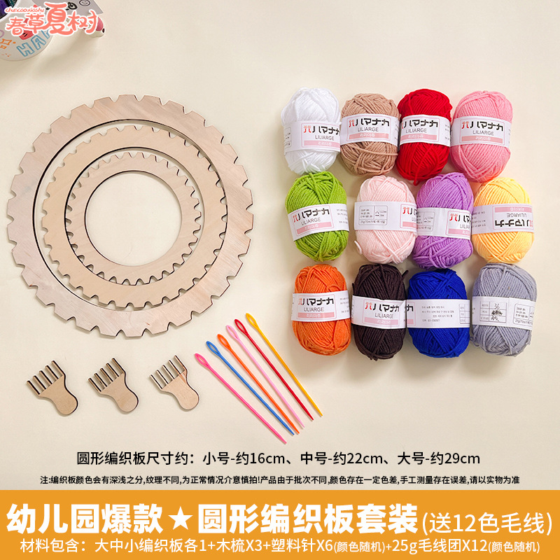 • ★ 유치원 핫 아이템 ★ 원형 우븐 보드 세트에는 12가지 색상의 울이 포함되어 있습니다.